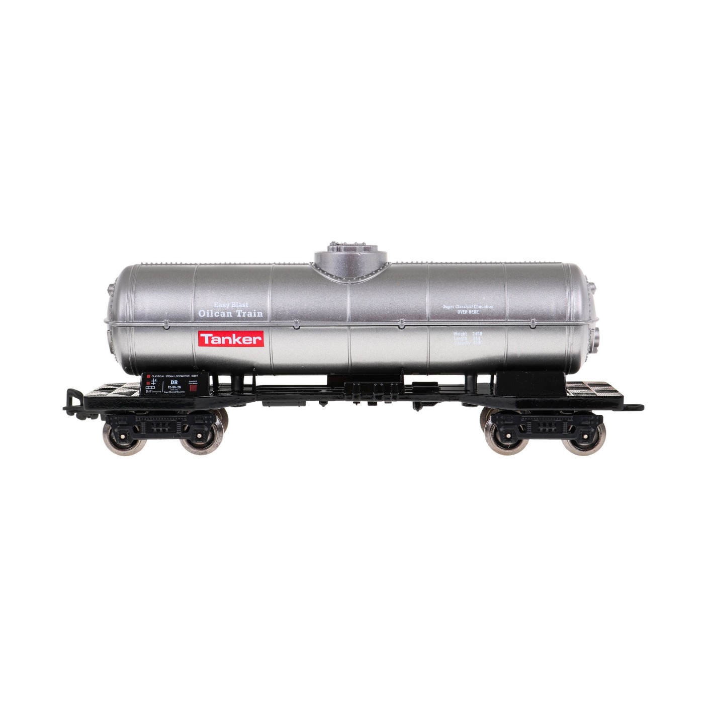 | | - lokomotywa, - 3 wagony towarowe, - wagon cysterna, - części składowe toru, - pipetka na wodę. |