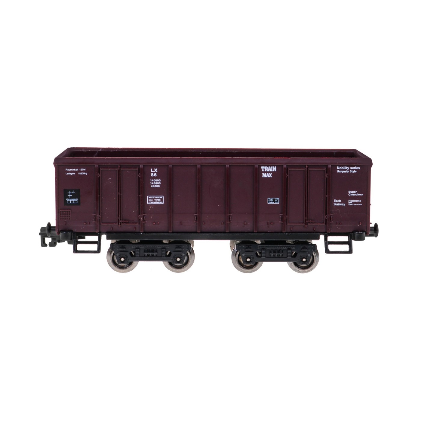 | - lokomotywa ok. 23 cm x 6 cm x 10 cm, - wagony towarowe ok. 15 cm x 6 cm x 8 cm, - wagon cysterna ok. 24 cm x 6 cm x 9 cm, - trasa toru ok. 213 cm x 106 cm, - opakowanie ok. 67,5 cm x 38,5 cm x 8 cm. | |
