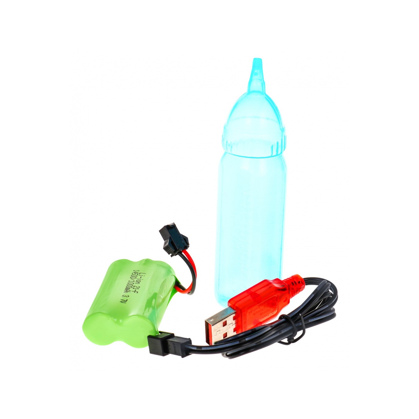 | | Niesamowita kolejka z funkcją dymu i odgłosami jazdy to propozycja dla dzieci od 5-go roku życia. Zabawka zasilana jest akumulatorkiem typu 3,7V, który znajduje się w zestawie. Akumulator montujemy w lokomotywie. Trasa kolejki ma kształt elipsy z kołem wewnętrznym o wymiarach ok. 213 cm x 106 cm. Podczas jazdy lokomotywa wypuszcza z komina dym (po wcześniejszym uzupełnieniu jej wodą - pipetka do wody dołączona do zestawu), dodatkowo świeci się światełko zamontowane w części frontowej. Tory posiadają łatwy sposób łączenia, dzięki temu są bezpieczne i wytrzymałe w użytkowaniu. |