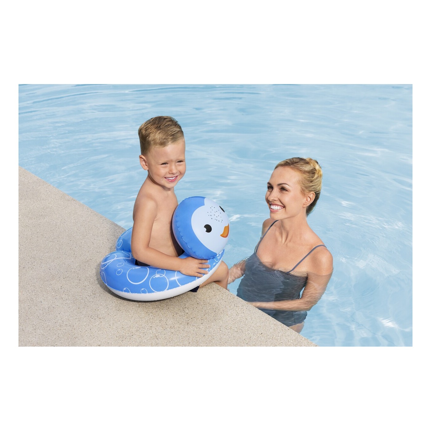 | - zawór szybkiego spustu, - materac otoczony liną, - 2 komory na napoje, - siateczkowe dno, - 2 wytrzymałe uchwyty, - konstrukcja z oparciem, |