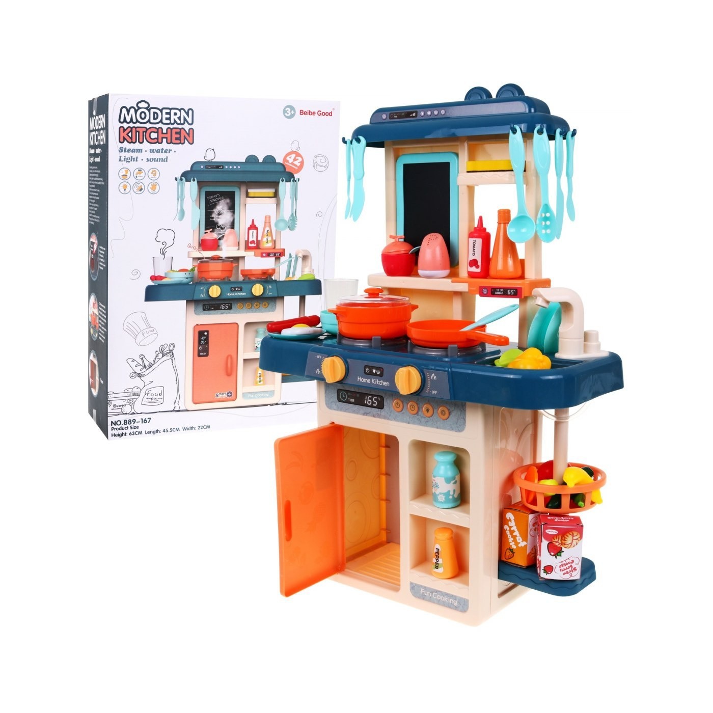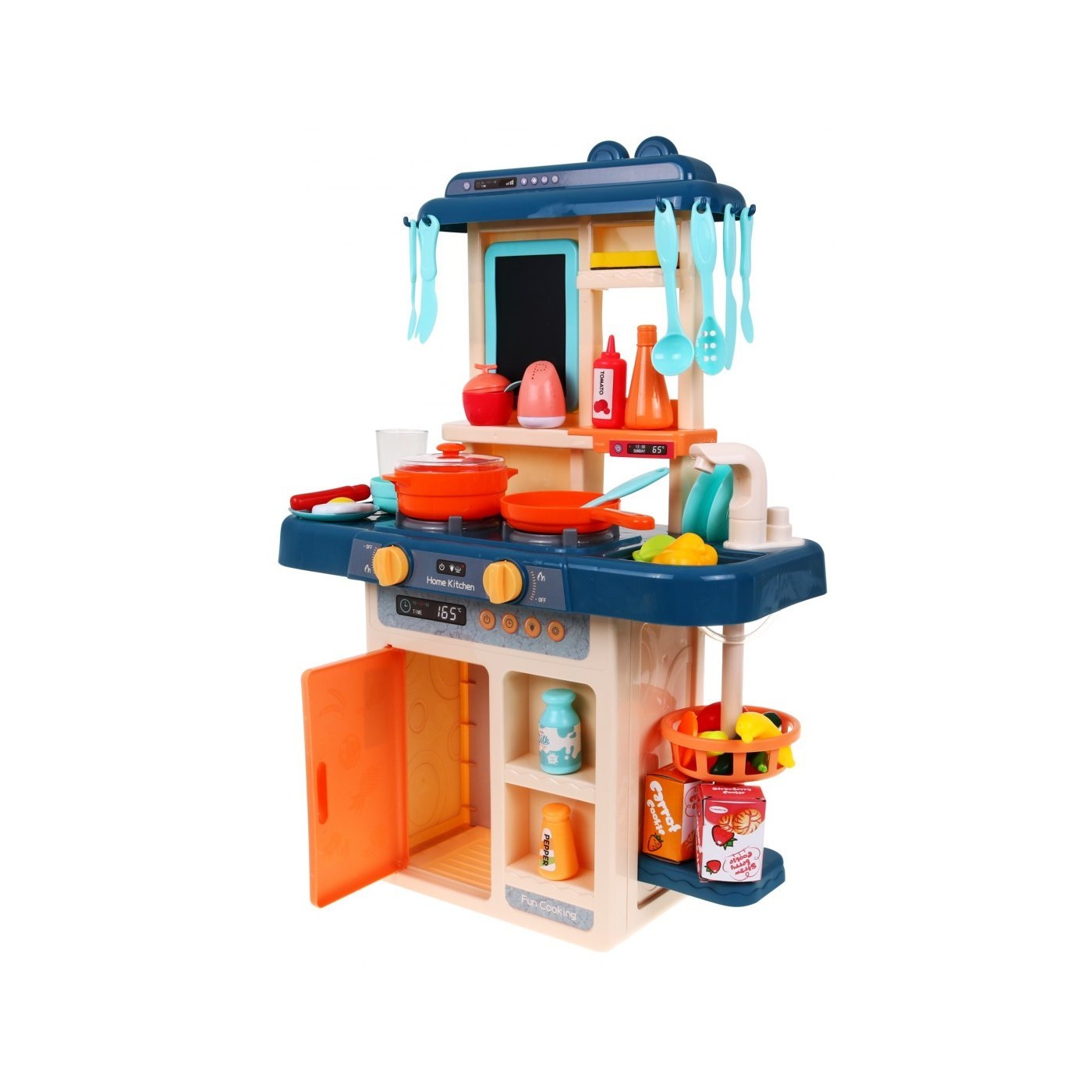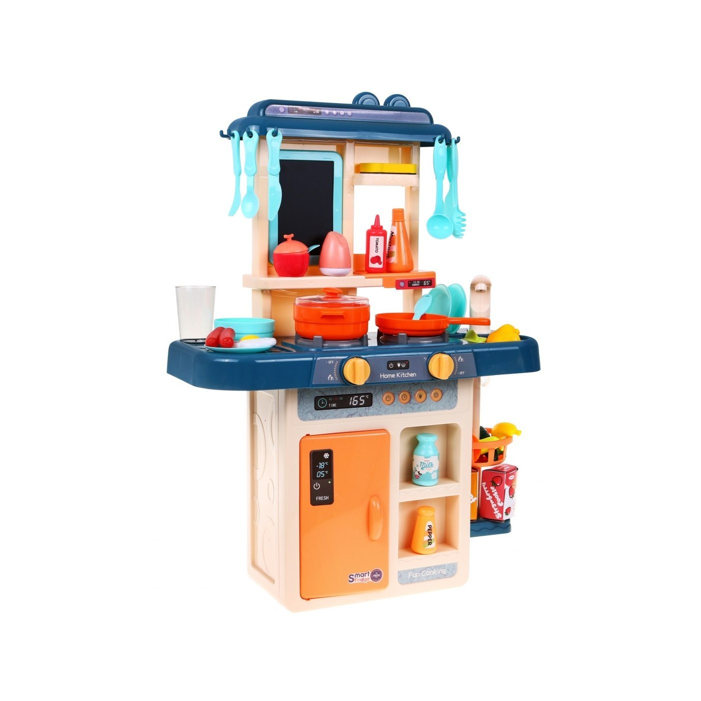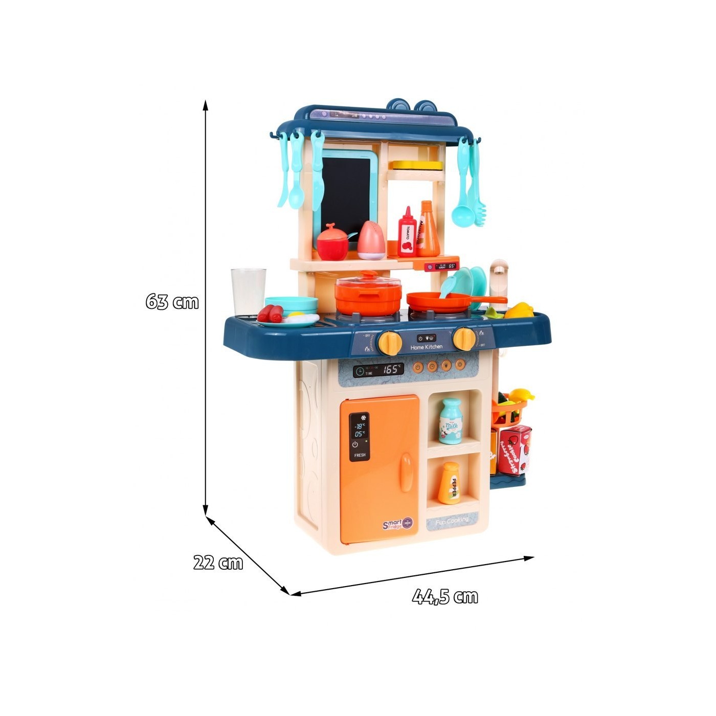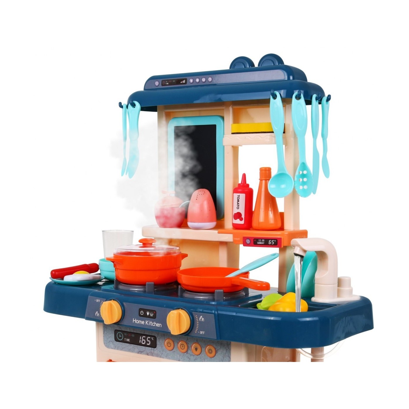 Štýlová modrá Kuchyňa pre deti 3+ Kohútik s vodou + Interaktívny horák s parou + Audio panel 65 ks.