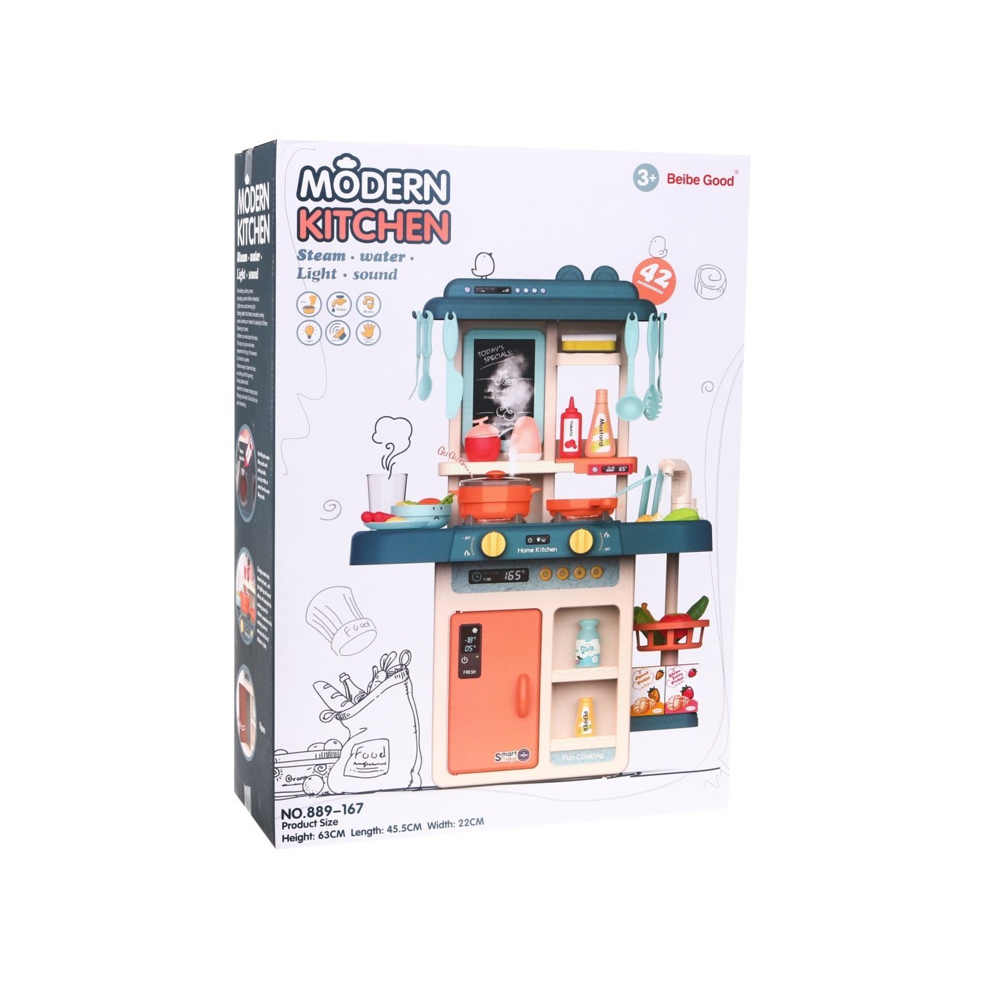 Farebná Kuchyňa pre deti 3+ Interaktívny horák s parou + Kohútik s vodou + Kriedová tabuľa + Príslušenstvo 42 ks.