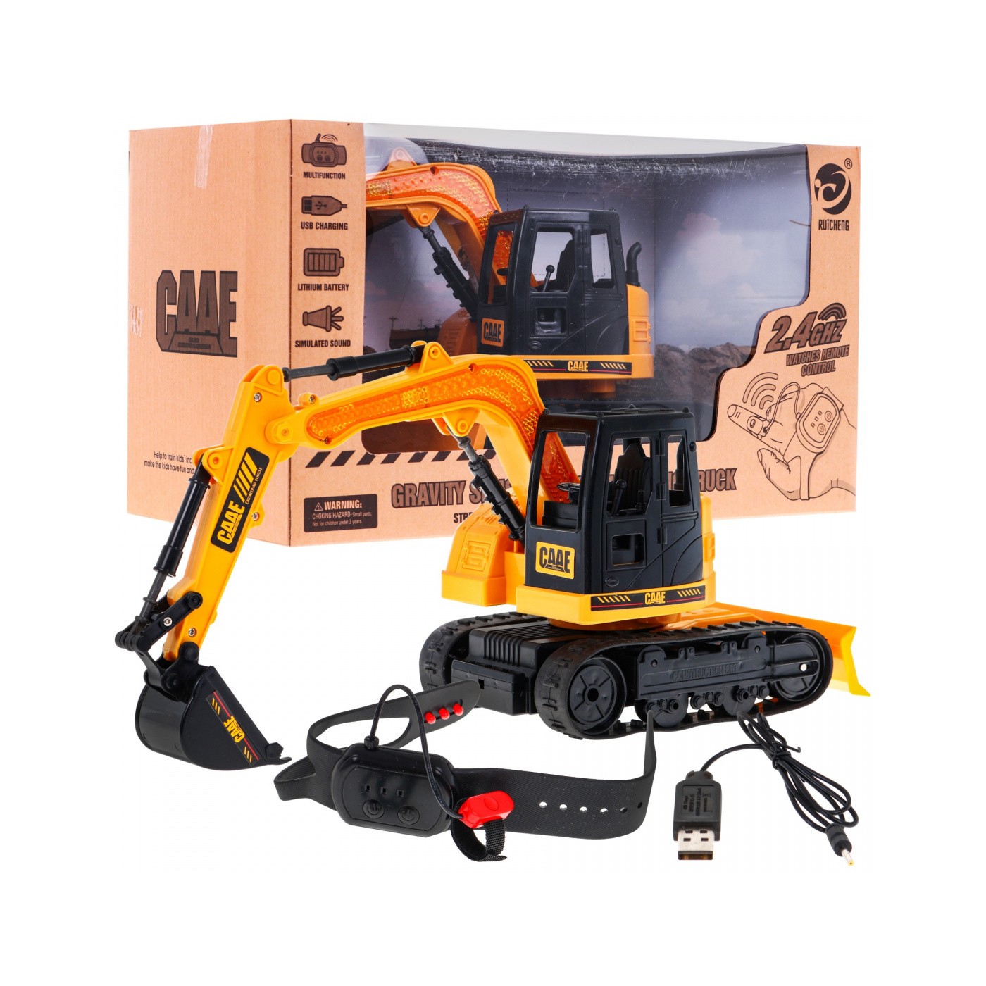 | Funkcje | - jazda tył i przód, - skręt w prawo i lewo, - ruchoma łyżka w górę i w dół, - odgłosy budowy, - obrotowy korpus koparki w prawo i lewo, - praca na falach 2,4 GHZ. |
