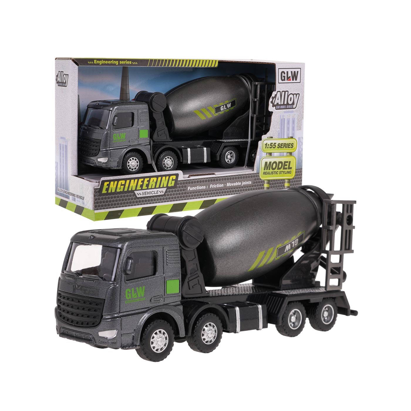 - vhodné pre deti od 3 rokov, - mierka výroby 1:55, - kovová konštrukcia, - realistický vzhľad, - gumené pneumatiky, - pohon dvoch kolies, - plynulo sa pohybuje dopredu a dozadu, - rotujúca betónová hruška. |