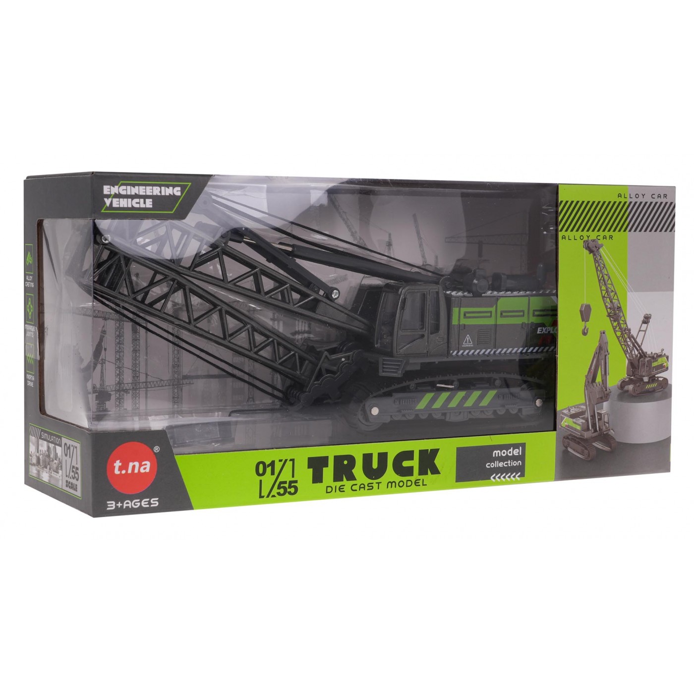 Kovový žeriav s pohyblivými prvkami pre deti od 3 rokov. Pevná konštrukcia a realistický vzhľad. Môžeme ručne ovládať výložník a spúšťať a zdvíhať hák. Vozidlo má kovovú karosériu a hák.