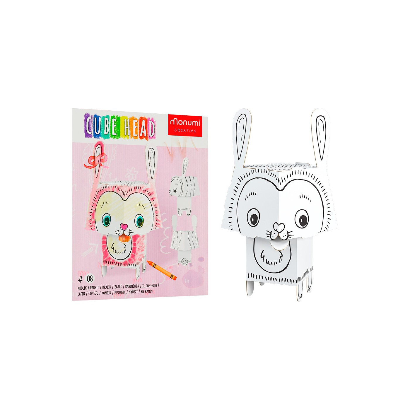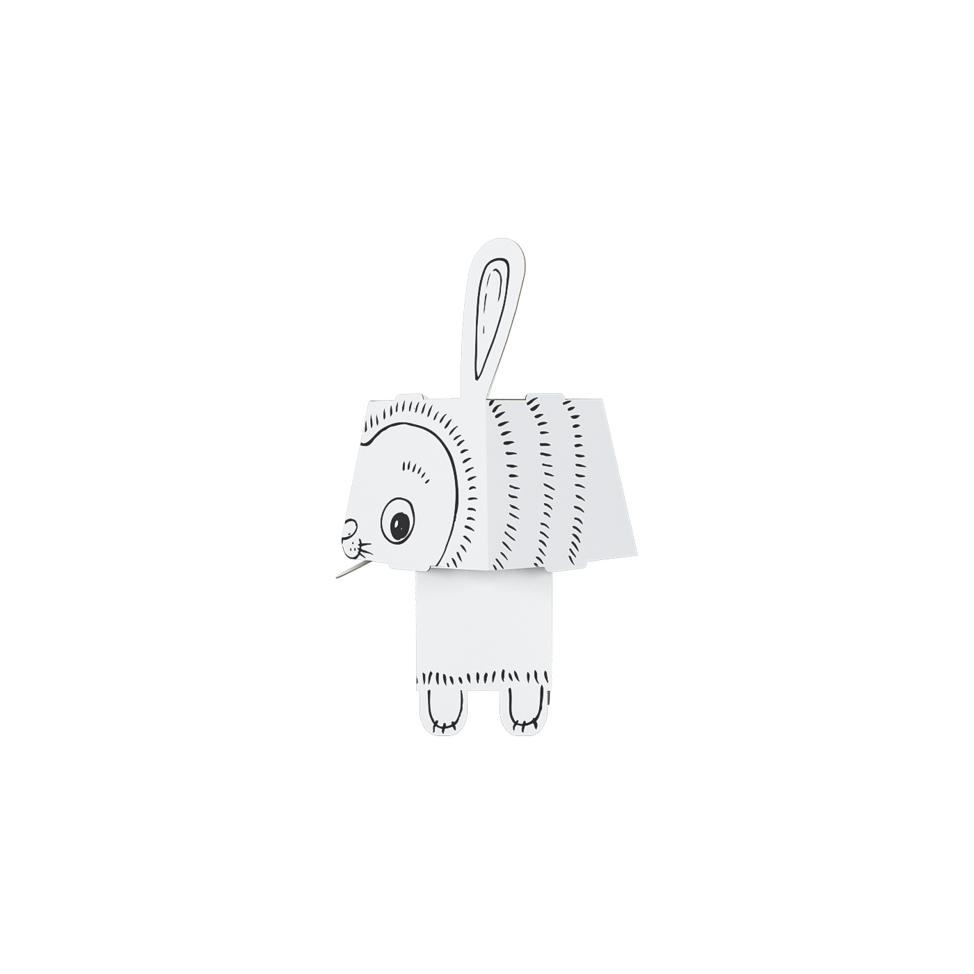 Przestrzenny, mały model zwierzaka z dużą głową do kolorowania. Wykonany z białego kartonu. Precyzyjnie wycięte elementy, łatwe do złożenia bez kleju czy nożyczek. Obrazkowa instrukcja na tyle opakowania.