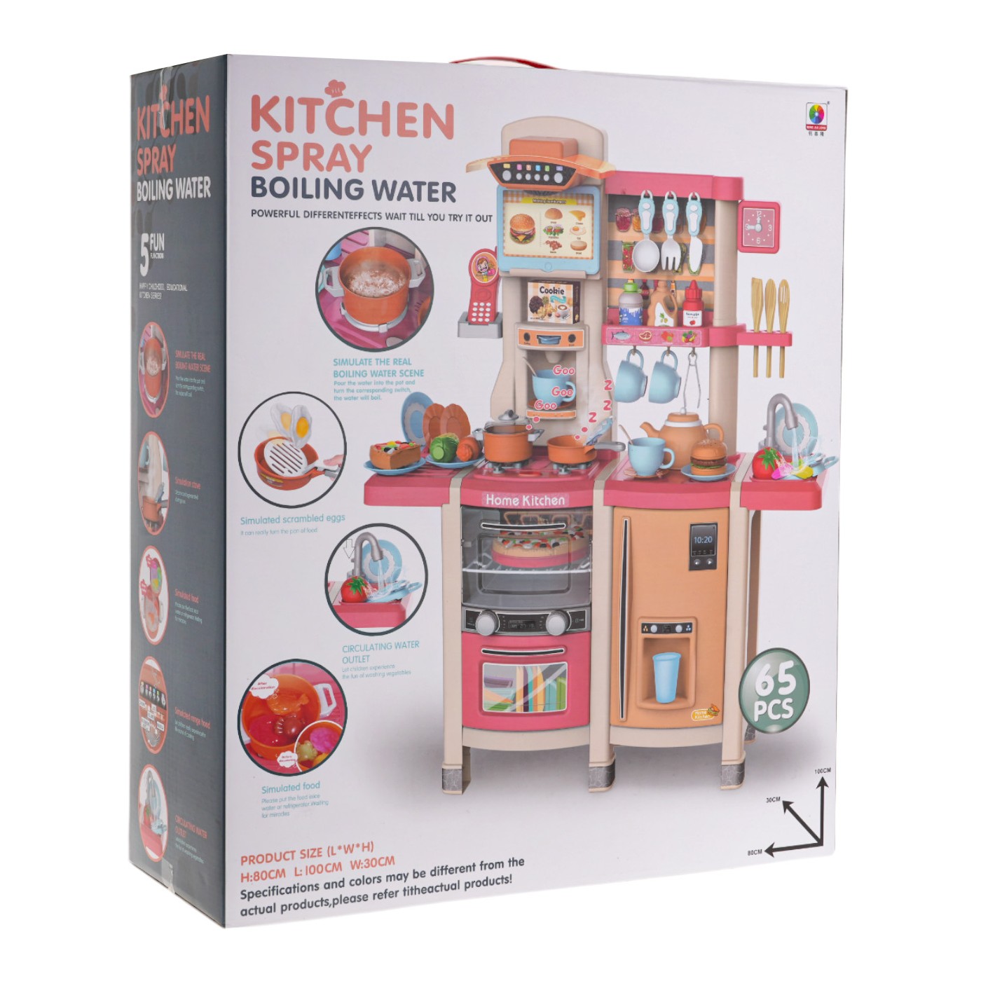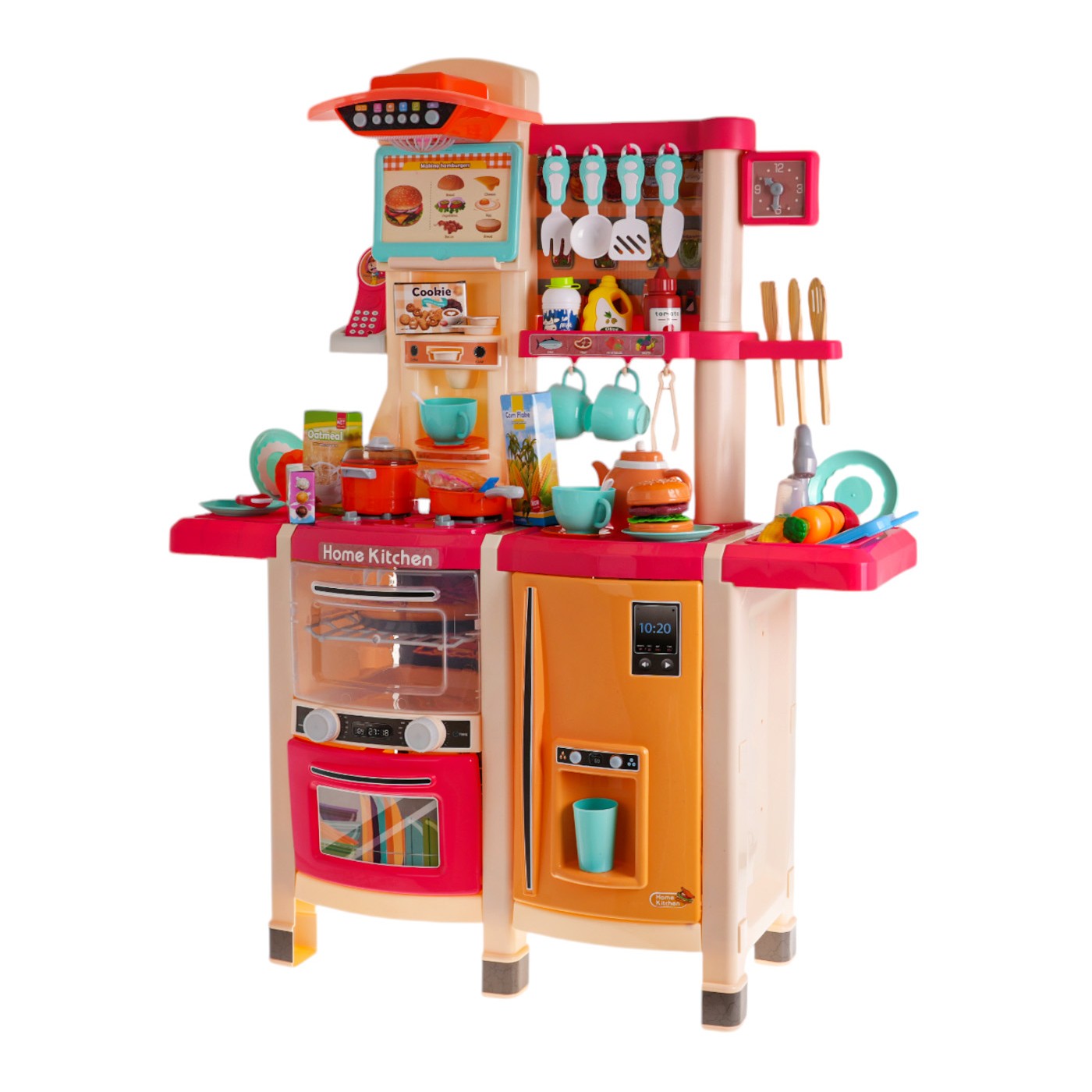 - vhodné pre deti od 3 rokov, - vyrobené z najkvalitnejšieho plastu v živých farbách, - bohato vybavená, sada sa skladá až zo 65 prvkov, - pohyblivé gombíky, - horáky s podsvietením, - zvuky vyprážania a varenia, - kohútik s tečúcou vodou, - otváracia chladnička s falošným dávkovačom vody, - otváranie rúry zvukom a svetlom, - otváracia umývačka riadu, - vstavaný kávovar, - panel s ventilátorom, svetlami a zvukmi, - telefón so zvukmi (zvončeky, zvuky zvierat, pieseň) a osvetlenou anténou, - rám na kartičky s receptami, - hodiny s pohyblivými ručičkami, - tlakový hrniec na batérie, ktorý vytvára bublinky vo vode a zvuky varenia, - 3 produkty (ryba, rak, kus mäsa) po vložení do tlakového hrnca zmenia farbu. |