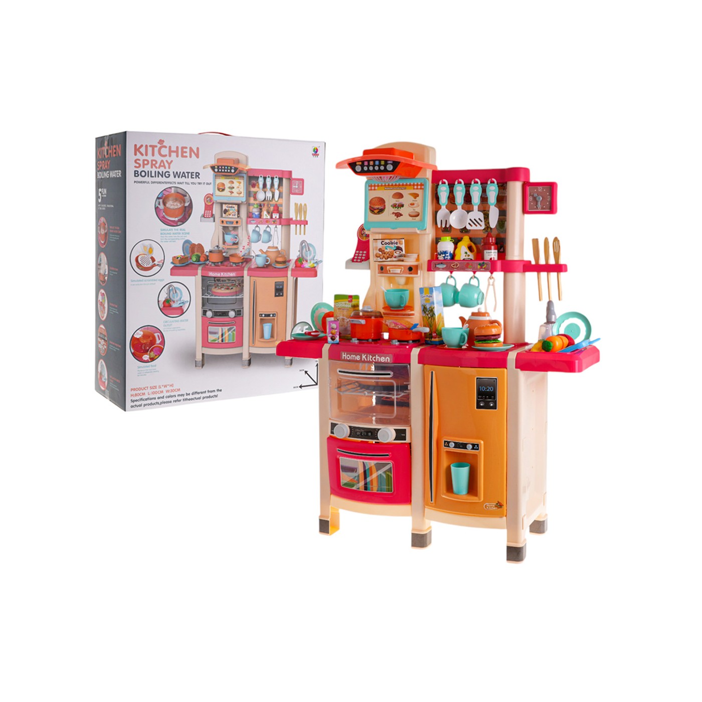Interaktívna kuchynka so svetlom, zvukom a kohútikom, z ktorého vyteká voda, ako aj s množstvom doplnkov, pre deti od 3 rokov. Kuchynka je vyrobená z najkvalitnejšieho plastu a je dodávaná v živých farbách, ktoré povzbudzujú vaše dieťa k hre. Na kuchynskej linke je interaktívna varná doska s horákmi. Keď otočíte jedným z gombíkov, budete počuť zvuky varenia a druhé zvuky smaženia. Zvuky varenia a vyprážania sú sprevádzané osvetlením horákov. Voda v skutočnosti tečie z vodovodného kohútika, rovnako ako v skutočnom dreze, takže dieťa bude môcť umývať riad s hračkami. Súčasťou sady je aj atrapa chladničky s otváracími dvierkami a dávkovačom vody, otváracia rúra so zvukovými a svetelnými efektmi, umývačka riadu, kávovar, panel s ventilátorom a zvukovými a svetelnými efektmi, telefón so zvukom a svetlom, a množstvo políc, na ktoré môžeme umiestniť figuríny. Celý set vyzerá skvele. Hračka je napájaná 6 x AA 1,5 V batériami (nie sú súčasťou balenia) a 3 x AAA 1,5 V batériami (nie sú súčasťou balenia).