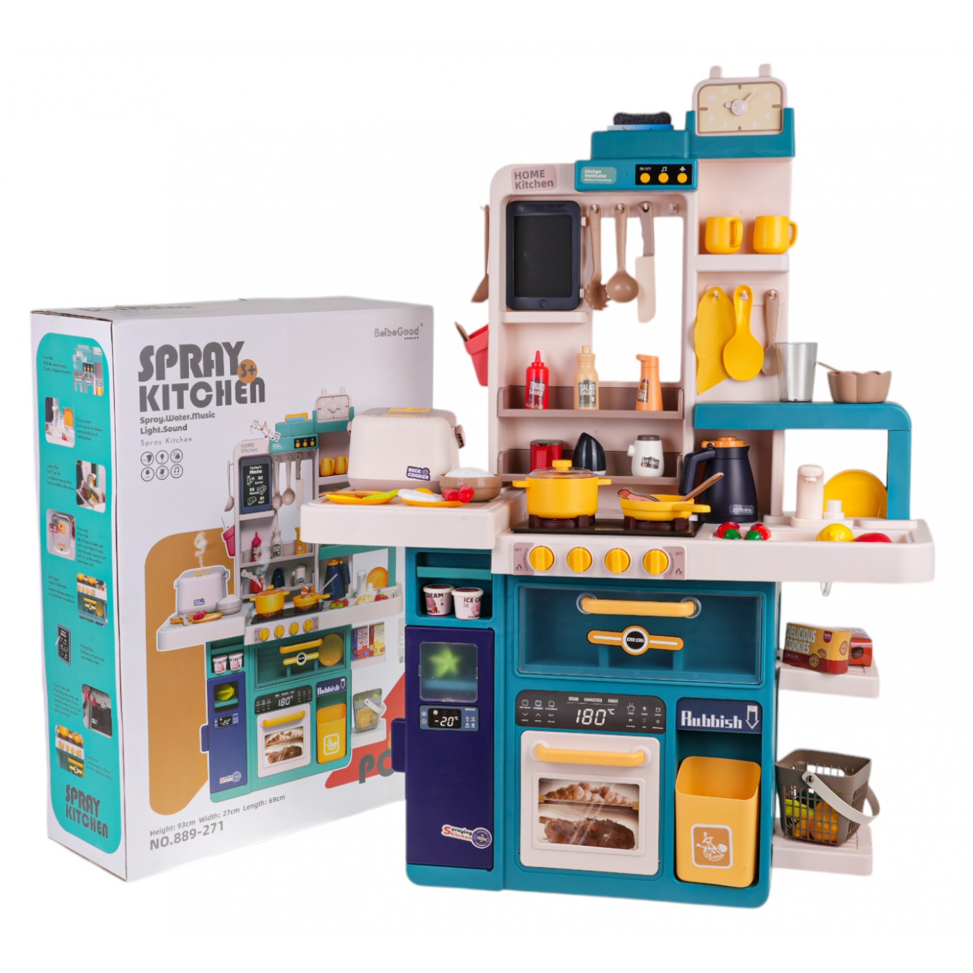 Obrovská modrá Kuchyňa pre deti 3+ Interaktívne horáky + kohútik s vodou + Zvukový panel + Príslušenstvo
