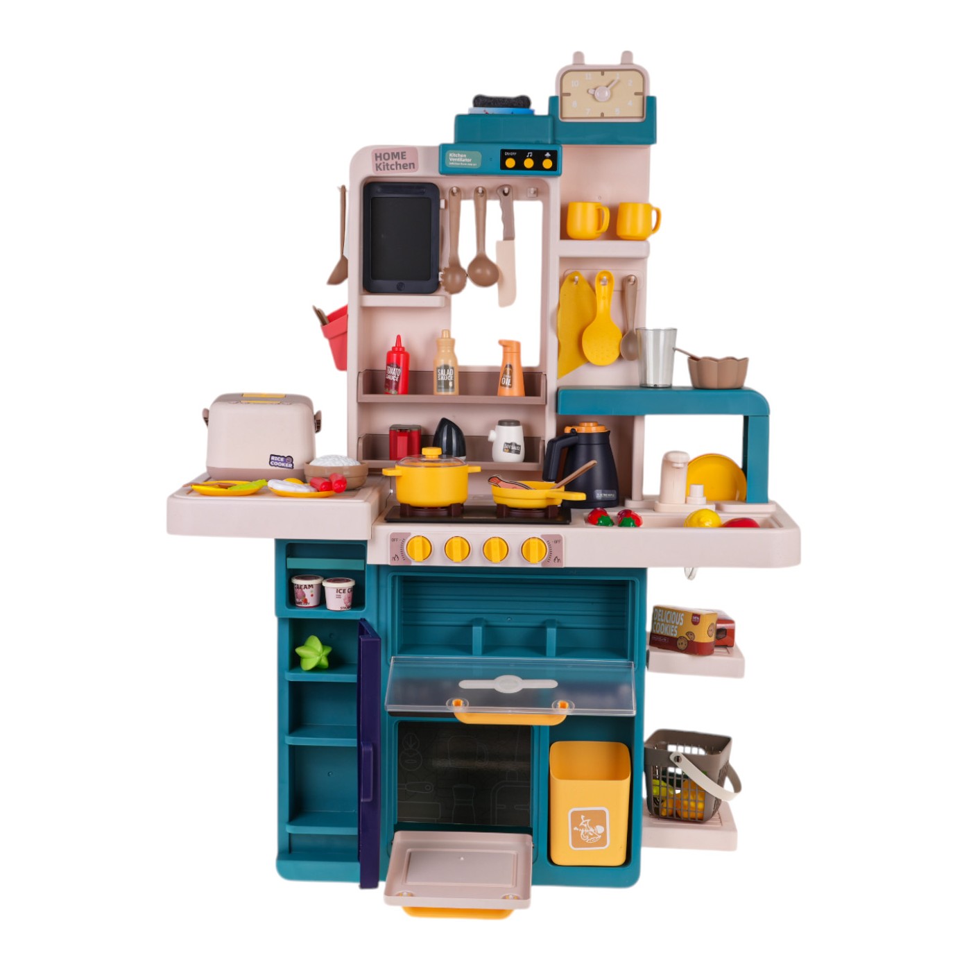 - vhodné pre deti od 3 rokov, - vyrobené z najkvalitnejšieho plastu v živých farbách, - bohato vybavená, sada sa skladá až z 80 prvkov, - pohyblivé gombíky, - horáky s podsvietením, - zvuky vyprážania a varenia, - z panvice alebo hrnca vychádza bezpečná para, - z nádoby na varenie ryže vychádza bezpečná para a je počuť zvuky varenia, - kohútik s tečúcou vodou, - otváranie chladničky, - otváranie rúry, - otváracia polica, - hodiny s pohyblivými ručičkami, - kriedová tabuľa, - panel s melódiami a zvukmi, ktoré vydáva digestor. |