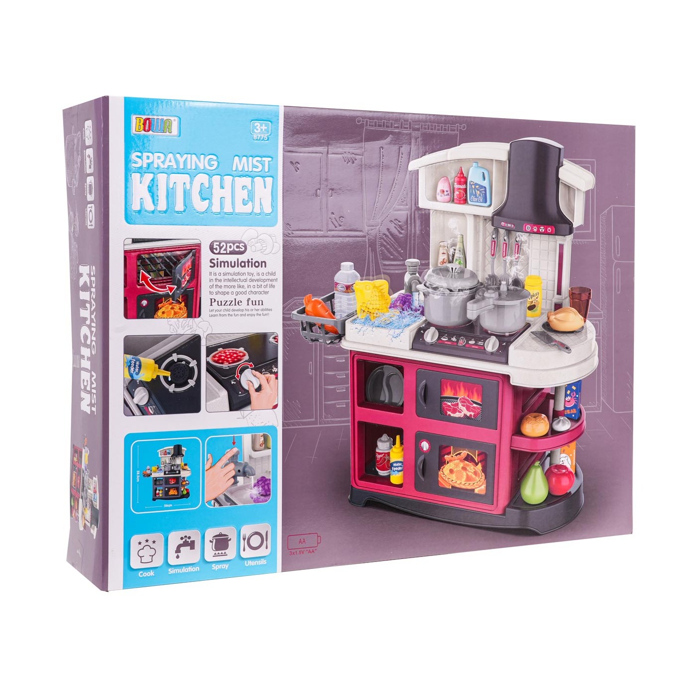 - vhodné pre deti od 3 rokov, - vyrobené z najkvalitnejšieho plastu v živých farbách, - bohato vybavená, sada sa skladá až z 52 prvkov, - stabilná konštrukcia, - pohyblivé gombíky, - horáky s podsvietením, - zvuky vyprážania a varenia, - kohútik s tečúcou vodou, - otváranie rúry, - otvárací gril, - studená para vychádzajúca z jedného z horákov, - imitácia kuchynského digestora. |