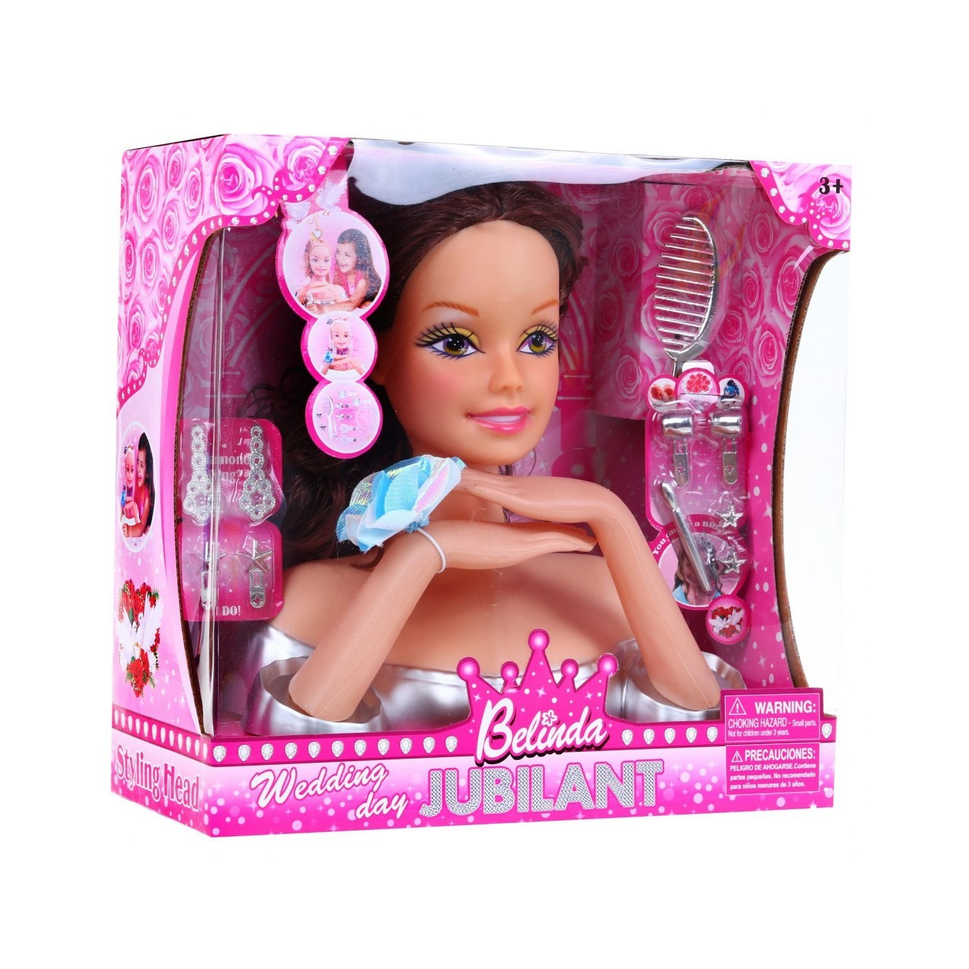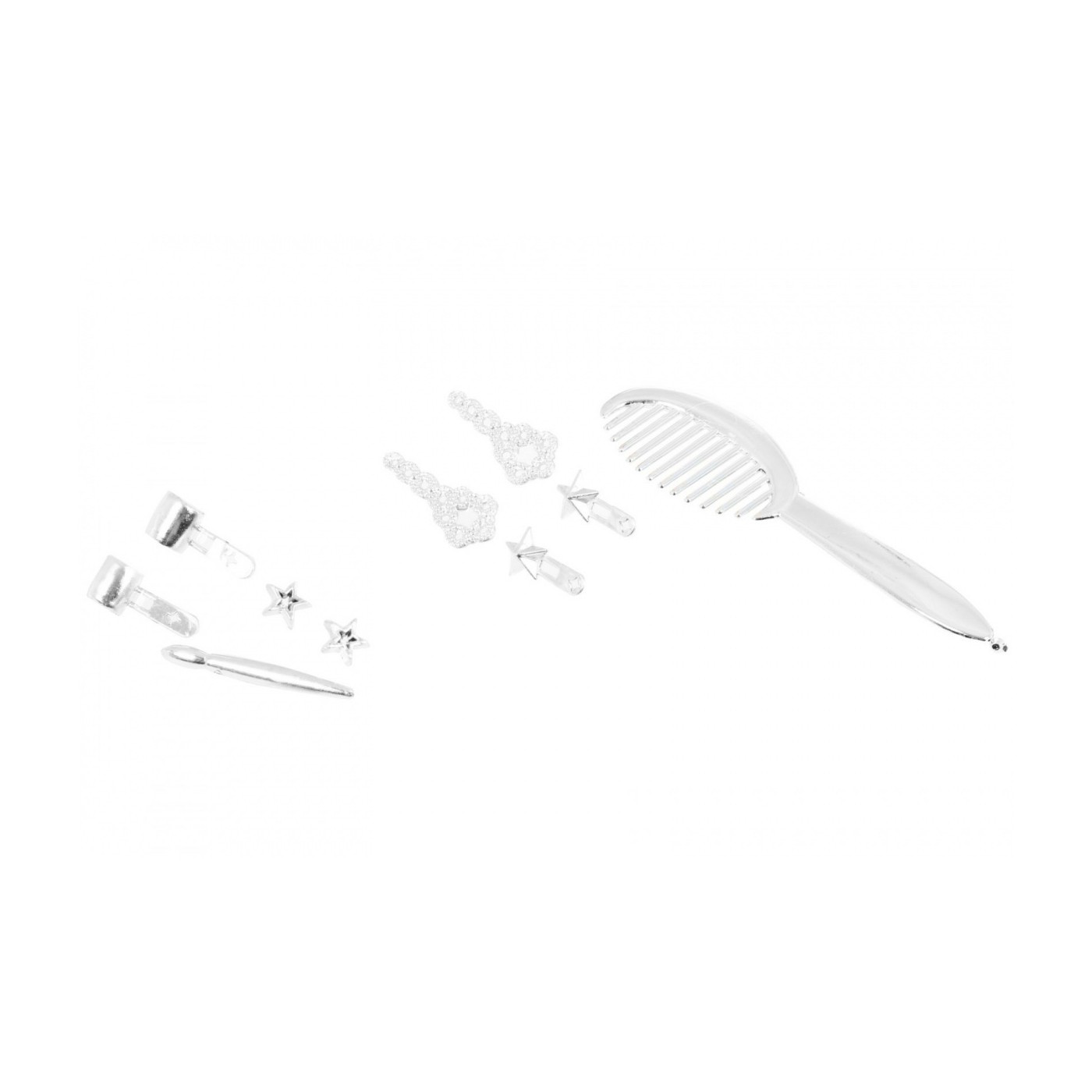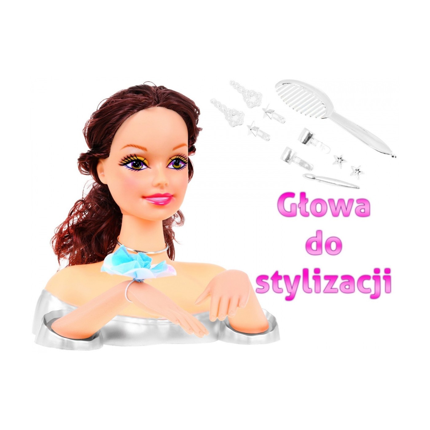 | - głowa do stylizacji, - grzebyk, - ozdobna gumka do wiązania włosów, - przypinki do włosów. | |