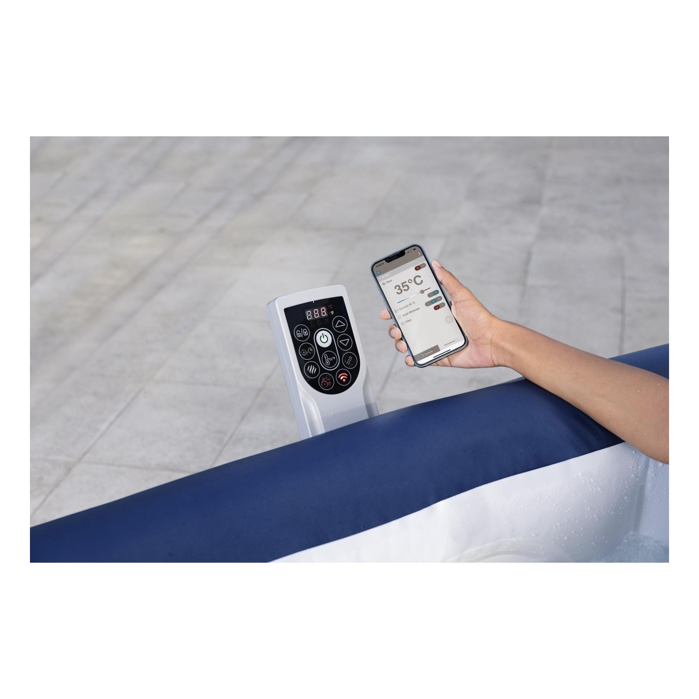 - Systém Soothing AirJet™ (140 vzduchových trysiek) -Regulátor masáže poskytuje 2 možnosti úrovne intenzity - Energeticky úsporný, časovo riadený vykurovací systém - možnosť ovládať z telefónu (APLIKÁCIA BESTWAY SMART HUB) |