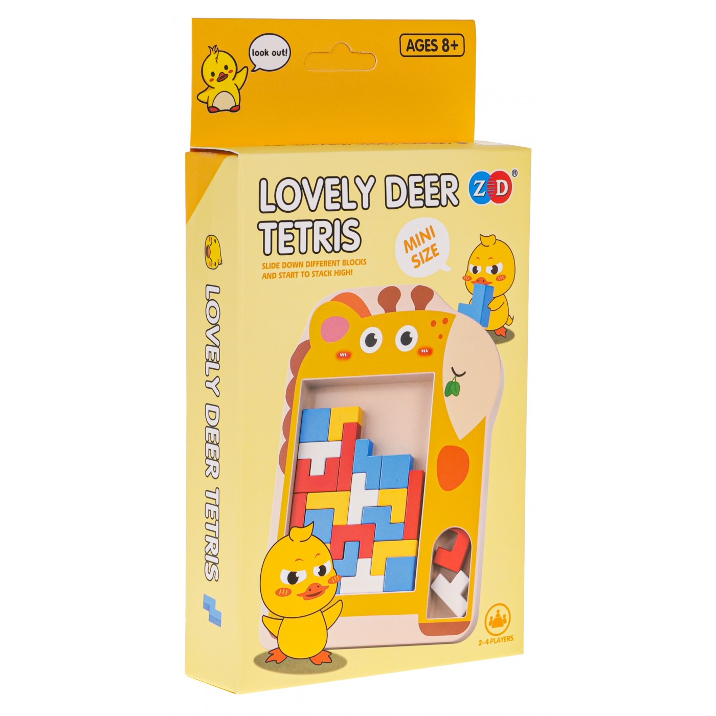 hra Tetris v mini verzii je pre deti od 8 rokov a dospelých. Hru je možné hrať sám alebo s viacerými ľuďmi a potom je tu prvok súťaživosti. Pri hre s viacerými ľuďmi môžeme bloky usporiadať v čase a zistiť, kto dokáže usporiadať všetky bloky na hracej ploche rýchlejšie. Hra sa hrá na doske v tvare žirafy. Na pravej strane dosky je priehradka na bloky. Bloky vložíme zhora a ľahko a rýchlo vyberieme cez spodný otvor. Ak chcete vyriešiť Tetris , umiestnite všetky bloky na hraciu plochu tak, aby tam neboli žiadne medzery. Vďaka malým rozmerom sa hra dá ľahko vziať kamkoľvek. Hra rozvíja logické myslenie a schopnosti priestorového plánovania.