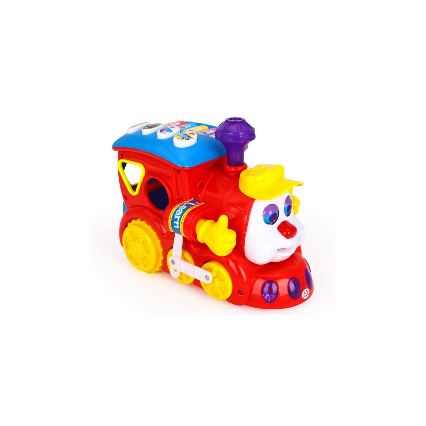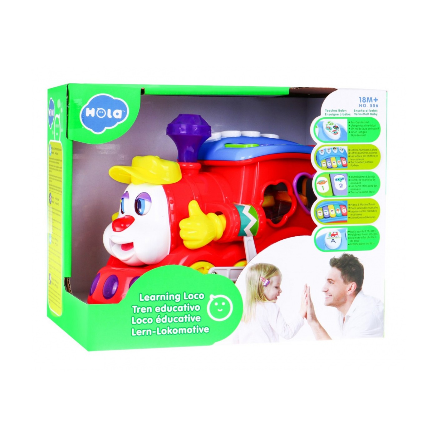 | | Edukacyjna ciuchcia z odgłosami i melodyjką. Jeździ, świeci, "pufa", rusza kominem, oczkami, rączkami i buzią. Lokomotywa to również sorter do układania różnokolorowych klocków o różnych kształtach – można je przechowywać w schowku z tyłu lokomotywy. Przycisk w kominie jest przełącznikiem pomiędzy kolejnymi trybami edukacyjnej zabawy, wyłącza melodyjki, uruchamia pianinko oraz przyciski A, B, C. Przycisk z pytajnikiem zmienia kolejne etapy zabawy: 1. dzięki poszczególnym przyciskom A, B, C – dziecko uczy się liter, zwrotów: stacja, tory, tunel. 2. kolorowa klawiatura pianinka również pełni wiele funkcji: - wydaje dźwięki pianina, - naciskając kolejne klawisze dziecko rozpoznaje nazwy zwierząt i odgłosy jakie wydają, - maluch ma okazję rozpoznawać kolory - quiz - zabawa w odgadywanie liter, cyferek, zwierząt, kolorów. Wmontowane kolorowe światełka uatrakcyjniają zabawę. To bardzo efektowny i magiczny zestaw zasilany jest trzema bateriami typu AA (zwykłe paluszki) - brak w zestawie. |