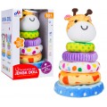 Mäkká pyramída v tvare žirafy pre deti od osemnástich mesiacov. Hračka je vyrobená z plyšu, je príjemná na dotyk a sýte farby materiálov priťahujú pozornosť dieťaťa a povzbudzujú k hre. Sada sa skladá zo základne, štyroch mäkkých krúžkov rôznych veľkostí a hlavy žirafy. Ďalšou funkciou je pišťadlo umiestnené v hlave, ktoré pri stlačení vydáva zvuk. Táto hračka precvičuje malé ručičky a učí ich, ako spájať tvary.