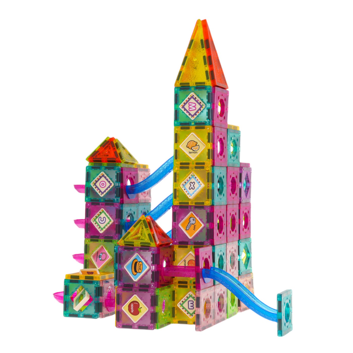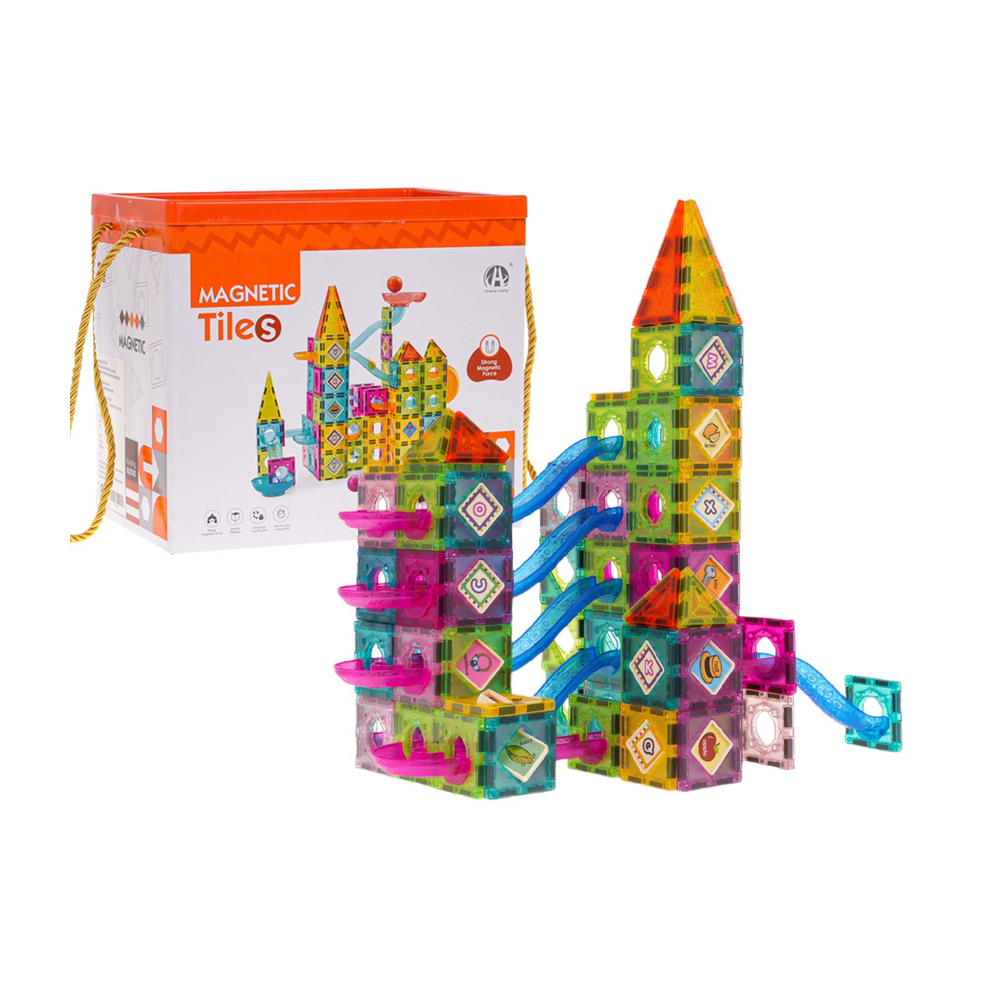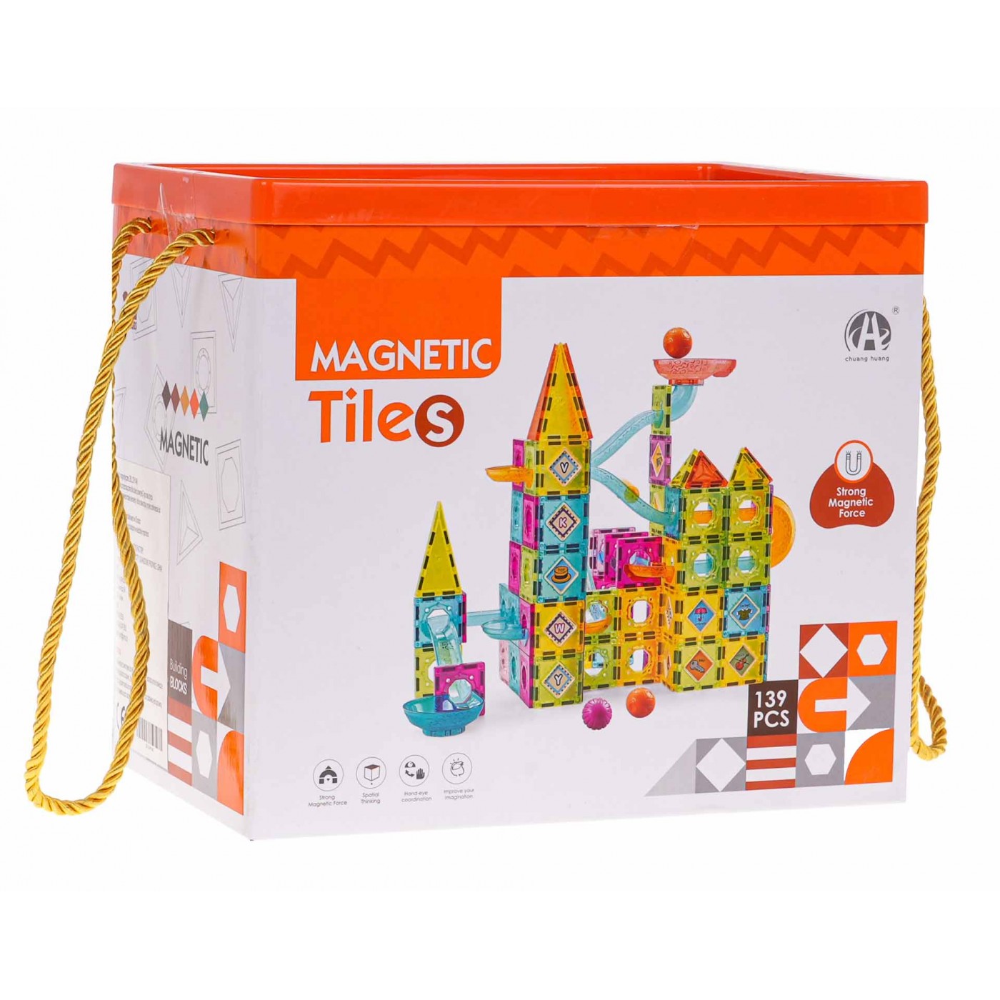 Sada farebných magnetických kociek pre deti od 3 rokov. Súprava pozostáva zo 139 prvkov a umožňuje postaviť guľôčkovú dráhu ľubovoľného usporiadania. Bloky sú vyrobené z najkvalitnejšieho materiálu, sú hladké a starostlivo vyrobené. Spojíme ich dohromady pomocou zabudovaných magnetov. Magnety veľmi dobre držia, zaisťujú stabilitu konštrukcie. Sada obsahuje obrázkový návod na zostavenie ukážkových stôp. Krabica na bloky má pohodlné šnúrky na prenášanie a na jej veku je triedič tvarov.