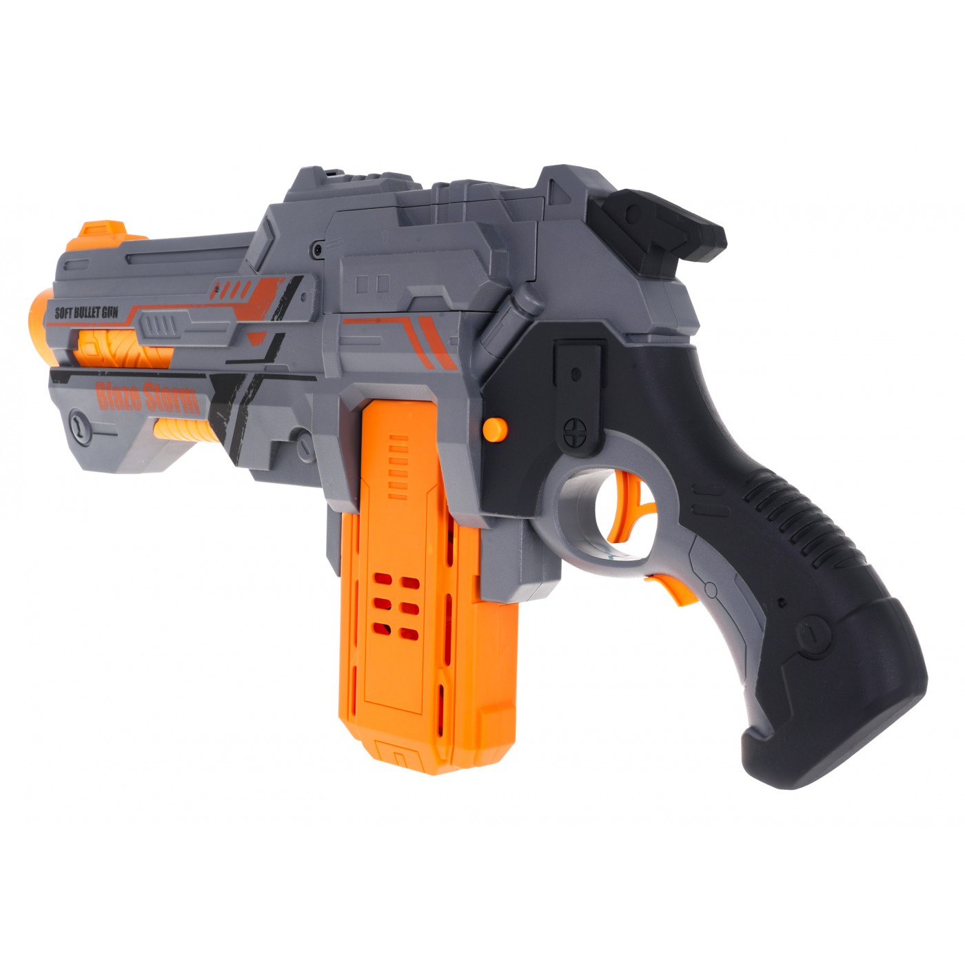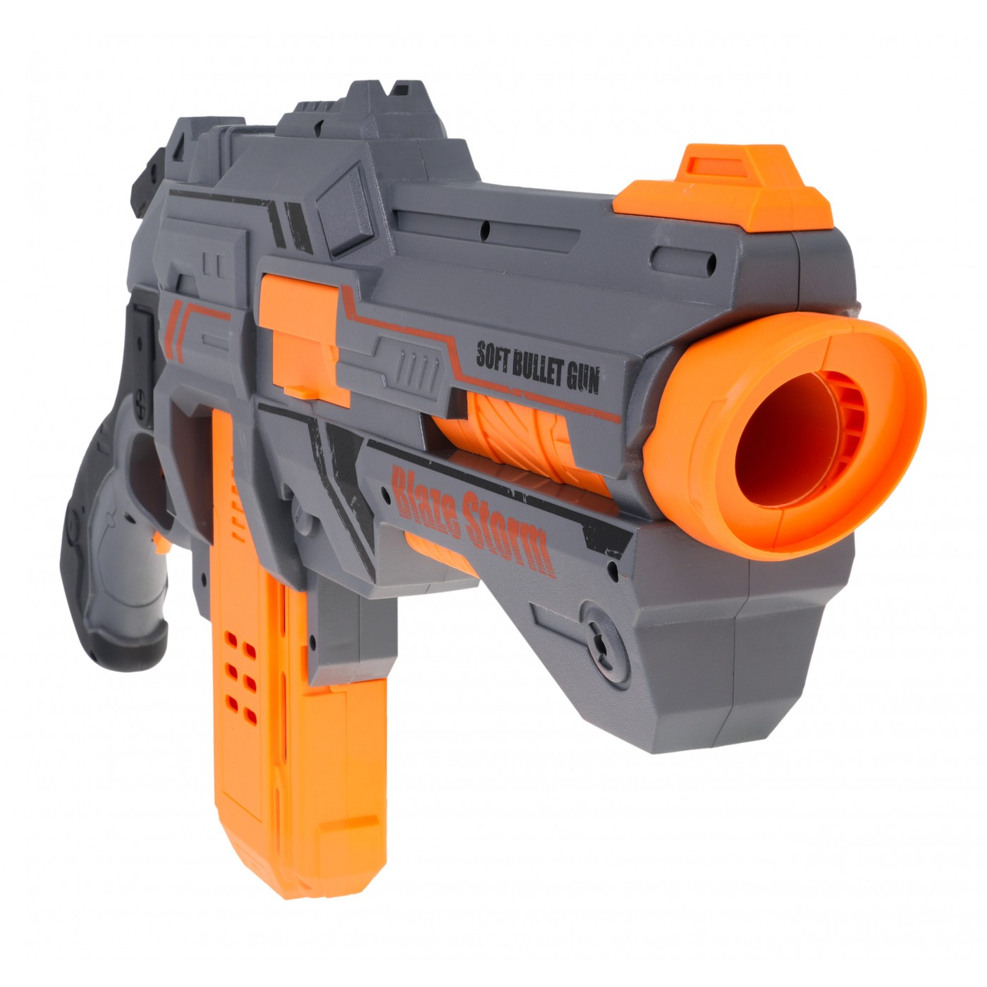 | Opis | BLAZE STORM Manual Soft Bullet Gun /krótki pistolet z wyrzutnią sprężynową + 20 piankowych pocisków (7063) |