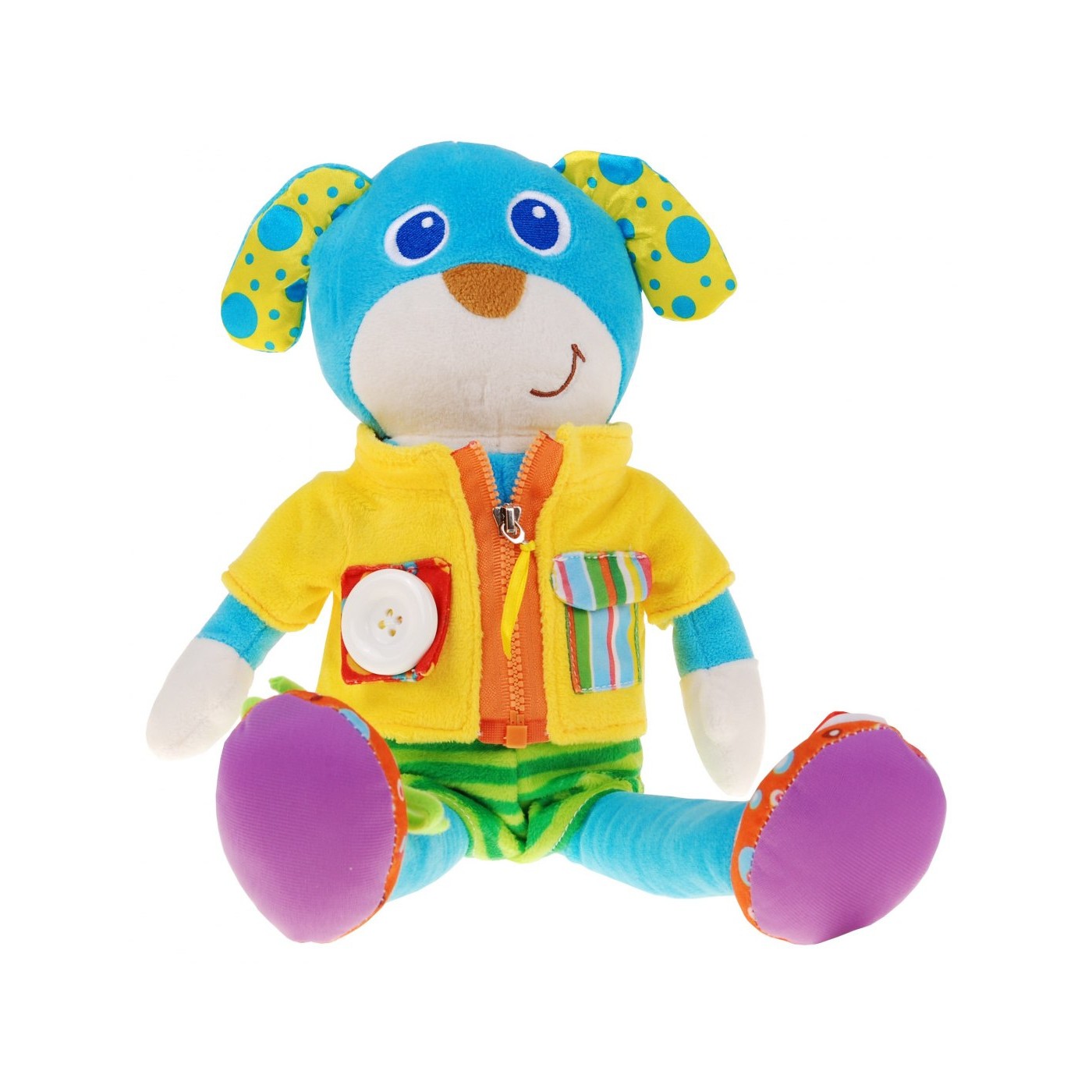 | | Któż z nas jako dziecko nie miewał problemów z prostymi czynnościami podczas ubierania się ? Chyba nikt. Dlatego teraz mamy przyjaciela, który pomoże naszemu szkrabowi poprzez zabawę ćwiczyć te skomplikowane czynności. Pomału, spokojnie i bez nerwów nauczy się jak zapinać guziczek, sznurować bucik, zasunąć zamek itp. Pluszak posiada kurteczkę zapinaną na zamek błyskawiczny oraz jedną kieszonkę na guziczek, a drugą na rzepę. Dwa buciki posiadają odpowiednio dwa najczęściej spotykane zapięcia w bucikach naszych pociech: sznurowadło i klamerka |