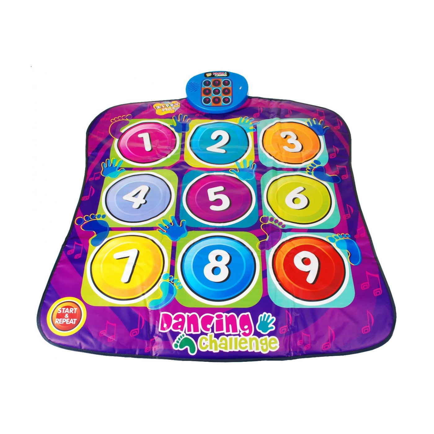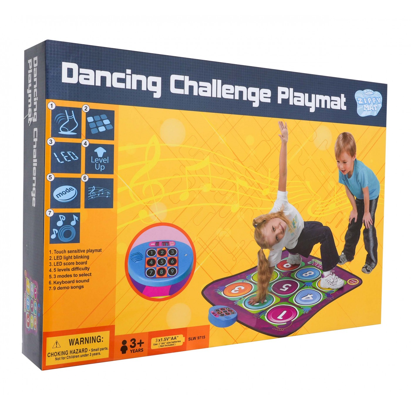 | | DANCING CHALLENGE – muzyczna wersja Twistera zakręceni w kolory idealnie łączy gimnastykę ze świetną zabawą. Głównym zadaniem będzie utrzymanie równowagi stając na rękach i stopach na coraz to innych kolorowych polach maty z określonymi symbolami - cyframi, nie jest takie proste w bliskim towarzystwie innych graczy Gra posiada 5 poziomów trudności. I poziom - musisz skupić się na panelu sterowania, obserwuj go, a on Ci wskaże który z symboli musisz nacisnąć na macie. Ten poziom trwa przez 1 minutę. Podczas gry możesz popełnić 7 błędów, jeśli popełnisz mniej niż 7 pomyłek, automatycznie przejdziesz do następnego poziomu gry. II poziom - polega na zmianie tempa w jakim będą pojawiały się wskazówki świetlne, będzie on krótszy co oznacza trudniejszą grę. III poziom - na tym poziomie gry mogą się pojawić dwie świetlne wskazówki w tym samym czasie. VI poziom – zasady gry pozostają takie same co w trzecim poziomie, na panelu starowania pojawiać się mogą teraz równocześnie 3 światełka, będziesz musiał użyć swoich dłoni i stóp równocześnie aby nacisnąć wskazane symbole na macie. V poziom(ostatni) – zasada gry pozostaje ta sama jak w poprzednim poziomie gry, na panelu starowani pojawić się mogą teraz równocześnie aż 4 światełka, więc gra stanie się trudniejsza. Zabawka zasilana jest 3 bateriami typu AA (brak w zestawie) |