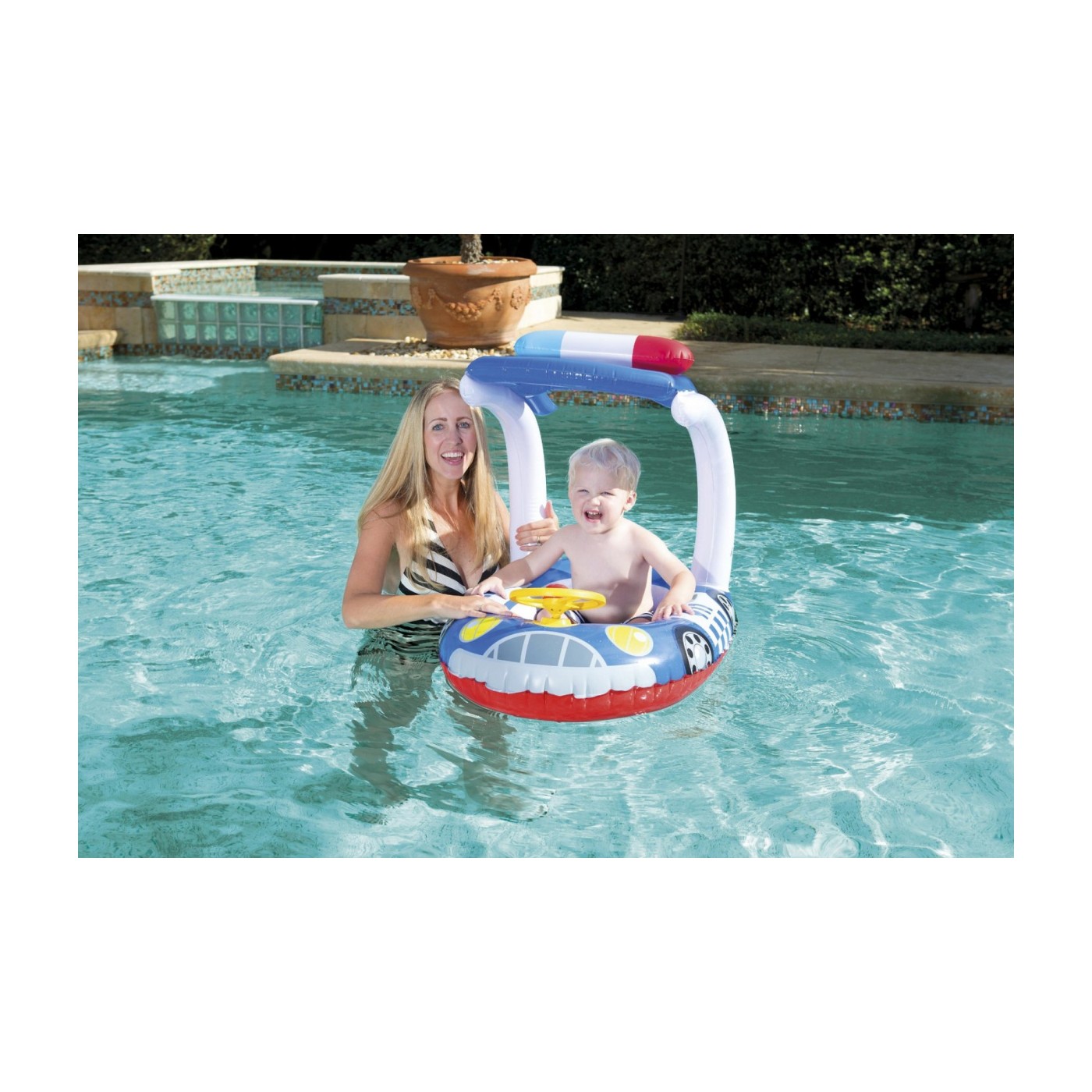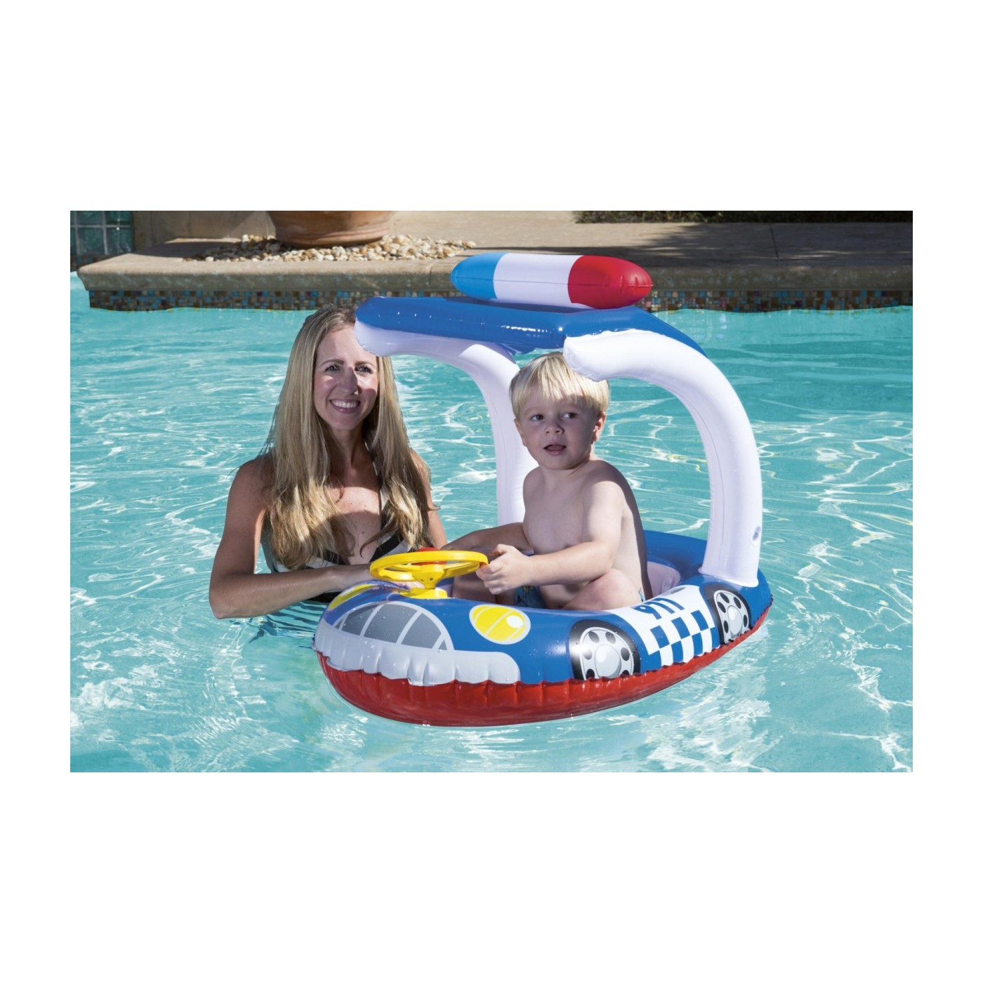 | | - dmuchany daszek przeciwsłoneczny, - miękka dmuchana podłoga, - zabezpieczenie przed promieniowaniem UPF 50+- okienko na dnie materaca, - w kierownicy wbudowany klakson. |