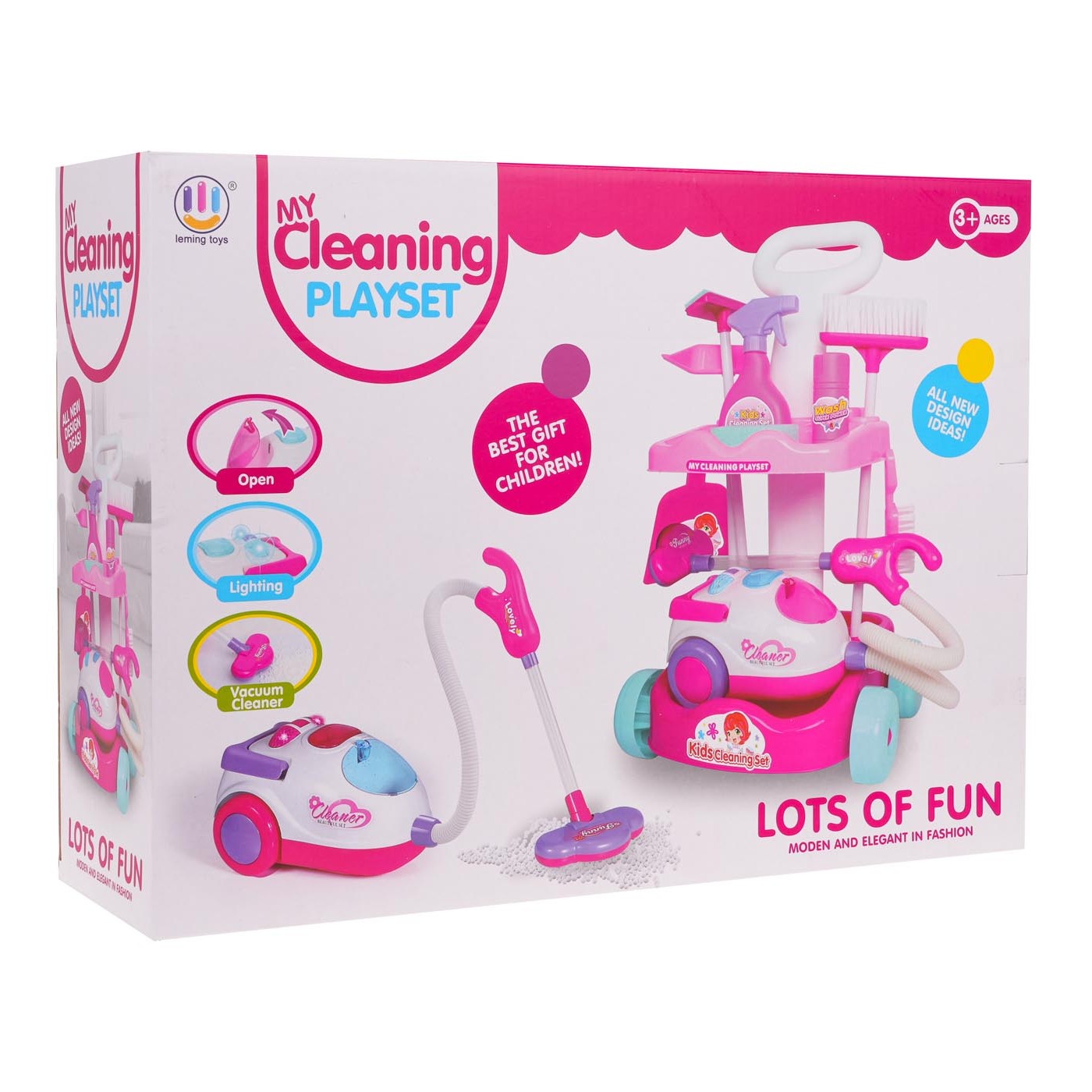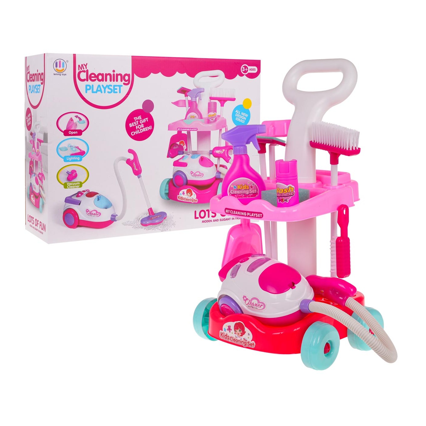 - určené pre deti od 3 rokov, - vyrobené z najkvalitnejšieho plastu v živých farbách, - stabilný vozík s rukoväťou, kolieskami a 2 policami, - interaktívny vysávač so zvukmi vysávania, osvetlením a zberom drobných nečistôt z povrchu, - skvelý spôsob, ako sa naučiť čistote. |