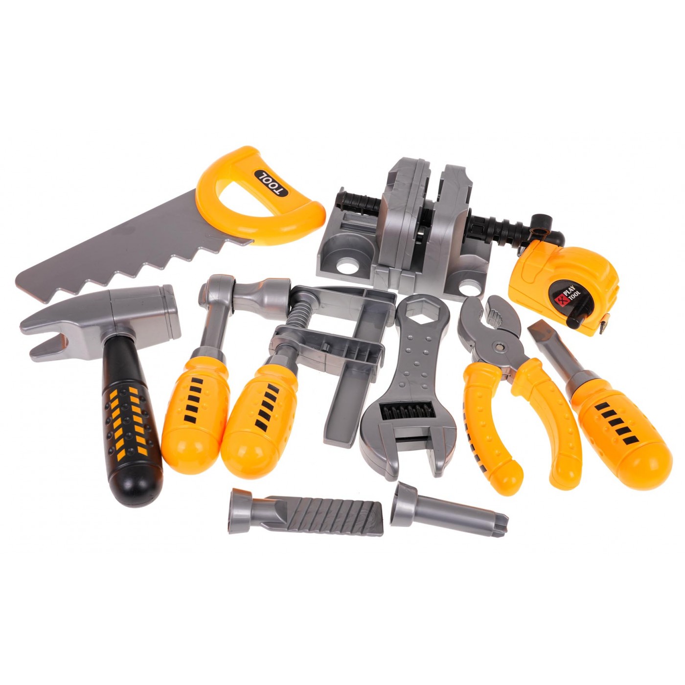 - dielňa cca 41 cm x 39 cm x 71 cm, - kufor cca 41 cm x 11 cm x 39 cm, - vŕtačka/skrutkovač cca 19,5 cm x 19 cm x 6 cm, - zverák cca 16,5 cm x 6,5 cm x 8,5 cm, - skrutkovač cca 14 cm x 4 cm, - kladivo cca 14,5 cm x 9 cm x 3 cm, - ručná píla cca 20,5 cm x 10 cm x 2 cm, - kliešte cca 14 cm x 6 cm x 2 cm, - kľúč cca 14 cm x 5,5 cm x 2 cm, - svorka cca 16 cm x 7 cm x 4 cm, - skrutkový kľúč cca 14,5 cm x 6 cm x 3 cm, - meracie pásmo cca 7,5 cm x 5,5 cm x 4,5 cm, - 4 x skrutkovacie prvky cca 20 cm x 4 c, x 1 cm, - skrutky cca 5,5 cm x 3 cm, - presahy cca 3 cm, - rozširujúce hmoždinky cca 6 cm x 3 cm, - háčiky cca 5,5 cm x 5 cm, - balenie cca 40 cm x 11,5 cm x 49 cm. |