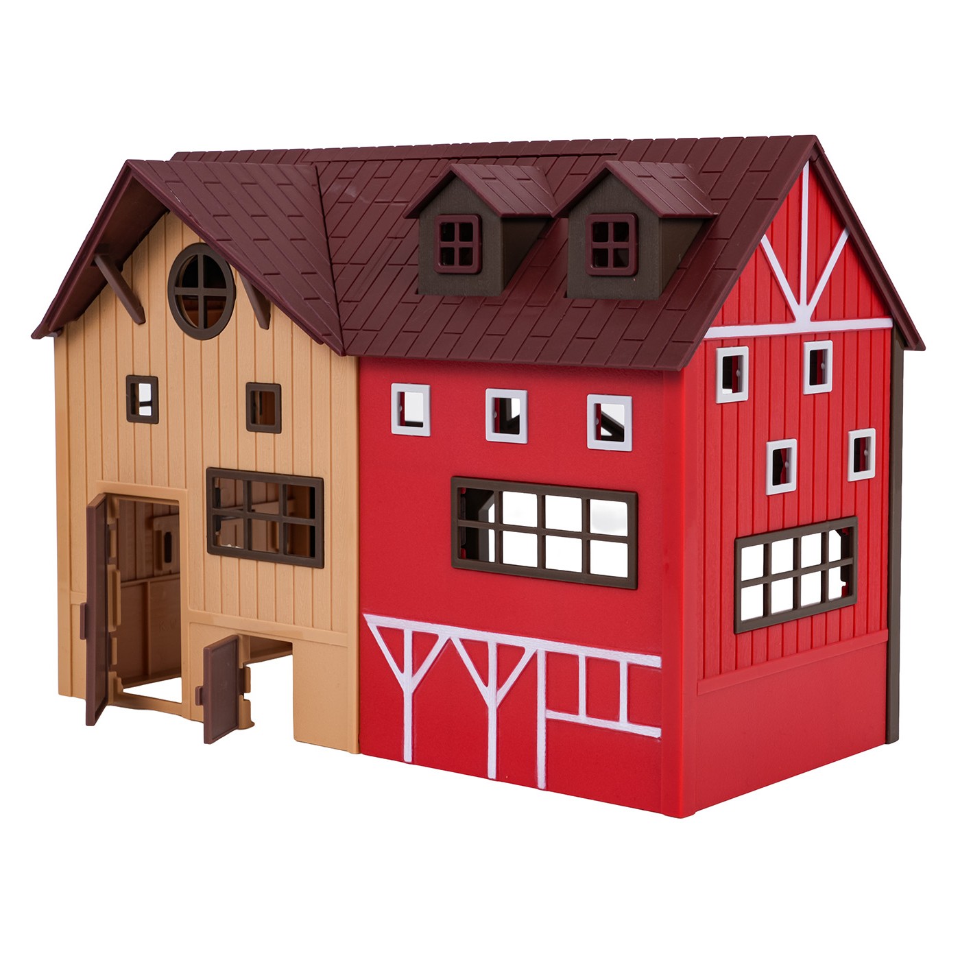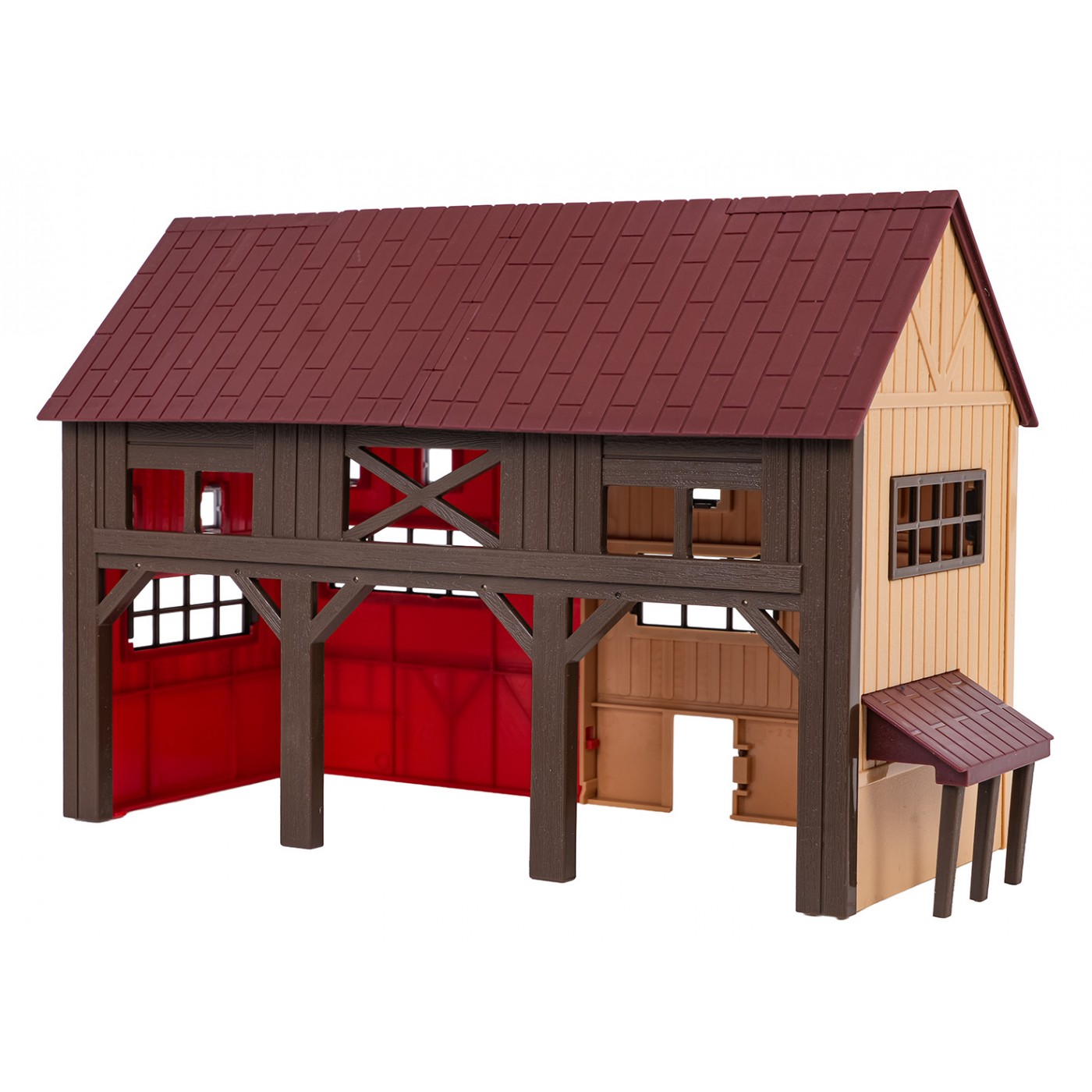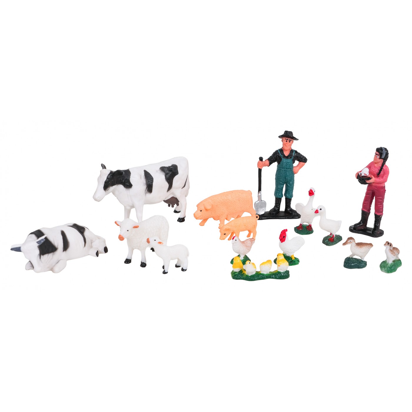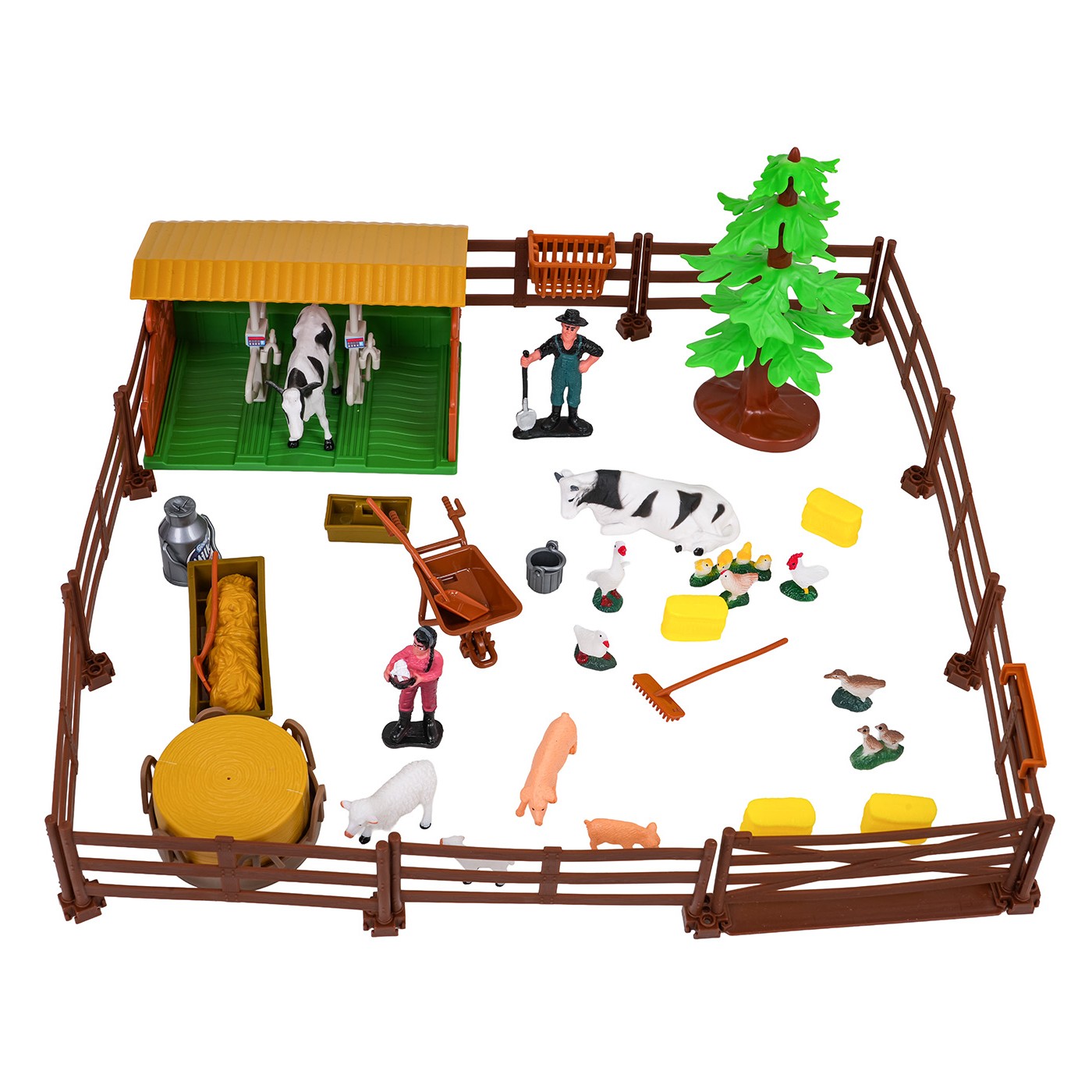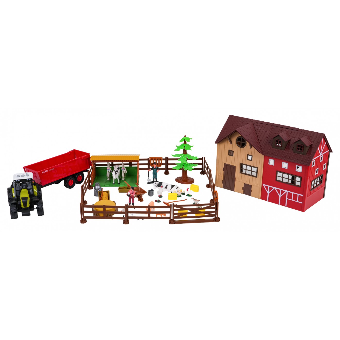 - stodola, - traktor, - príves, - statok, - ohrada na dojenie kráv, - figúrky farmárov, - 2 x fondán, - strom, - prasiatko s malým prasiatkom, - jahňacie s mláďatami, - káčatko s mláďatami, - 2 x hus, - sliepka s kuriatkami a kohútom, - nádoba na mlieko, - vedro, - balíky slamy, - nádoba na seno, - žľab, - fúriky, - hrable, vidly, lopata, - obrázkové pokyny. |
