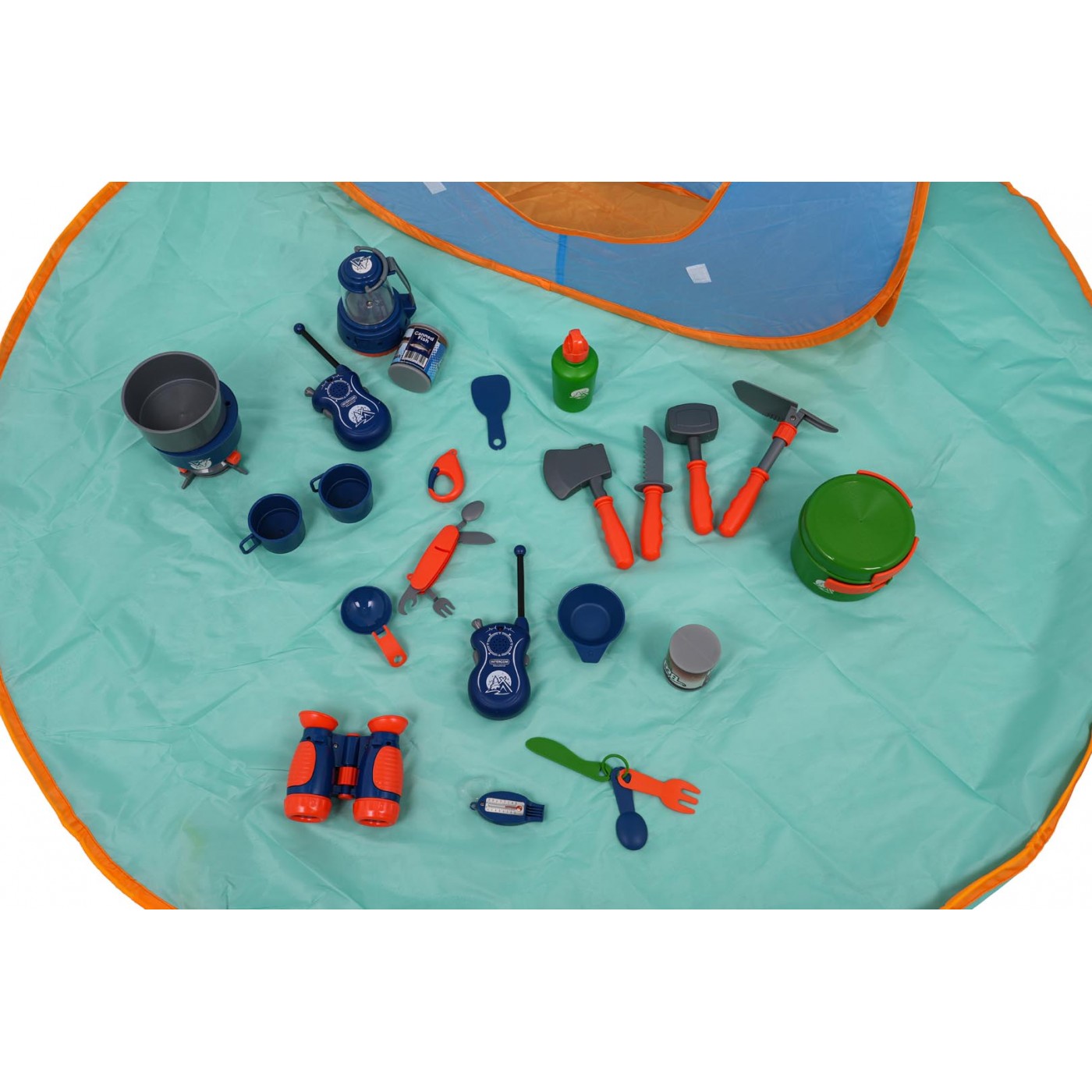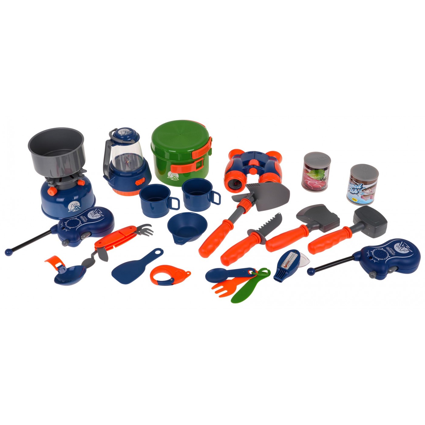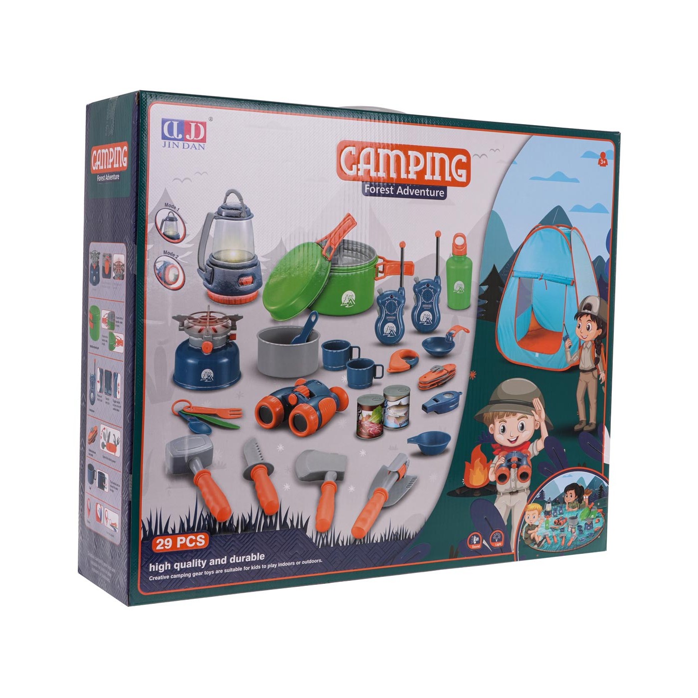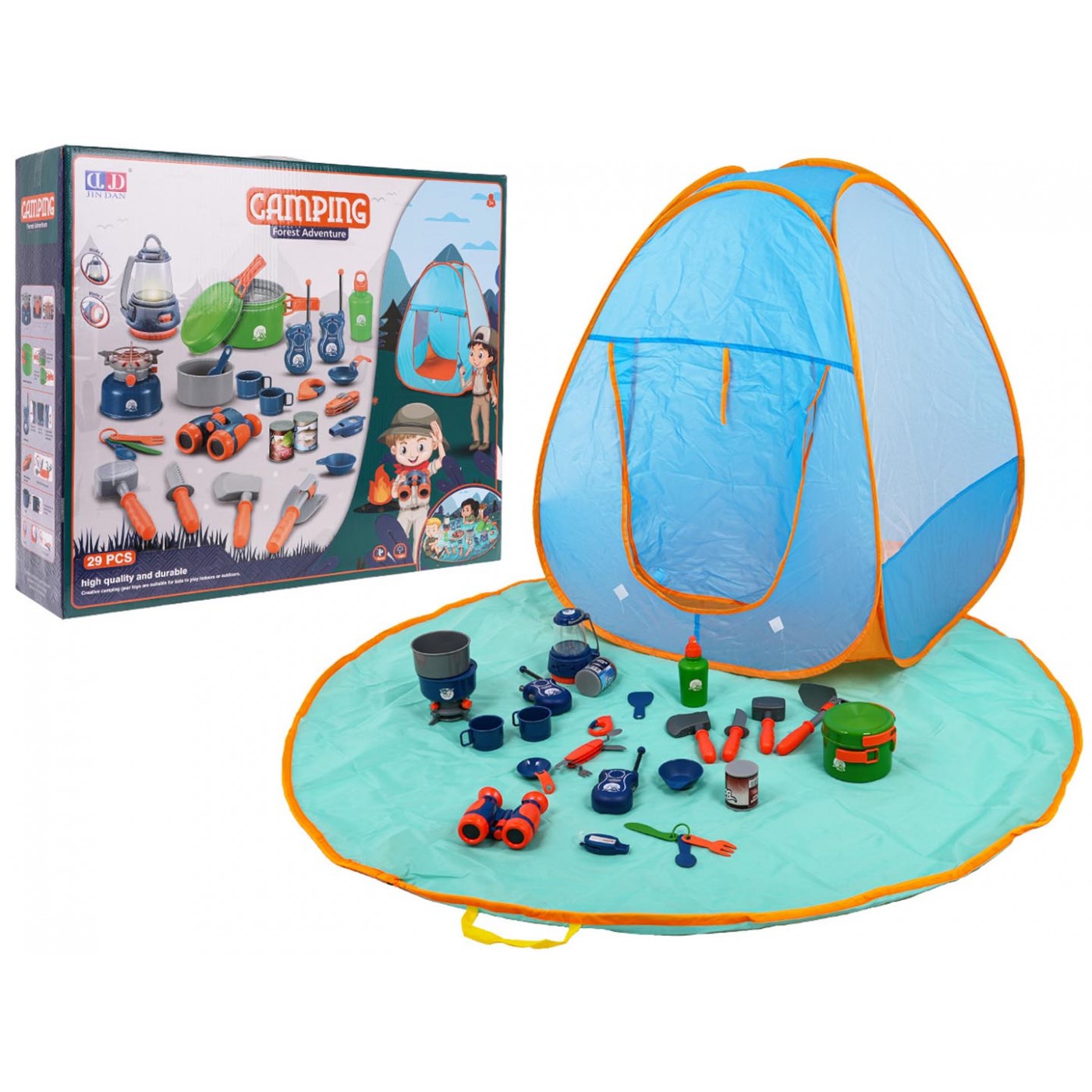 Dobre vybavená kempingová súprava, stan a kempingové doplnky pre deti od 3 rokov. Ideálna súprava na hranie v interiéri aj exteriéri. Celok pozostáva z 29 prvkov vrátane: stan, kempingová podložka, kempingový varič, baterka, kempingová lampa, ďalekohľad, vysielačky, náradie a hrnce. Súprava je vyrobená z najkvalitnejších materiálov a je úplne bezpečná pre deti. Vysielačky sú napájané 2 x 9 V batériami (celkom), horský varič je napájaný 2 x AA 1,5 V batériami, baterka je napájaná 2 x AA 1,5 V batériami.