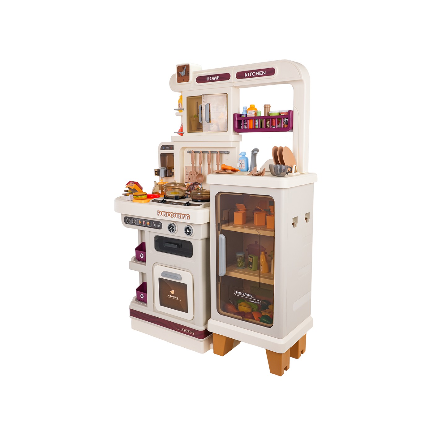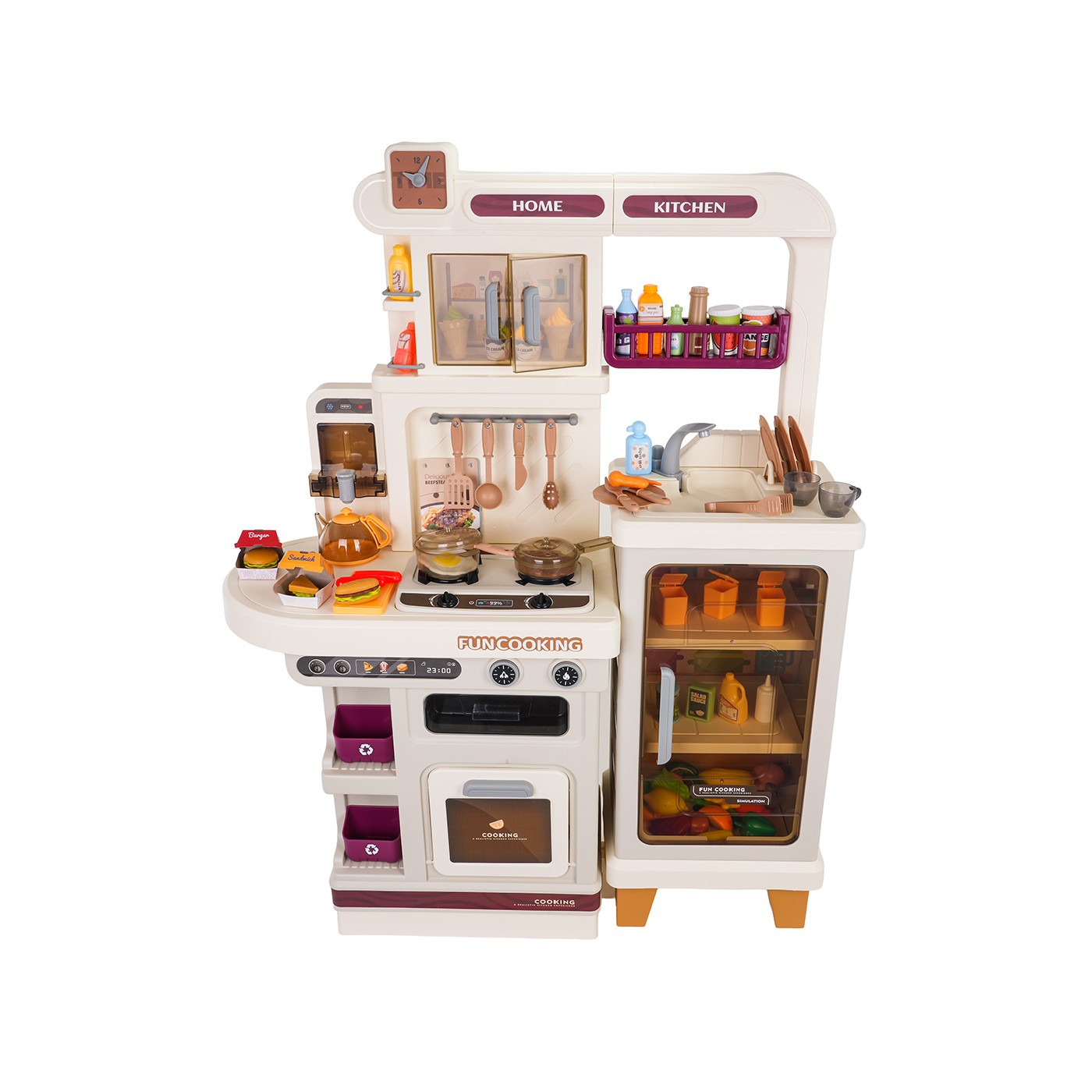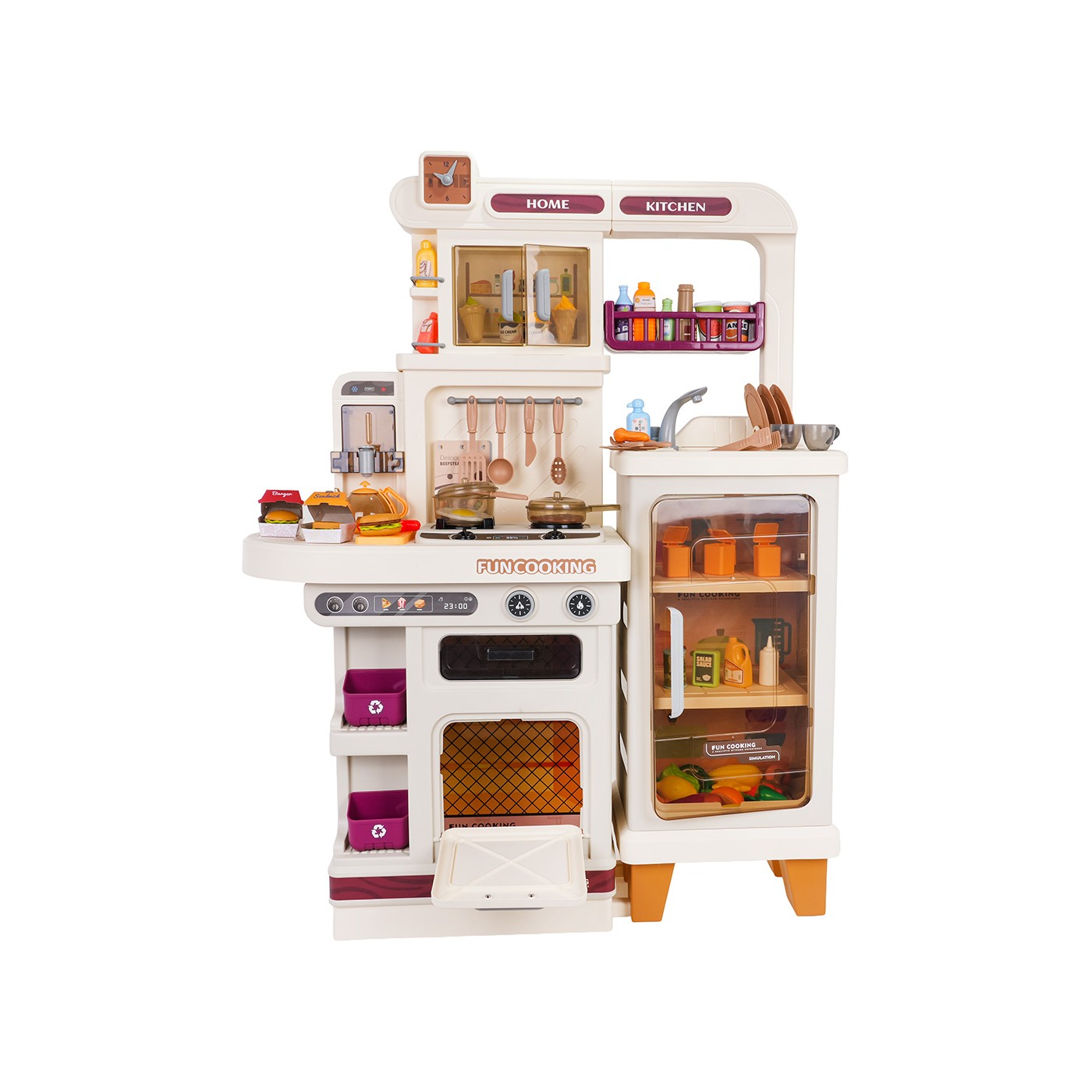Multifunkčná kuchynka s funkciami svetla, zvuku, vody a pary pre deti staršie ako tri roky. Kuchynka je vyrobená z kvalitného plastu v žiarivých farbách. Sada pozostáva z 93 dielikov a je bohato vybavená kuchynským príslušenstvom a potravinami. Kuchynka má funkčný kohútik, z ktorého tečie voda, osvetlené horáky vydávajú zvuky vyprážania a varenia a z hrnca stúpa para. Kuchynka obsahuje aj chladničku a rúru. Skrinky a police poskytujú dostatok úložného priestoru pre všetko príslušenstvo. Hračka je napájaná 3 x AA 1,5V batériami (nie sú súčasťou balenia).