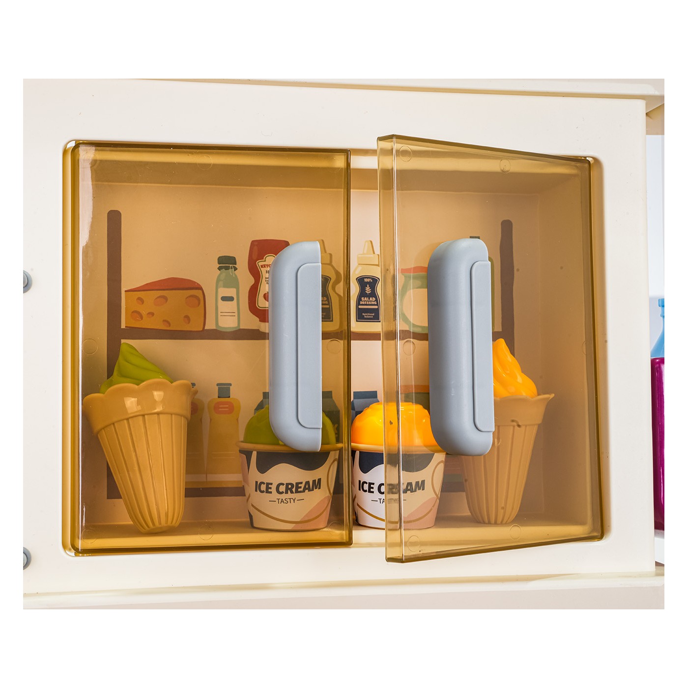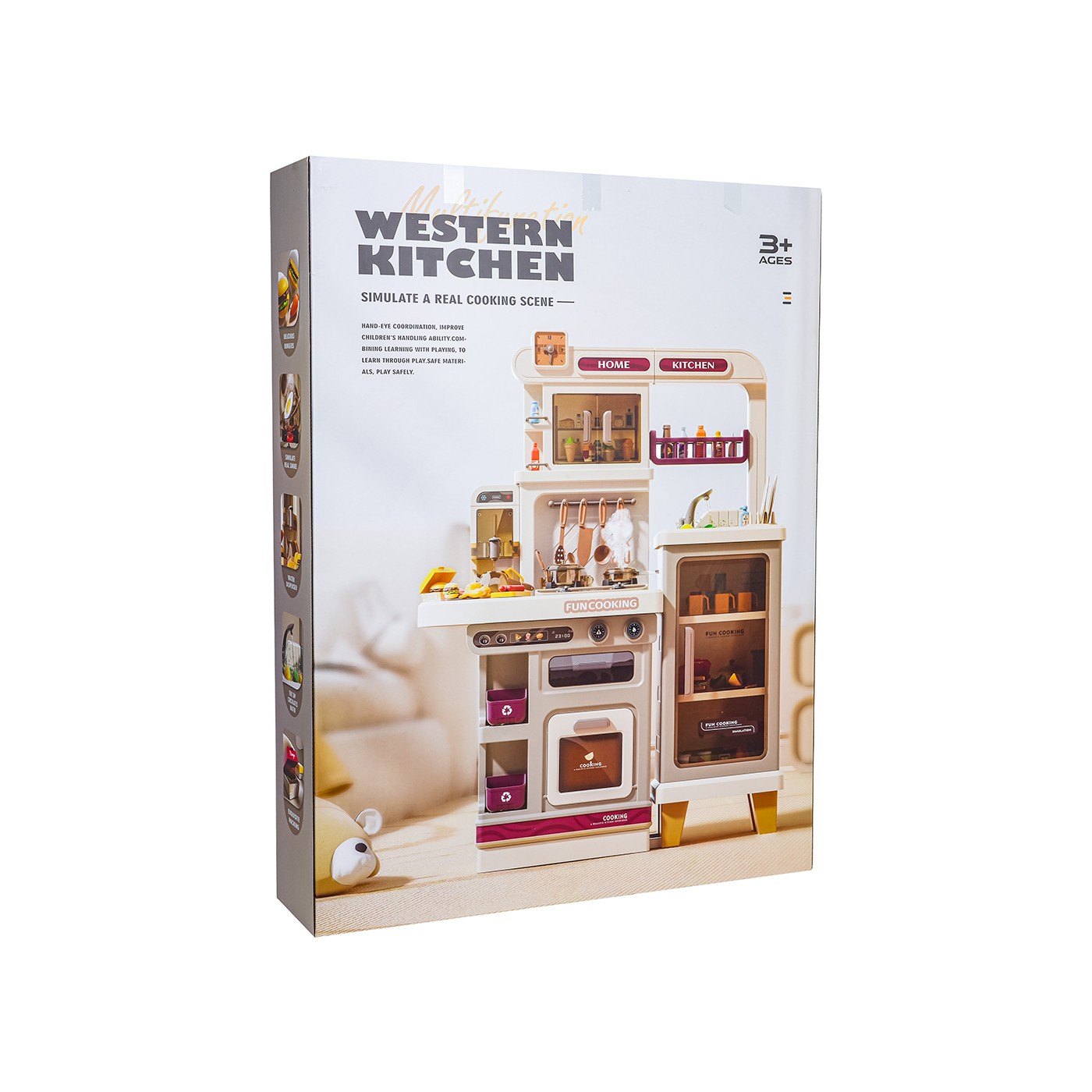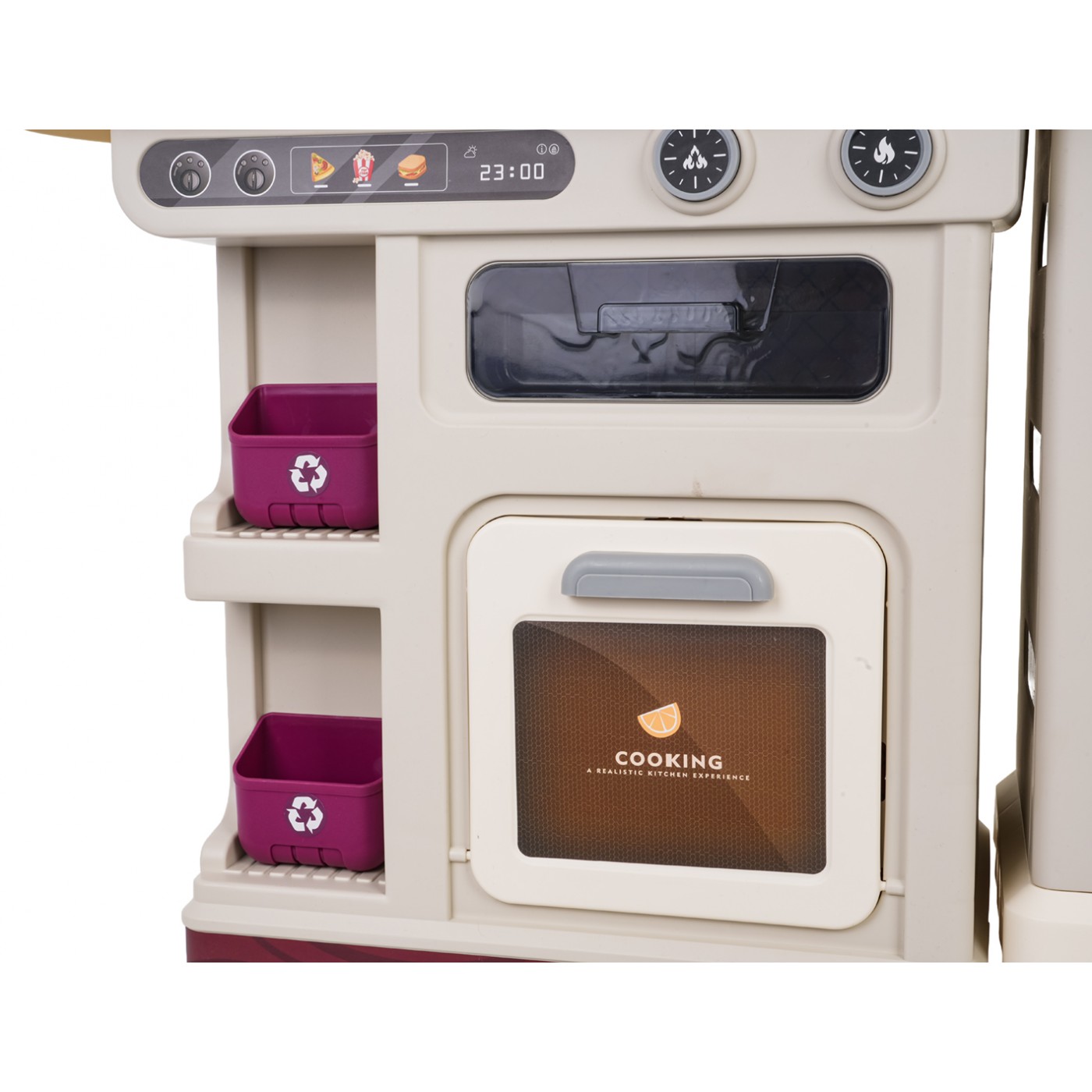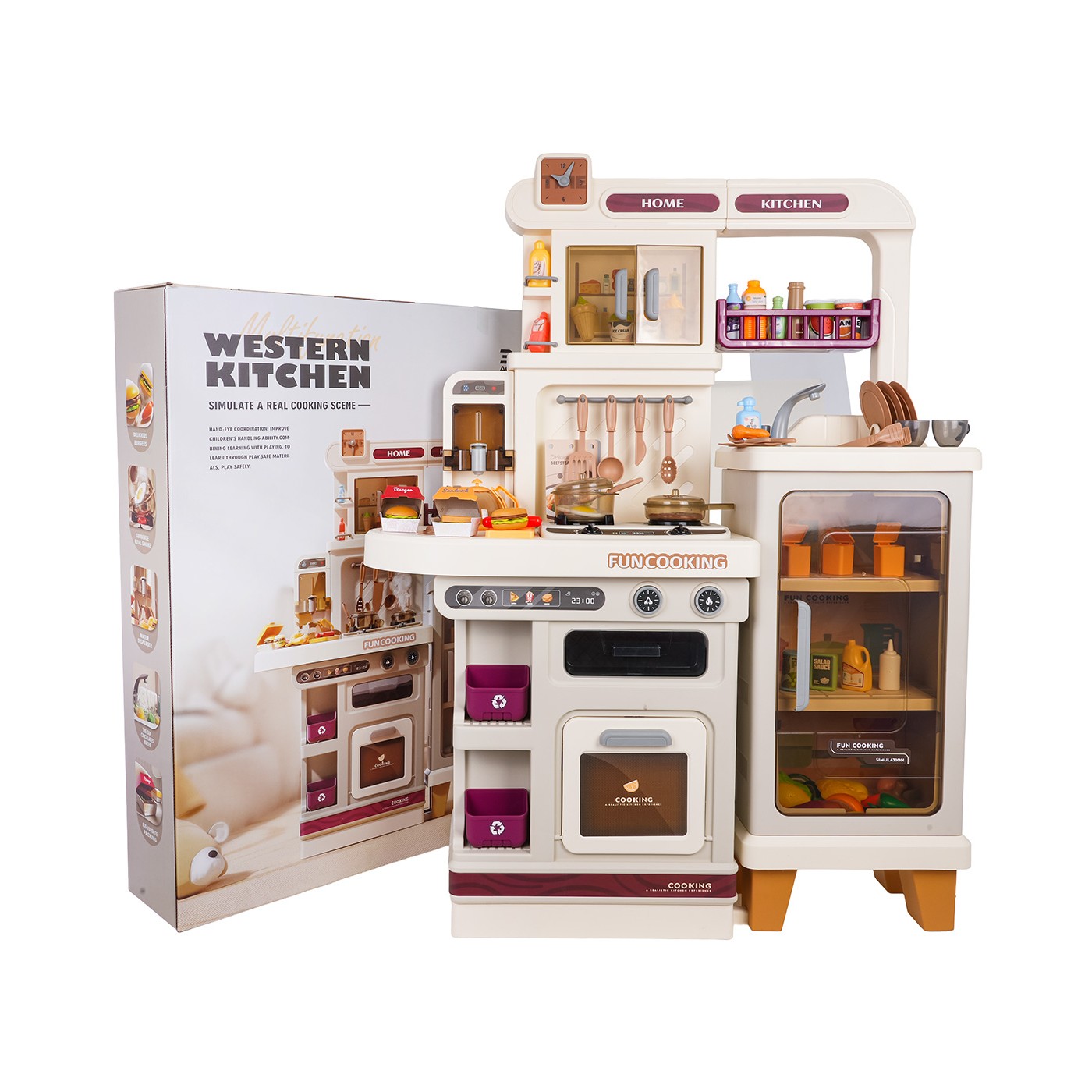 Multifunkčná kuchynka s funkciami svetla, zvuku, vody a pary pre deti staršie ako tri roky. Kuchynka je vyrobená z kvalitného plastu v žiarivých farbách. Sada pozostáva z 93 dielikov a je bohato vybavená kuchynským príslušenstvom a potravinami. Kuchynka má funkčný kohútik, z ktorého tečie voda, osvetlené horáky vydávajú zvuky vyprážania a varenia a z hrnca stúpa para. Kuchynka obsahuje aj chladničku a rúru. Skrinky a police poskytujú dostatok úložného priestoru pre všetko príslušenstvo. Hračka je napájaná 3 x AA 1,5V batériami (nie sú súčasťou balenia).