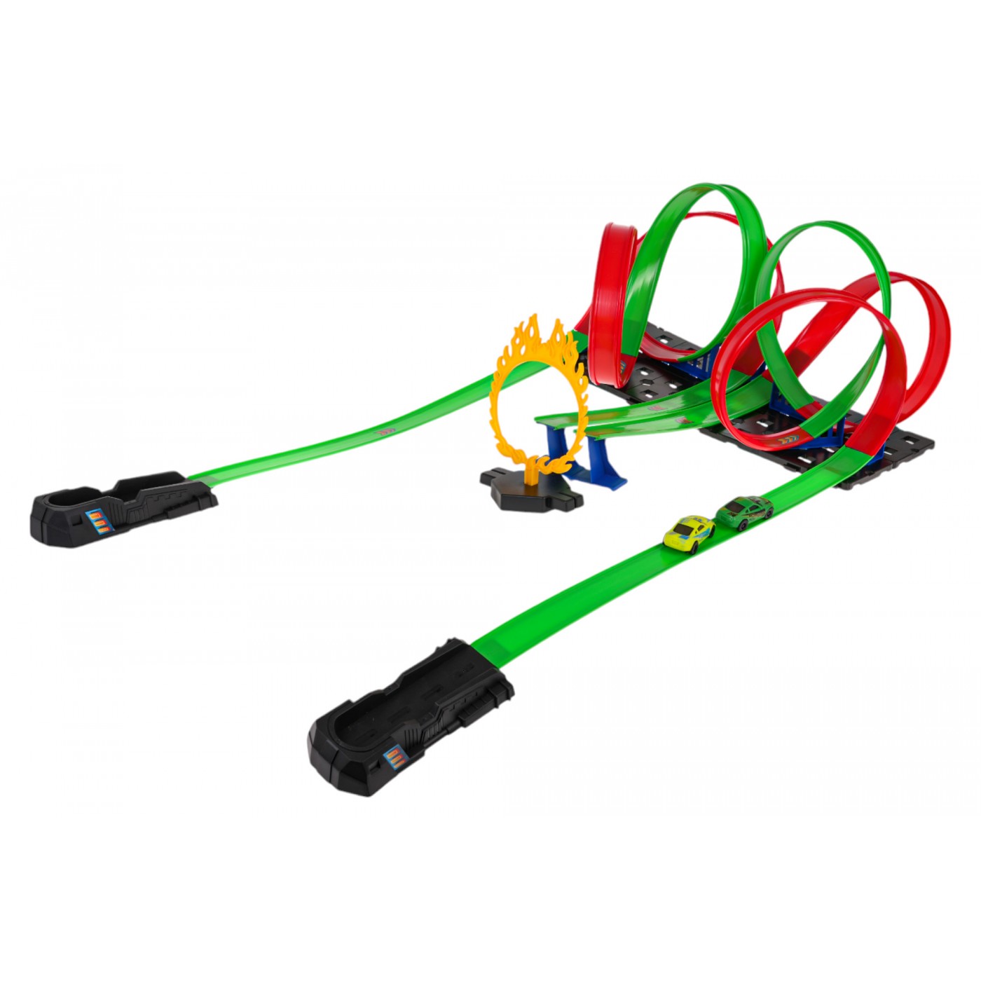 Dvojitá pretekárska dráha s odpaľovačom a slučkami pre deti od 3 rokov. Dráha je vyrobená z najkvalitnejšieho plastu v živých farbách. Súprava pozostáva z dvoch vzájomne prepojených dráh, s rovnými úsekmi na zrýchlenie vozidla, 360-stupňových slučiek, spoločného odpaľovacieho zariadenia a dvoch vozidiel. Perfektná zábava pre dvoch ľudí. Vozidlá sú poháňané ťahovým pohonom späť . Stačí jemne zatlačiť vozidlo dozadu a rozbehne sa po trati na plný výkon.