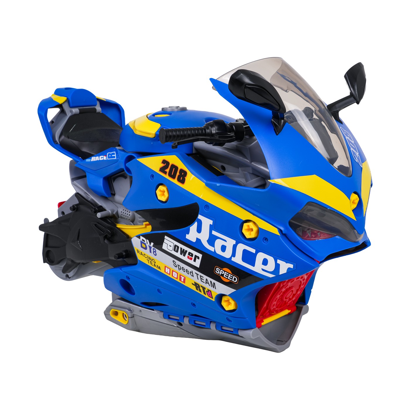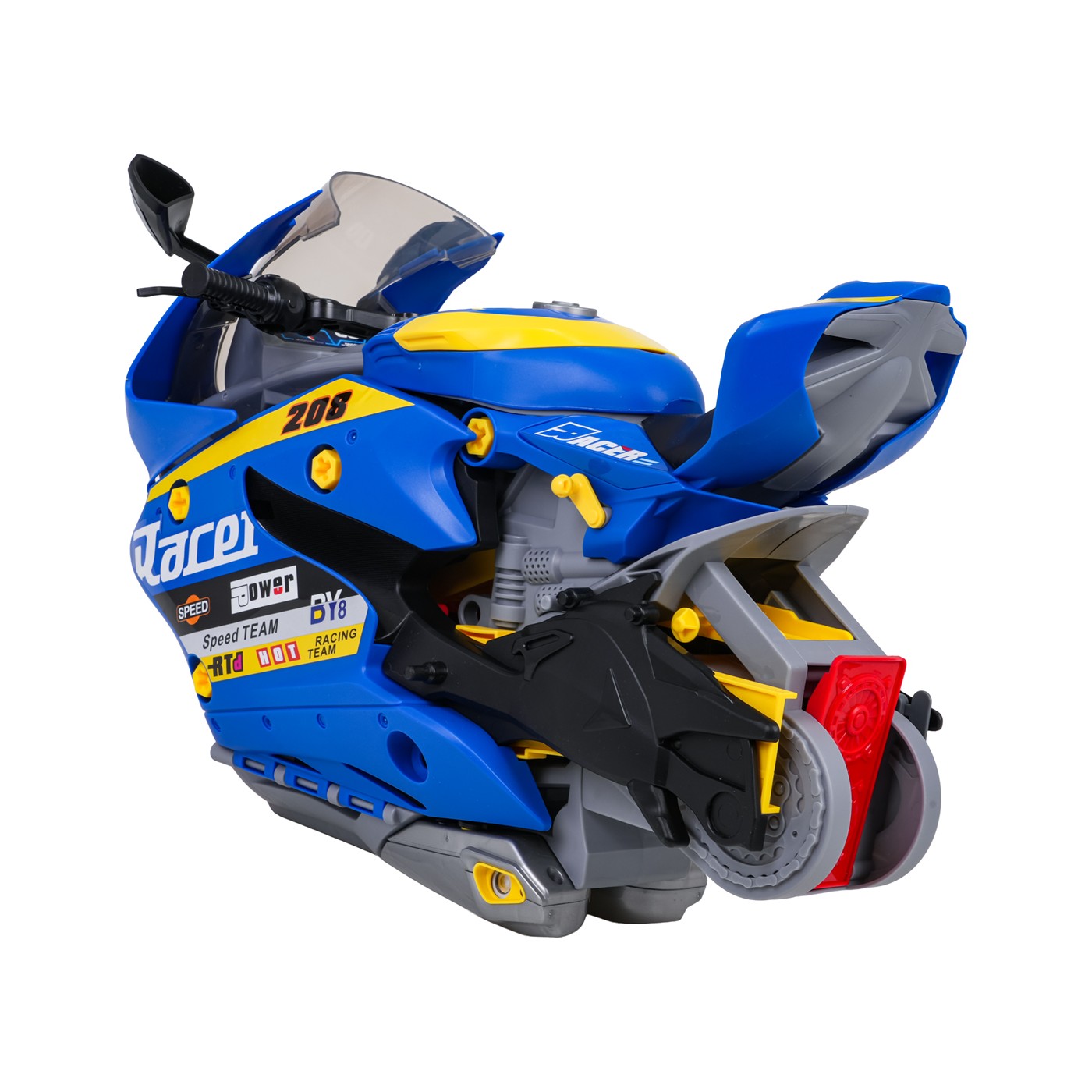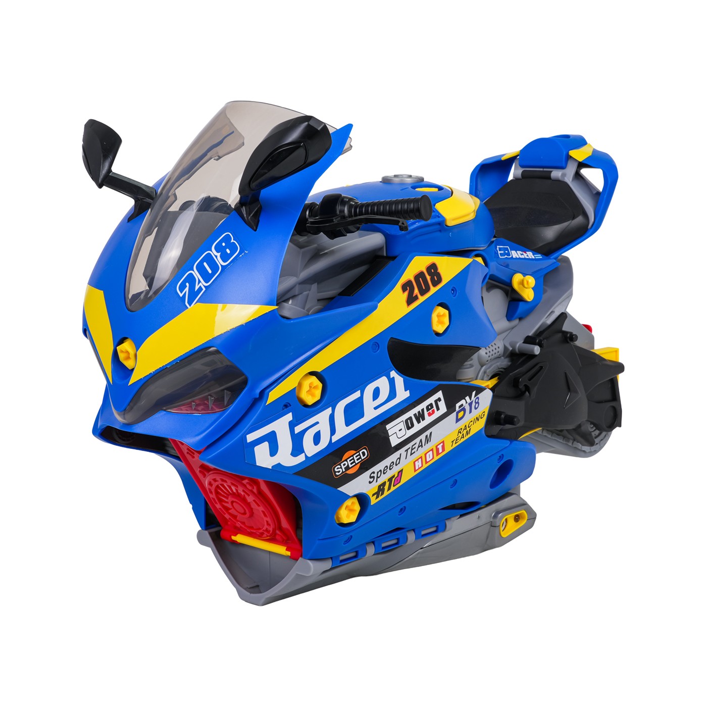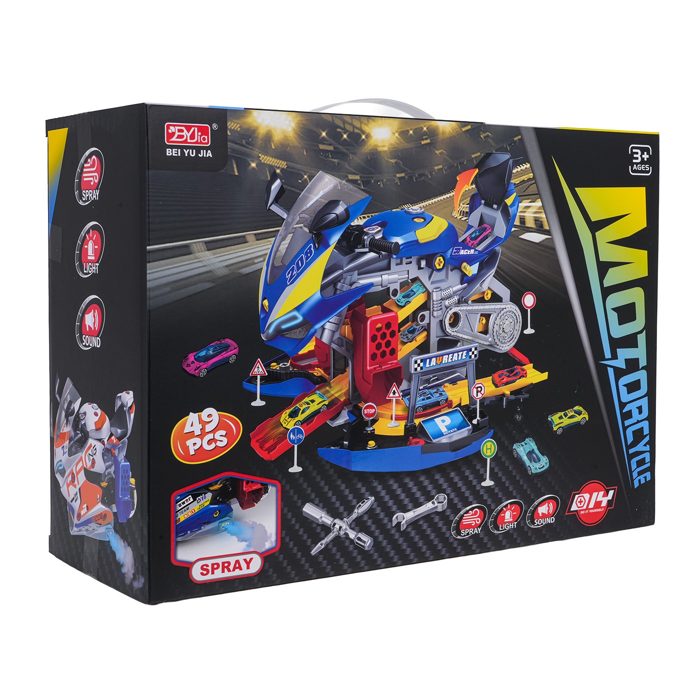 Hračka 2 v 1, veľká motorka a parkovisko, pre deti od troch rokov. Motocykel má svietiace svetlomety a zadné svetlá. Vydáva zvuky štartovania, jazdy a zrýchľovania a z výfuku (po naplnení nádrže vodou) vychádza dym. Boky motorky sa dajú otvoriť, čím sa vytvorí parkovisko so šmykľavkami, cestami a čerpacou stanicou. Sada obsahuje kľúč na demontáž, šesť pružinových autíčok , dopravné značky a dávkovač vody. Motocykel má praktickú rukoväť na prenášanie a je vyrobený z kvalitného plastu pre krásny vzhľad. Hračka je napájaná 3 x AAA 1,5V batériami (batérie nie sú súčasťou balenia). Vlastnosti: - pre deti od troch rokov, - vyrobené z najkvalitnejších materiálov, - pohodlná rukoväť na prenášanie, - otváracie boky motocykla a parkovanie pre vozidlá vo vnútri, - svetelné efekty: svetlomety, zadné svetlá pri výpuste dymu, - zvukové efekty: zvuky štartovania, jazdy, zrýchľovania, - dym vychádzajúci z výfukového potrubia, - perfektná darčeková sada pre deti zvedavé na svet. |