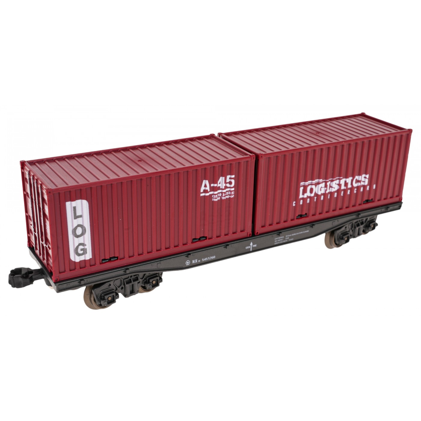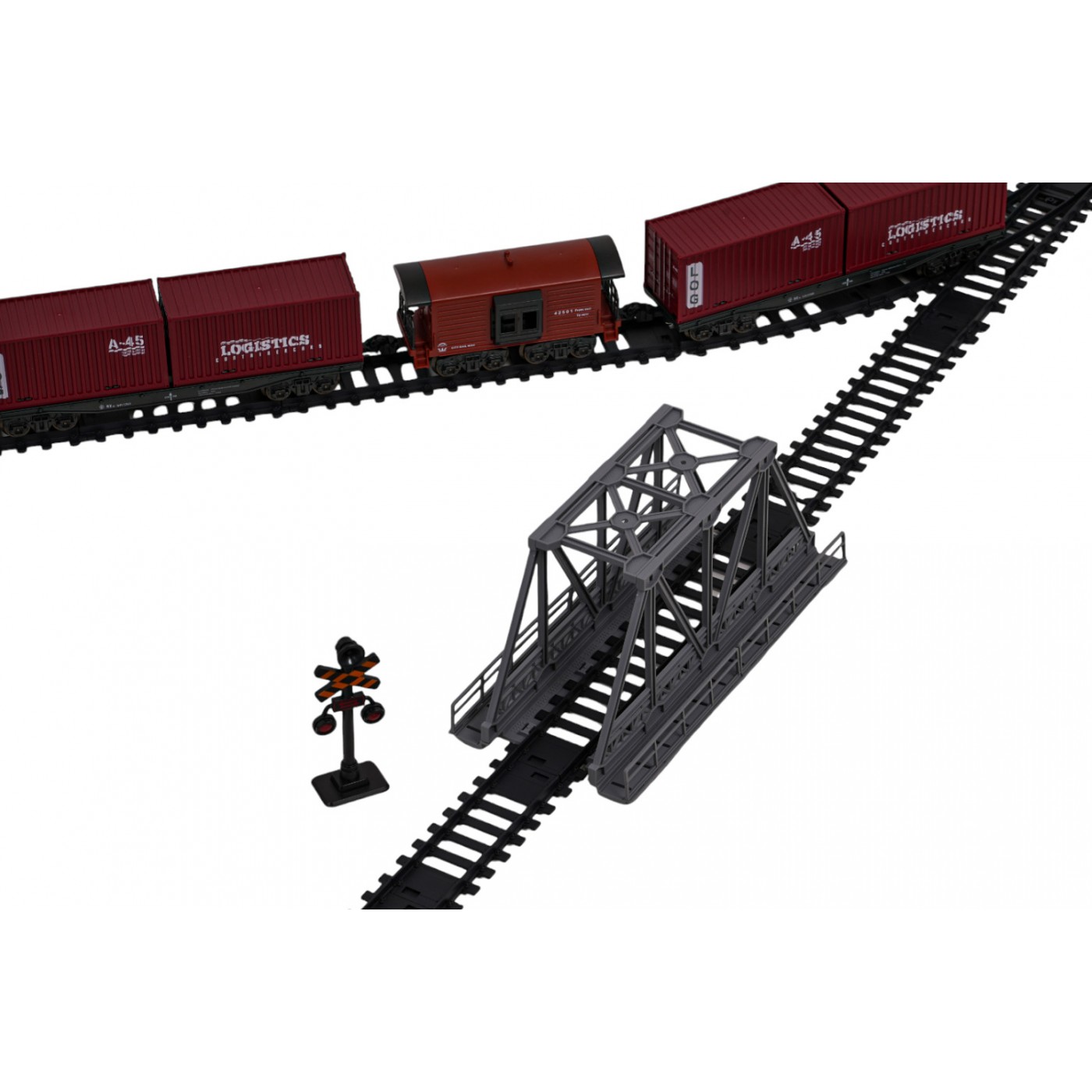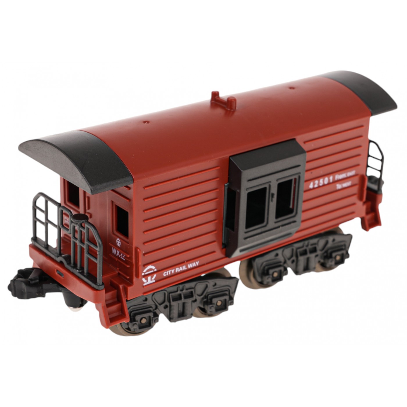 - lokomotíva, - osobné auto, - vagón na uhlie, - vozeň s pilotom, - 3 x vozeň s kontajnermi, - koľajové komponenty, - 2 mosty, - 2 znaky, - 2 stromy, - vodná pipeta, - USB nabíjací kábel, - manuál. |