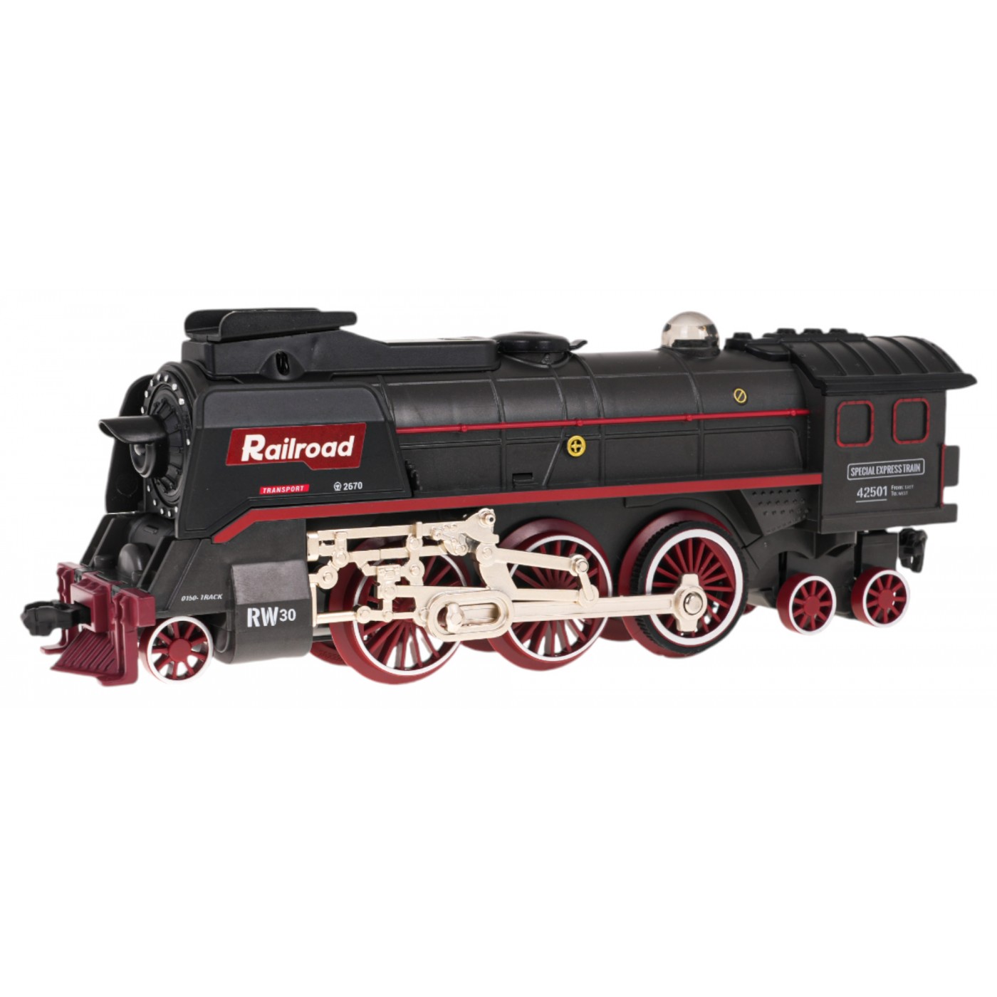 Retro súprava vláčika s dymovou funkciou a zvukmi jazdy, ako aj dráhami, ktoré sú súčasťou súpravy, je vhodná pre deti od 3 rokov. Hračka je napájaná 3,7 V batériou (súčasťou balenia), diaľkové ovládanie je napájané 2 x AA 1,5 V batériami (nie sú súčasťou balenia). Pilot je tiež jedným z vozňov. Počas jazdy lokomotíva vypúšťa dym z komína a bokov (po naplnení vodou - vodná pipeta súčasťou súpravy) a rozsvieti sa kontrolka inštalovaná v prednej časti. Dráhy sa dajú ľahko pripojiť, vďaka čomu sú bezpečné a odolné pri používaní.
