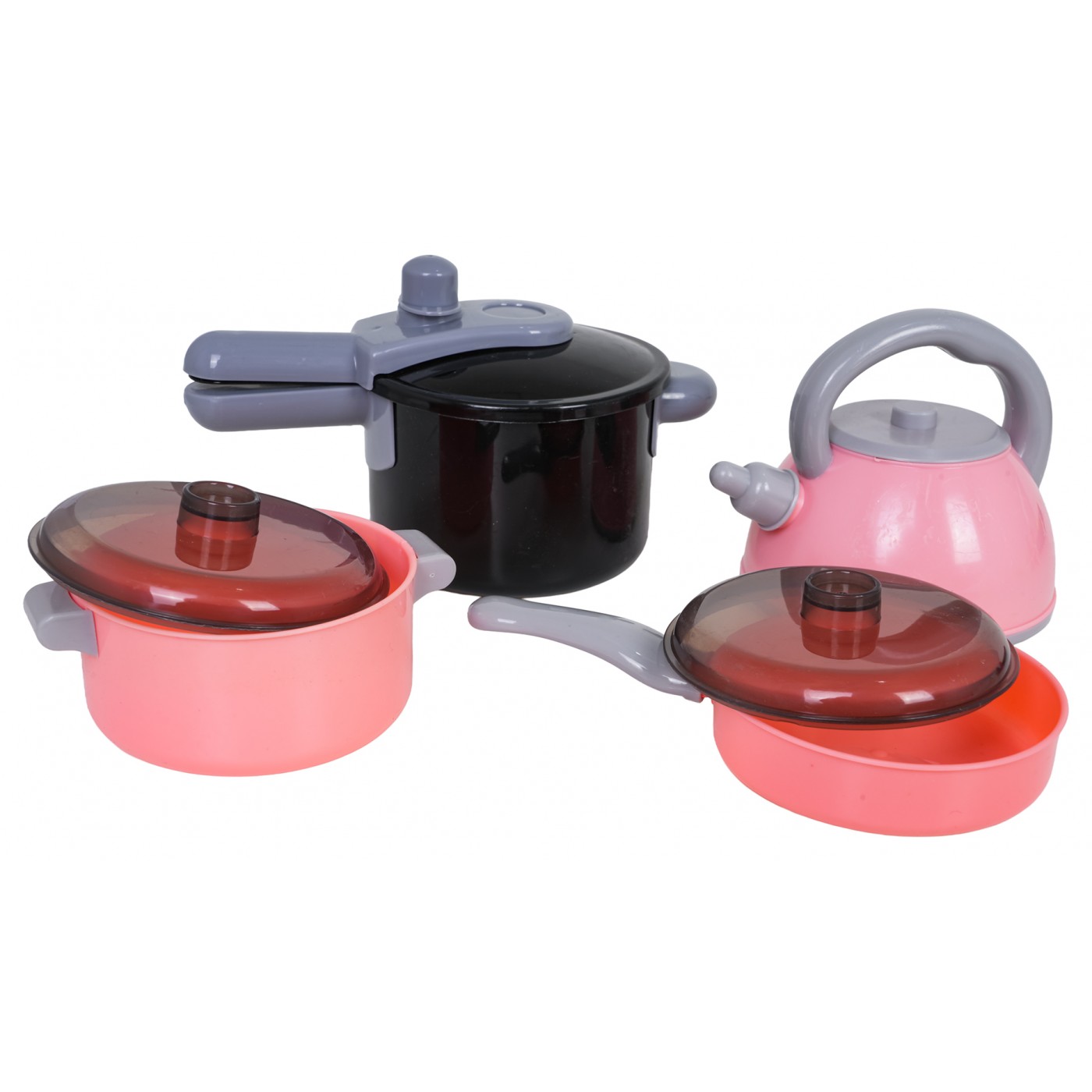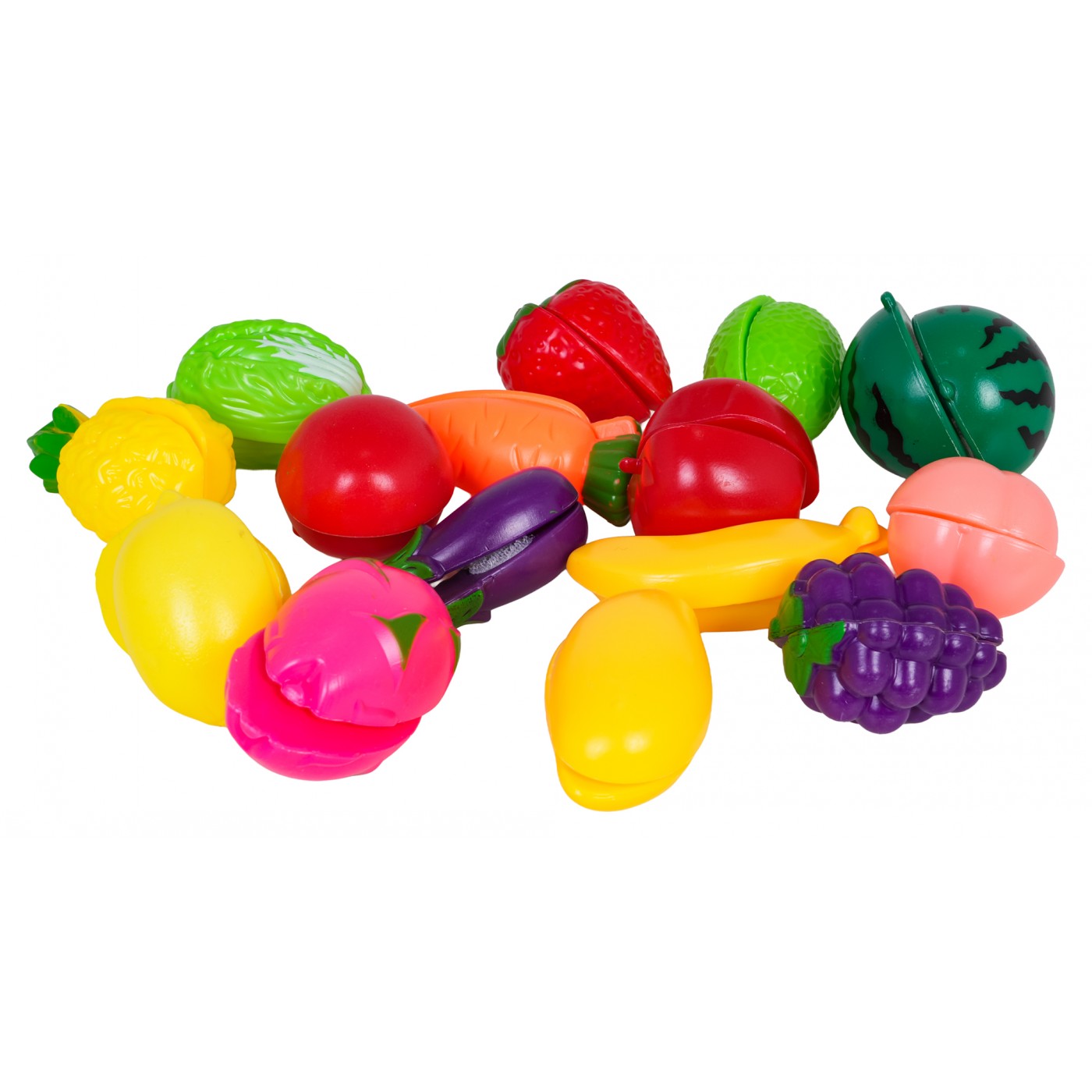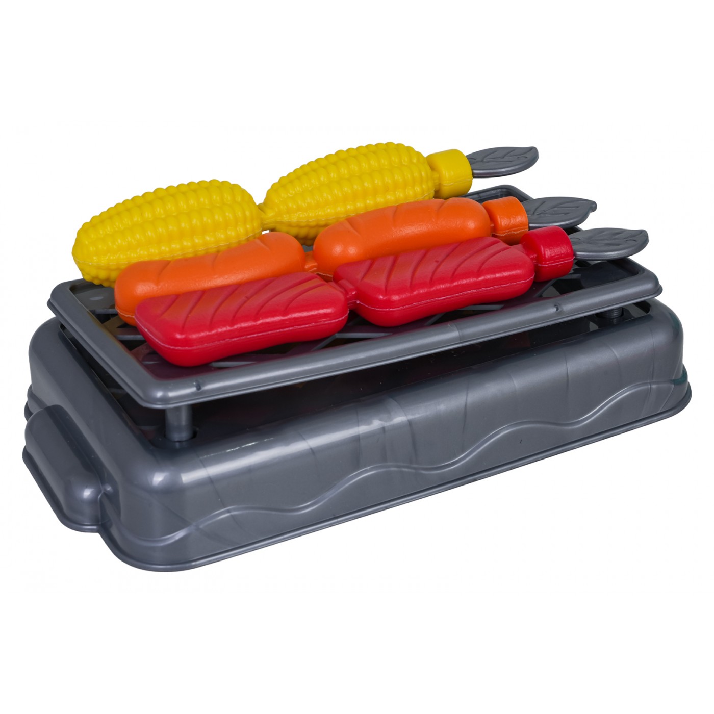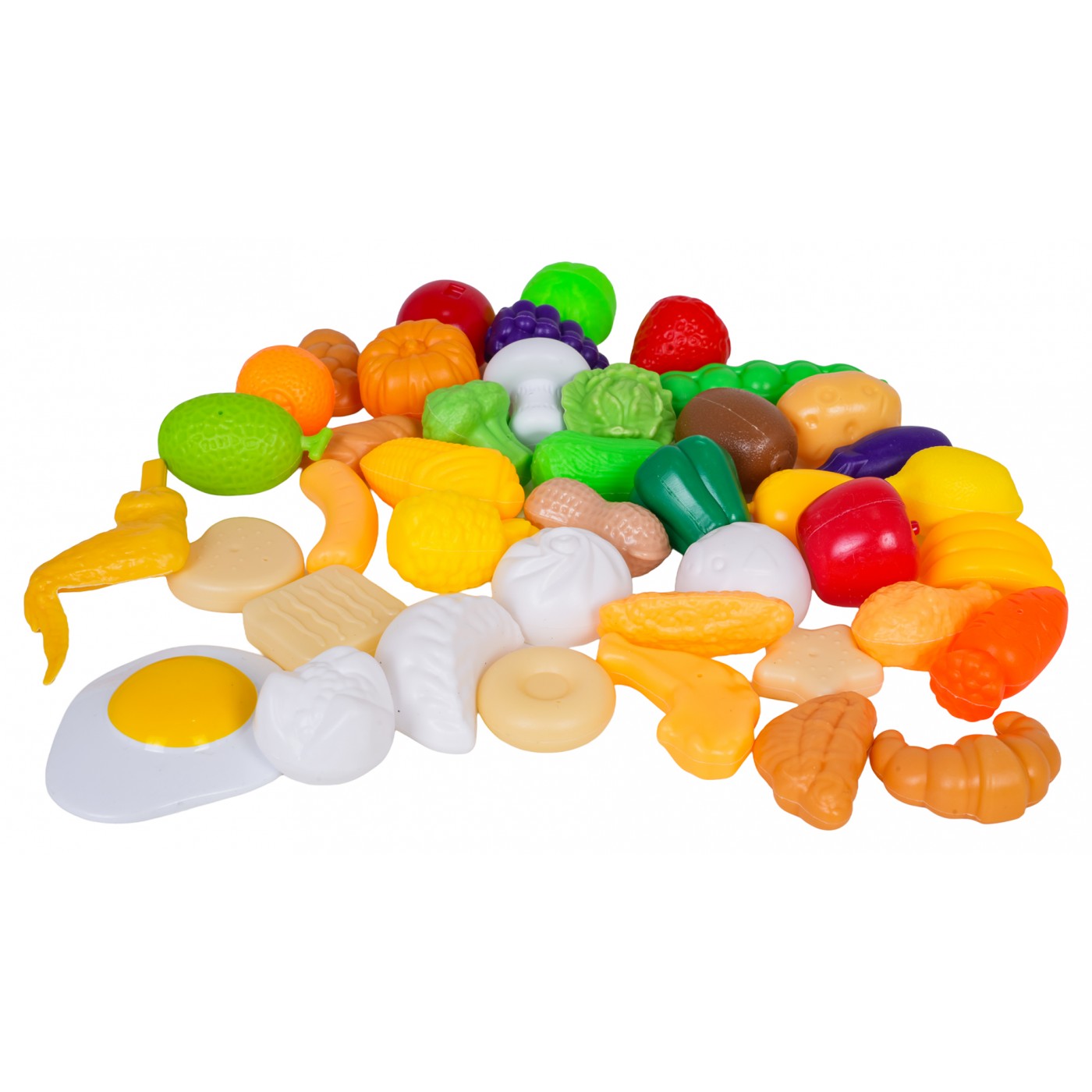 - indukčný varič, - veľký nákupný košík, - hrniec s pokrievkou, - panvica s pokrievkou, - tlakový hrniec, - kanvica - grilovanie, - doska na krájanie, - tácka, - 2 misky, - 3 x malý košík, - kliešte, - lyžica na cestoviny, - naberačka, - 2 x špachtľa, - pizzové koleso, - škrabka, - sekáčik na mäso, - 4 x palice, - 2 x vidličky, - 2x nôž, - 2 x taniere, - simulované potraviny: nápoj v pohári, pizza na repe, sendvič, volské oko, pukance, hranolky, kečup, omáčka, hotdog, hamburger, toast, ananás na repe, jahoda na repe, šalát na repe, broskyňa na repe, citrón na repe, paradajka na repe, melón na repe, červená paprika na repe, hrozno na repe, mrkva na repe, banán na repe, 3 x kebab na paličke, baklažán na repe, 2 x snehové pusinky, 2 x knedle, tekvica, baklažán, hrozno, zelený hrášok, brokolica, kukurica, zemiak, 3 x šalát, paradajka, červená a zelená paprika, kiwi, huba, jahoda, pomaranč, ananás, mrkva, banány, lieskový orech, citrón, kuracie stehno, kuracie krídlo, rezeň, 3 x sušienky, chlieb, chala, croissant. |