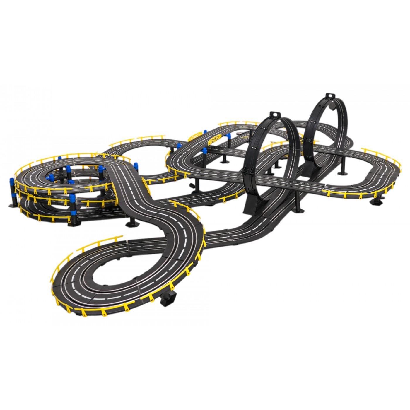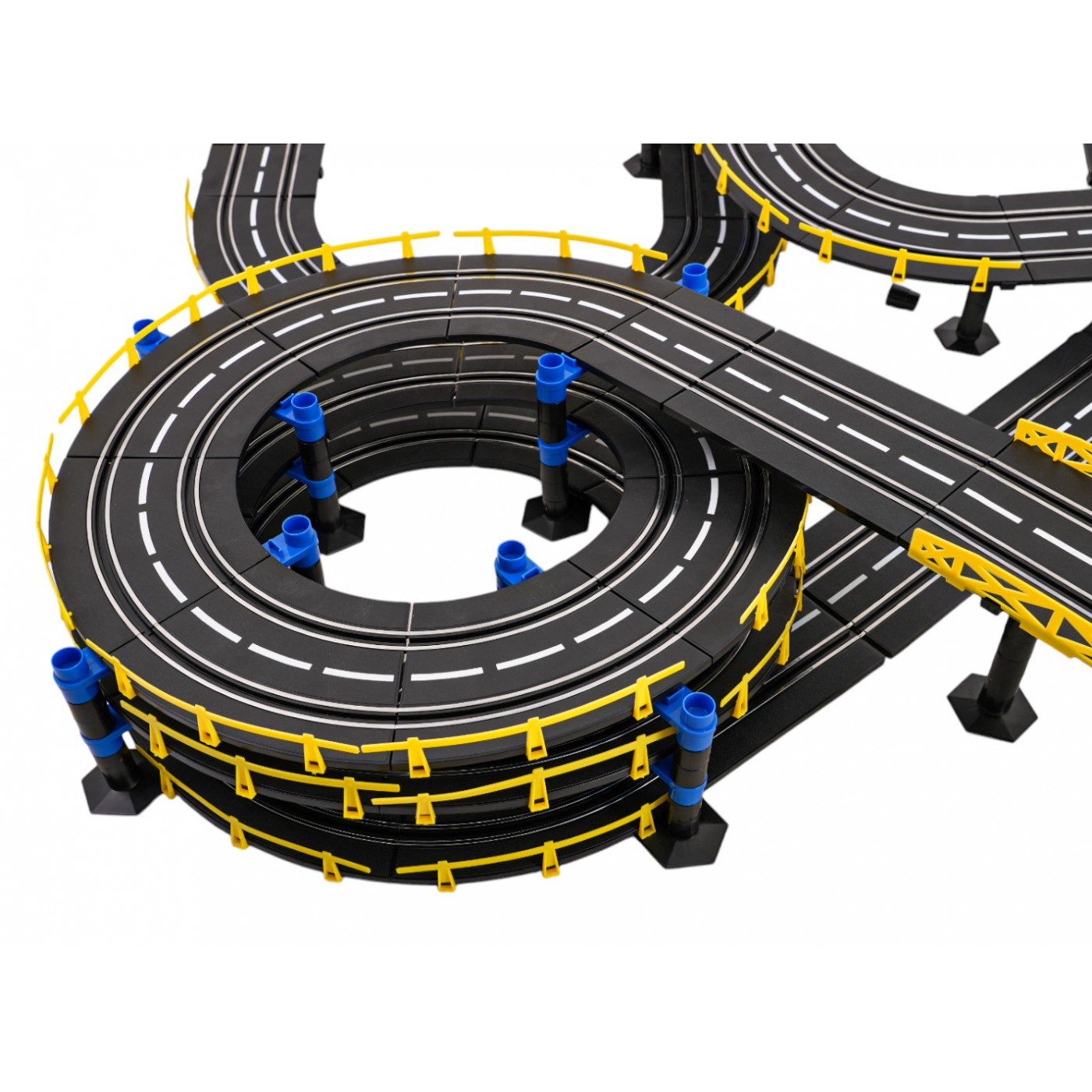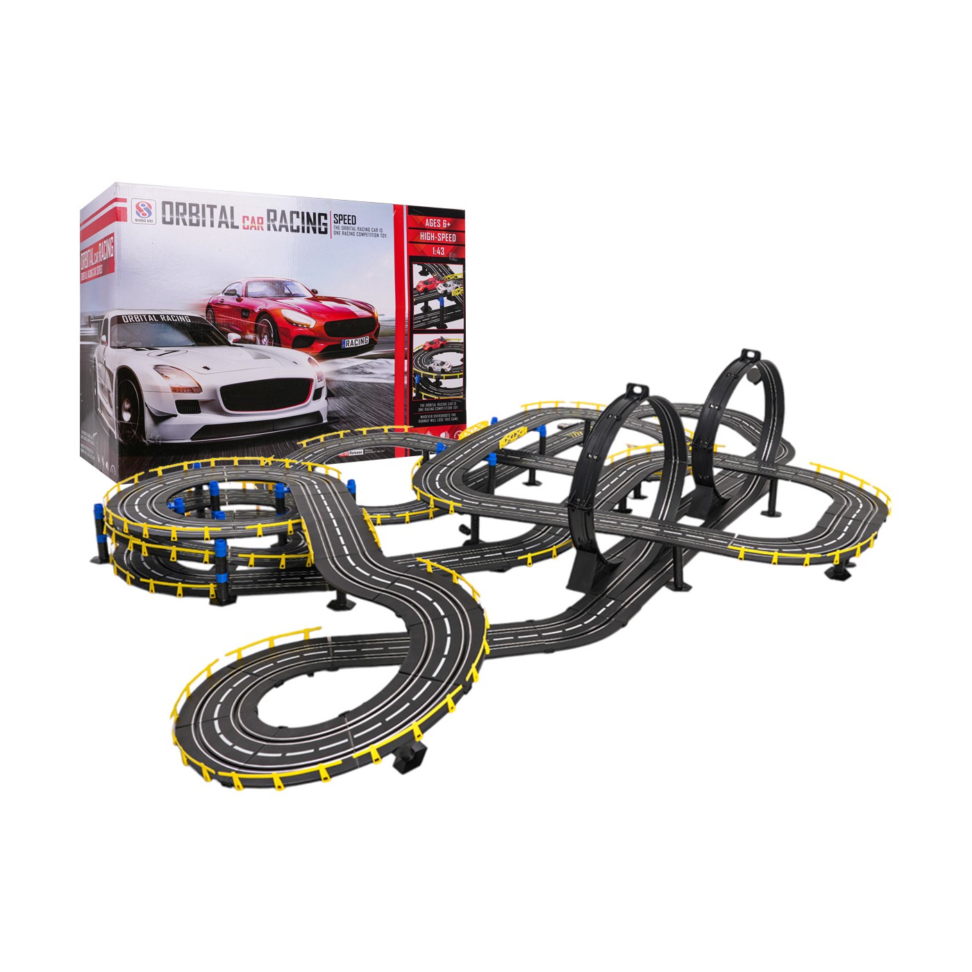Veľká pretekárska dráha vyrobená v mierke 1:43 s dvoma autíčkami na diaľkové ovládanie pre deti od 3 rokov. Jednotlivé konštrukčné prvky vám umožnia postaviť dráhu s ostrými zákrutami, špirálami a rovnými úsekmi, a to všetko tak, aby bola hra čo najatraktívnejšia a dodala celej hre vzrušenie. Táto jedinečná sada je dokonalou hračkou pre malých nadšencov automobilových pretekov. Trať má počítadlo kôl . Je napájaný elektrickou energiou 220V -50Hz. |