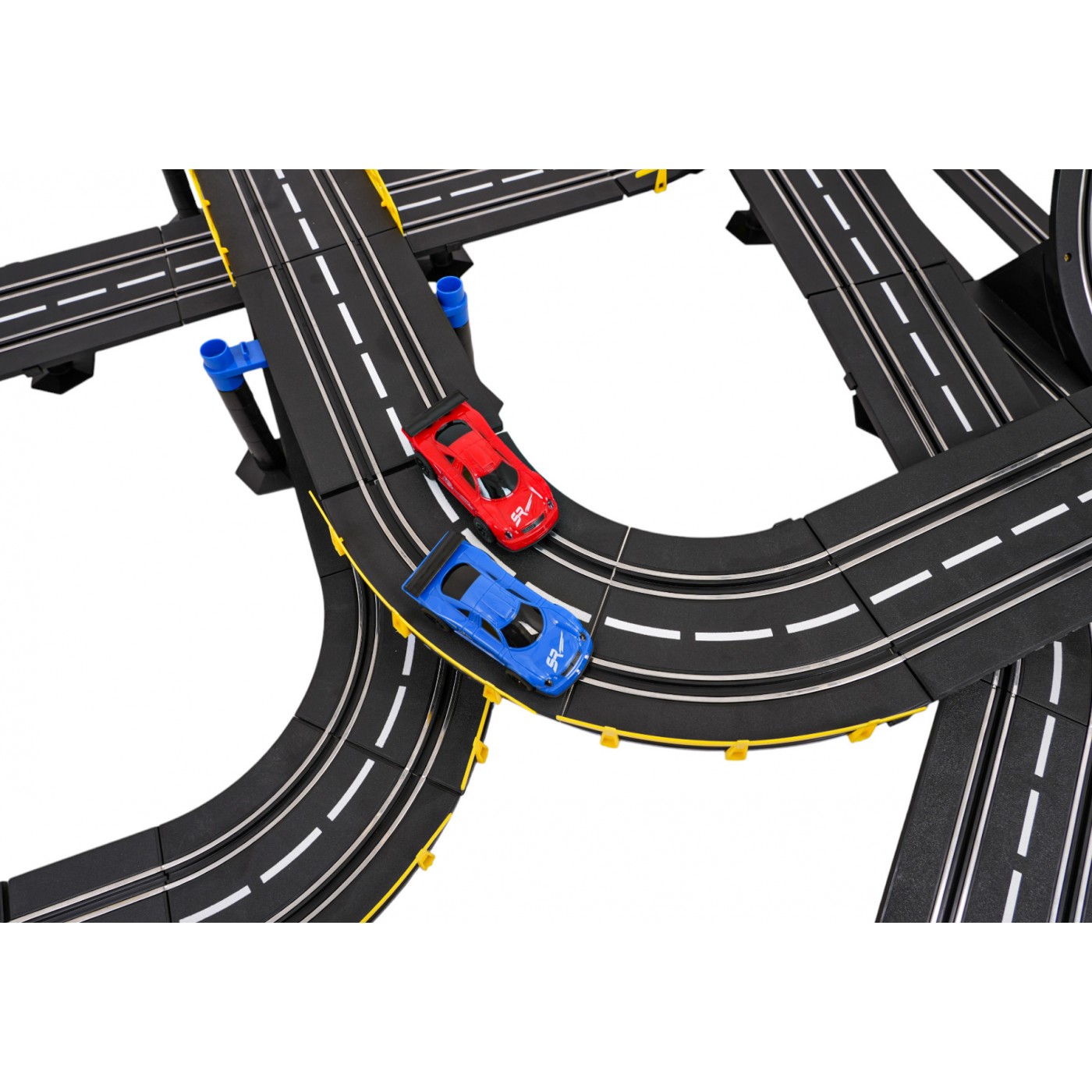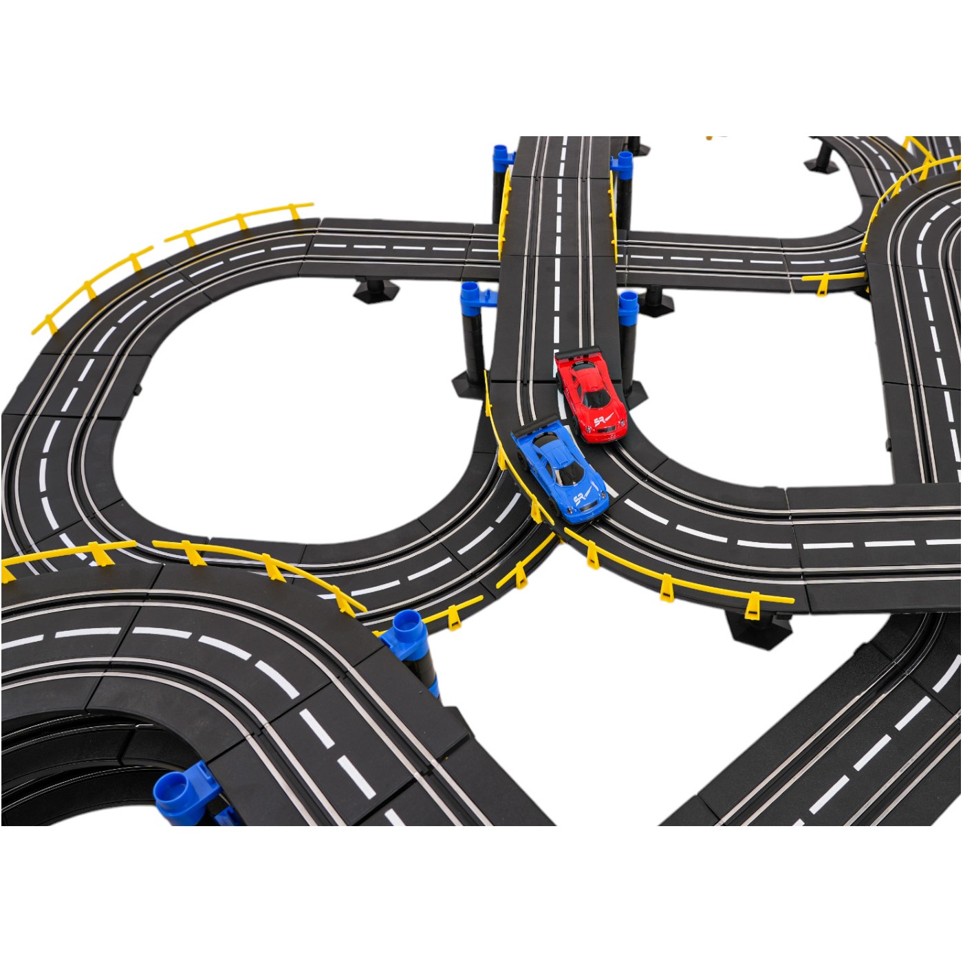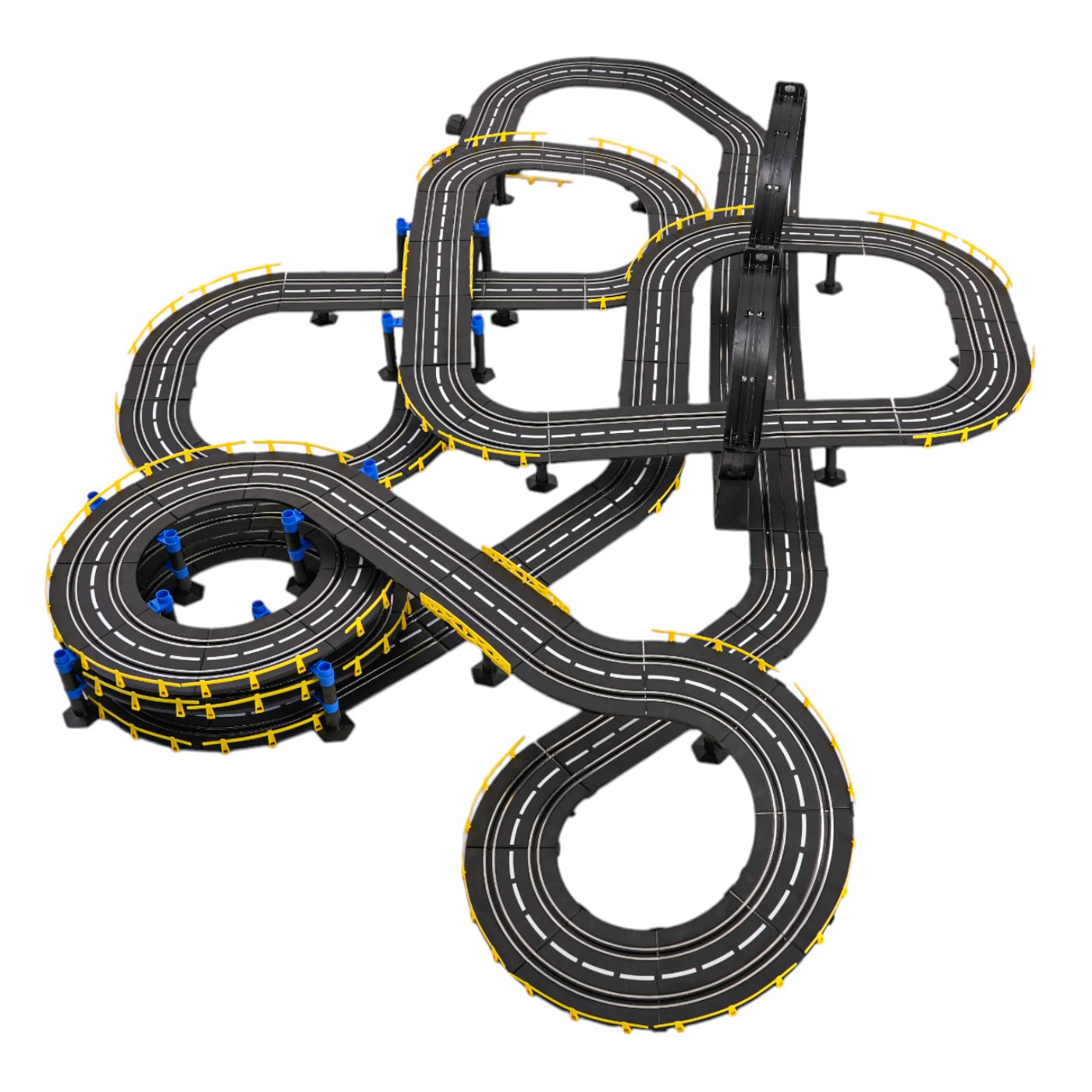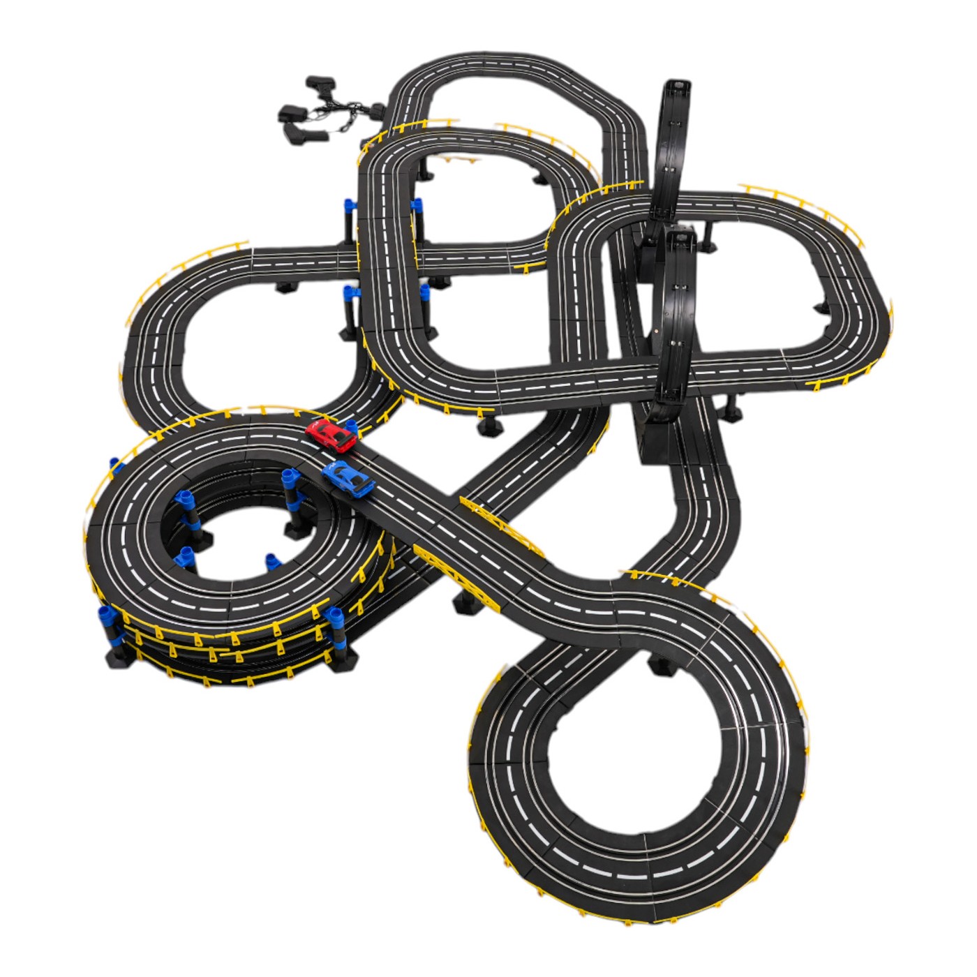 Veľká pretekárska dráha vyrobená v mierke 1:43 s dvoma autíčkami na diaľkové ovládanie pre deti od 3 rokov. Jednotlivé konštrukčné prvky vám umožnia postaviť dráhu s ostrými zákrutami, špirálami a rovnými úsekmi, a to všetko tak, aby bola hra čo najatraktívnejšia a dodala celej hre vzrušenie. Táto jedinečná sada je dokonalou hračkou pre malých nadšencov automobilových pretekov. Trať má počítadlo kôl . Je napájaný elektrickou energiou 220V -50Hz. |