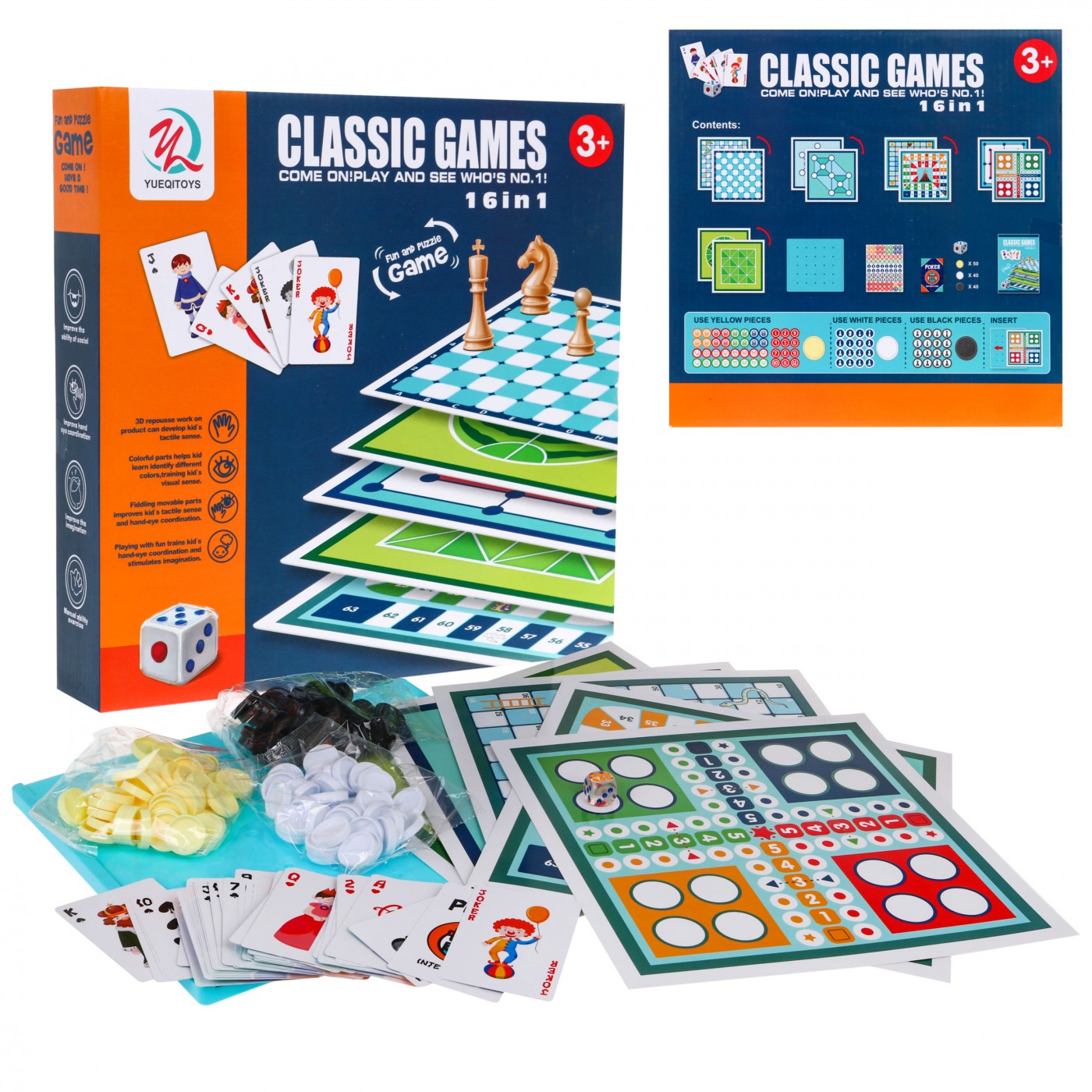 Mega súprava Stolových hier 16v1 pre deti a dospelých Stolové hry + Kartové a logické hry