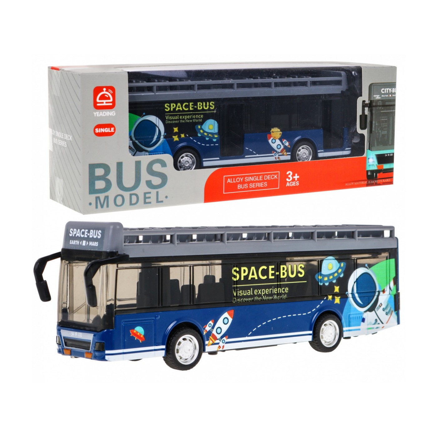 | | Metalowy model autobusu to zabawka przeznaczona dla dzieci od 3-go roku życia. Zabawka zasilana jest bateriami typu AG13 x 3, baterie zawarte są w zestawie. Autobus wygląda bardzo realistycznie, jest solidnie wykonany, posiada napęd na tylne koła oraz efekty dźwiękowe i świetlne. Muzyka i migające światełka w środku i na przodzie pojazdu uruchamia się każdorazowo przy otwarciu drzwi autobusu. Zabawka rozwija i kształtuje wyobraźnię dziecka pomaga rozwijać umiejętności manualne. Twoje dziecko podczas zabawy będzie mogło wcielić się w rolę kierowcy, decydować kiedy zatrzymać się i otworzyć drzwi. |