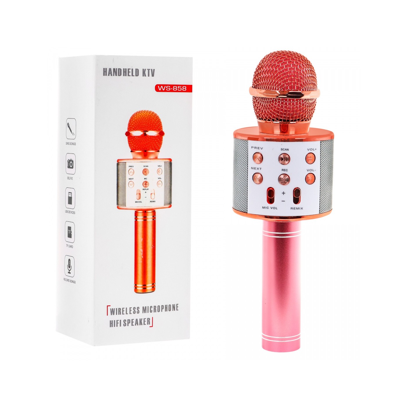 | | Mikrofon Karaoke to idealny prezent dla wszystkich dzieci i nastolatków, które uwielbiają śpiewać. Wbudowana w telefon bateria litowo-polimerowa umożliwia nawet kilku godzinne działanie zabawki. Można go zabrać ze sobą wszędzie i nie martwić się o szybkie wyczerpanie baterii. Mikrofon wyposażony został w dwa wbudowane głośniki, funkcję redukcji szumu oraz opcję ustawień basów i sopranów. Mikrofon nadaje się do śpiewania, nagrywania oraz karaoke. Można go połączyć ze smartfonem, tabletem lub telewizorem z systemem operacyjnym Android lub iOS. Działanie mikrofonu jest bardzo proste. Po podłączeniu go do urządzenia z systemem Android lub iOS, wybrana muzyka z tego urządzenia będzie odtwarzana na mikrofonie za pomocą bezprzewodowego głośnika. Należy uruchomić odtwarzacz muzyki lub program do Karaoke bądź kanał Youthube i puścić wybraną piosenkę. Dźwięk będzie odtwarzany na dwóch wbudowanych w mikrofon głośnikach. Na ekranie urządzenia z którym połączony jest mikrofon wyświetli się tekst, który możemy śpiewać. Podczas śpiewu nasz głos nakłada się na muzykę i jednocześnie wydobywa z wbudowanych głośników. Podczas śpiewu istnieje możliwość regulacji siły głosu, głośności podkładu muzycznego, siły basów i sopranów. Możemy nakładać również efekt echo. Na mikrofonie i w jego dolnej części znajdują się następujące przyciski: - PREV – poprzednie nagranie, - NEXT – następne nagranie, - SCAN, - VOL + /-, - REC – nagrywanie, - MIC VOL +/-, - REMIX, - wejście na kabel Micro USB/ USB, - wejście na kabel AUX, - wejście na kartę SD. |