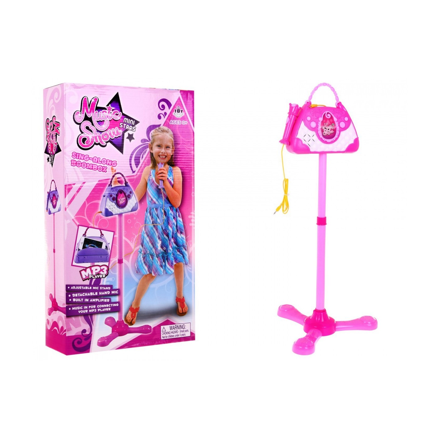 | | - 12 melodyjek, - możliwość podpięcia własnego mp3 i śpiewania do własnego podkładu, - możliwość wyłączenia podkładów muzycznych, - przycisk aplauz, - regulacja statywu, - regulacja głośności. |