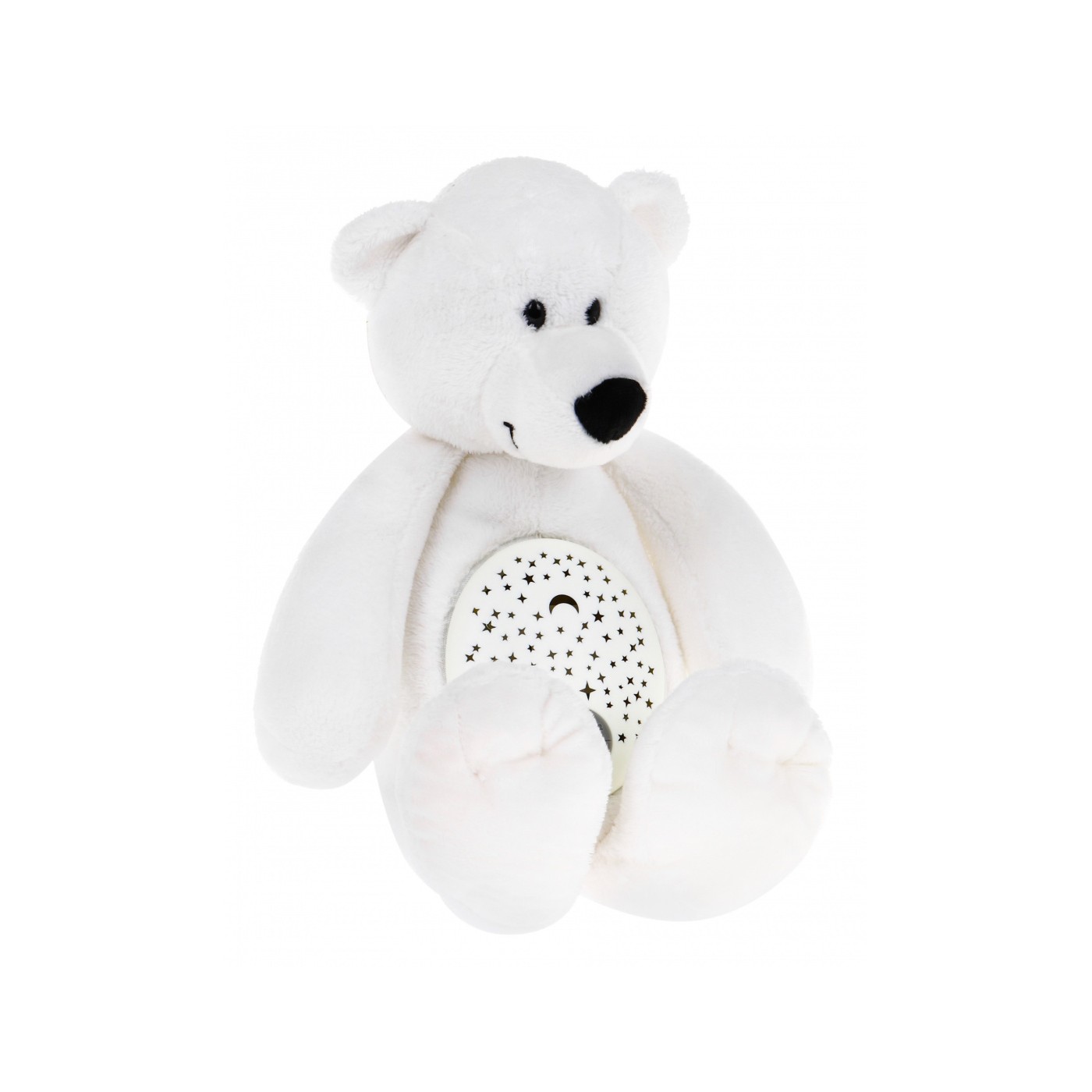 | Mięciutki i miły w dotyku interaktywny miś z projektorem w brzuszku, to propozycja dla dzieci już od szóstego miesiąca życia. Zabawka została wykonana z materiału bezpiecznego dla niemowląt. Miś spełnia funkcję przytulanki, lampki nocnej oraz pozytywki. Zabawka pozytywnie wpływa na zmysły dziecka, zmysł wzroku, słuchu i dotyku. Dziecko czuje się bezpiecznie, wycisza się i łatwiej zasypia.Projektor znajdujący się w brzuszku misia wyświetla na suficie i ścianach gwiaździste niebo w kolorze czerwonym, niebieski, zielonym czy fioletowym. Zabawkę łatwo można utrzymać w czystości. Po wyciągnięciu wewnętrznego mechanizmu, można ją wyprać w pralce. Mechanizm zasilany jest bateriami typu 3 x AA (baterii brak w zestawie). | |
