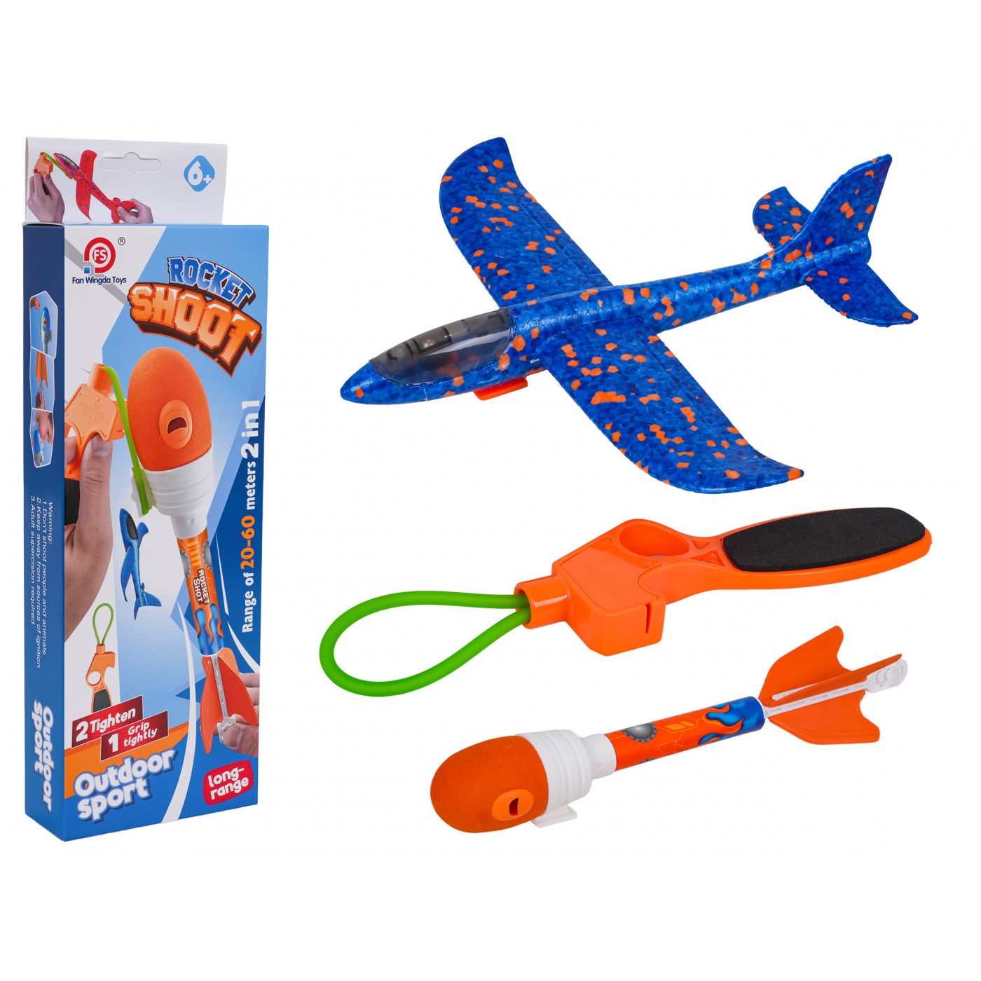 Sada 2 v 1 modré lietadlo s odpaľovačom