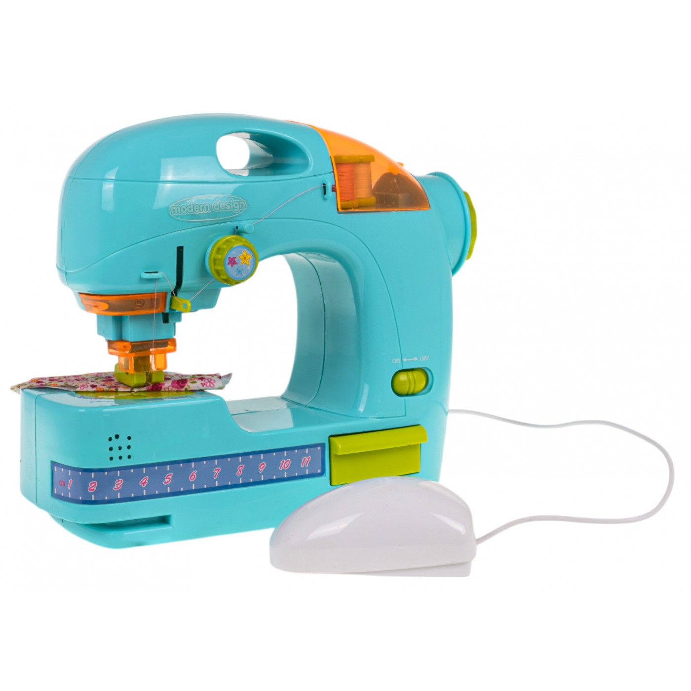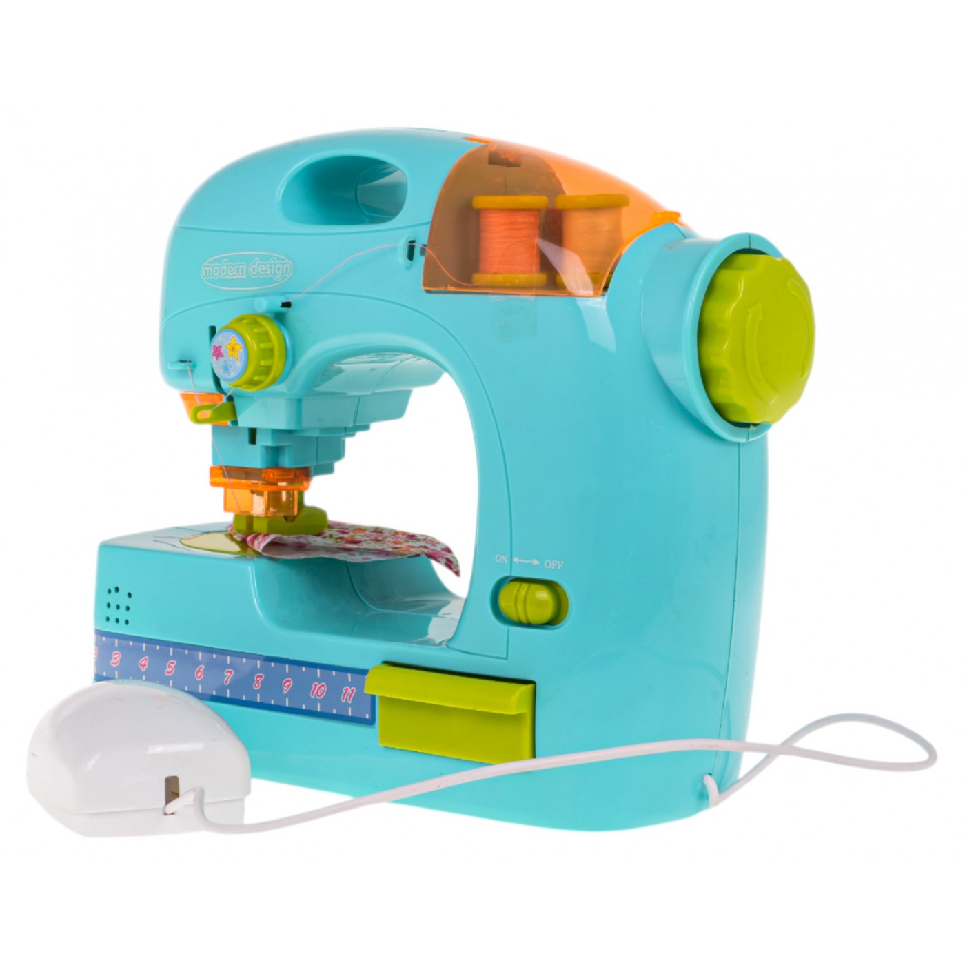 Interaktívny šijací stroj so zvukovými a svetelnými efektmi pre deti od 3 rokov. Hračka je vyrobená z pevných materiálov a je pre dieťa bezpečná. Stroj má zabudovanú ihlu, ktorá chráni dieťa pred zranením. Hračka je vybavená praktickou myšou na spustenie stroja, gombíkom na zdvíhanie ihly, zdvihákom prítlačnej pätky a vstavaným úložným priestorom na príslušenstvo. Keď je stroj v prevádzke, kontrolka svieti. Súprava so strojčekom obsahuje aj 3 cievky nite a kúsok látky s vystrihnutými šatami. Hra so strojom pomáha rozvíjať koordináciu ruka-oko a kreativitu. Strojček je napájaný 4 x 1,5V AA batériami (nie sú súčasťou balenia).