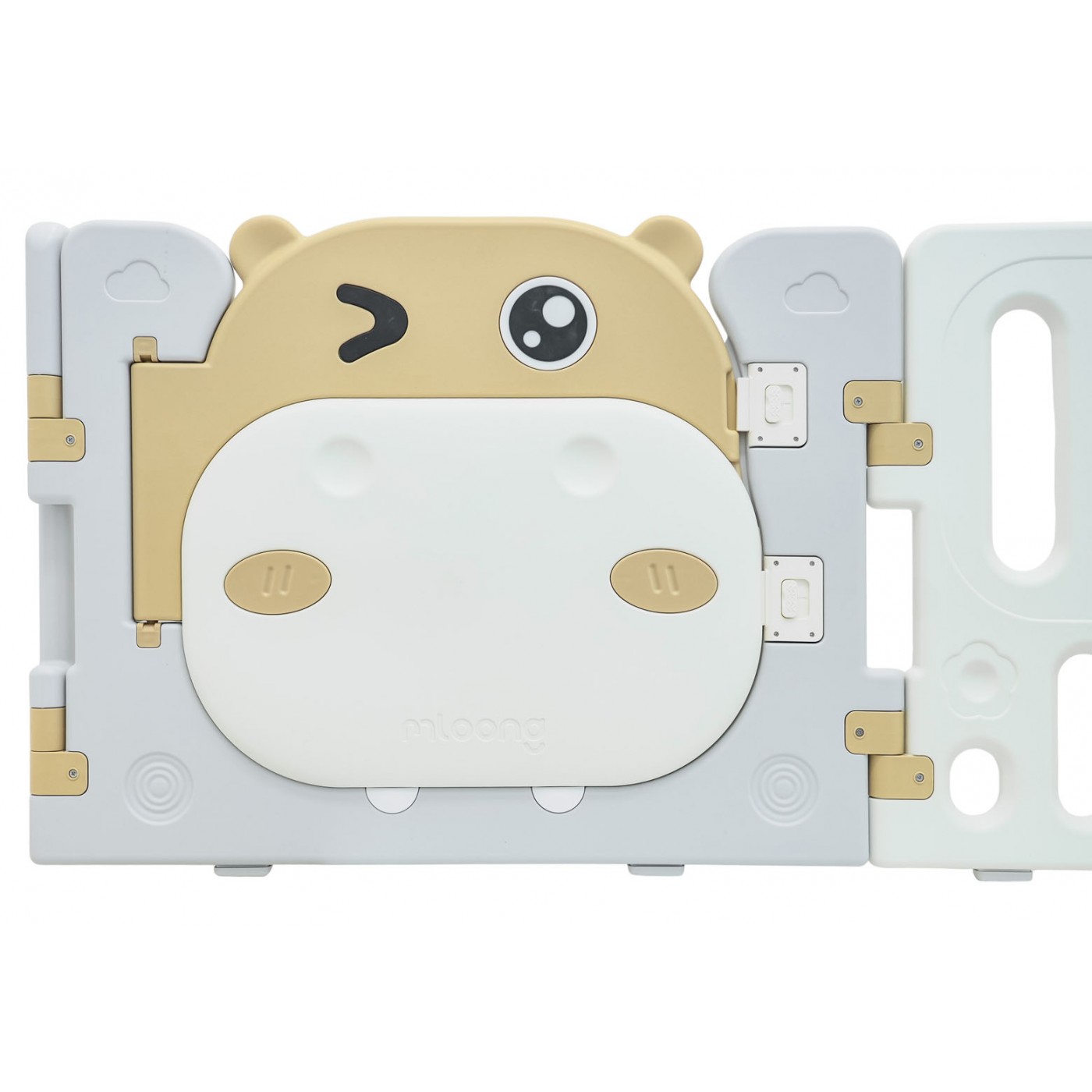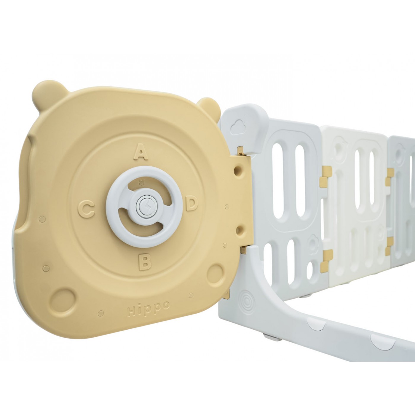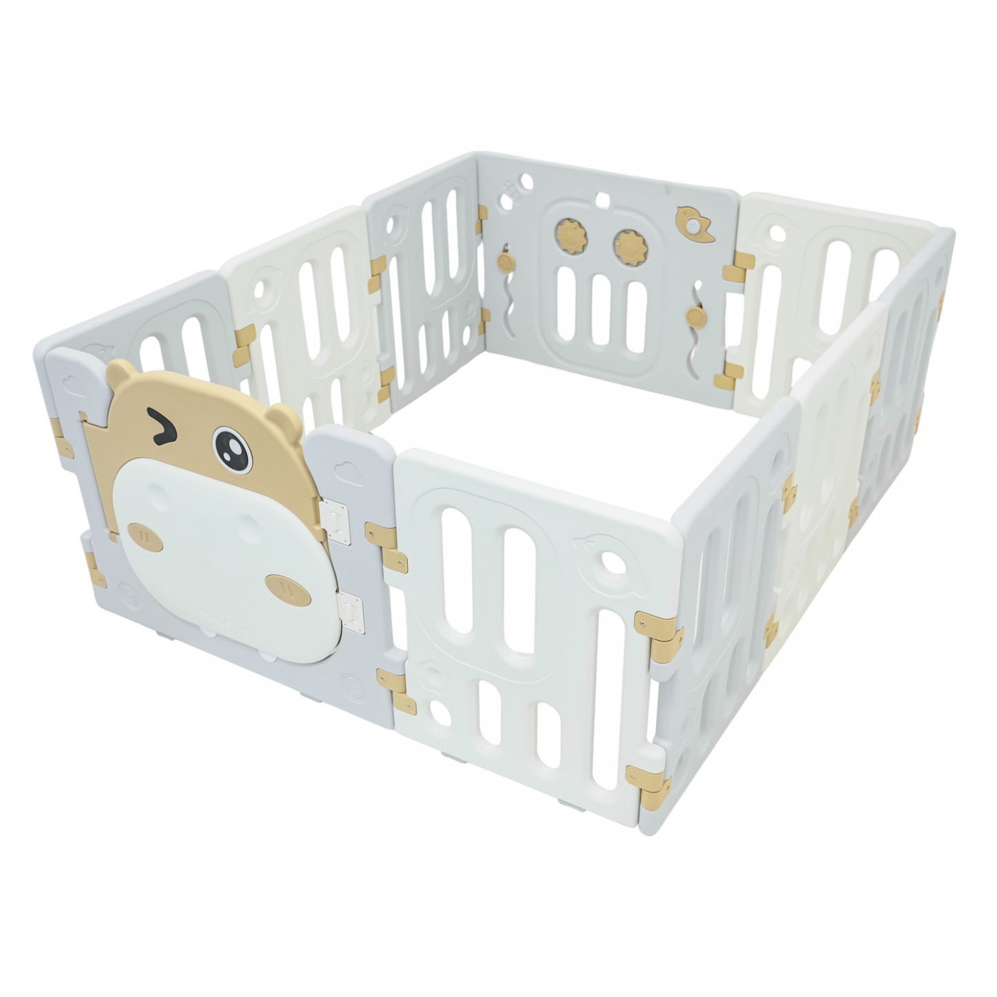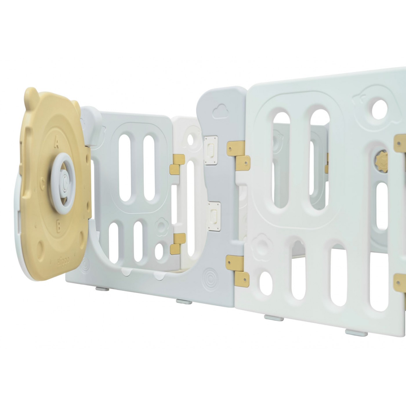 Veľká, praktická, skladacia modulárna ohrádka pre deti od 6 mesiacov. Z ohrádky si môžeme vytvoriť ľubovoľnú konštrukciu podľa vlastných preferencií, veľmi ľahko sa montuje a rozoberá, je stabilná a má hladké hrany. Interiér ohrádky je vybavený manipulačnými prvkami, ako sú posuvné koliesko, ozubené kolesá, píšťalka a volant. Sada je vyrobená z odolných a netoxických materiálov a pozostáva z 10 panelov. Panel dverí sa zaistí smerom von, čím sa zabráni dieťaťu v otvorení dverí. Protišmykové nožičky zabraňujú kĺzaniu detskej ohrádky. V ohrádke bude mať vaše dieťa dostatok priestoru na voľný pohyb a zároveň bude v bezpečí. Sada obsahuje aj loptičkovú košík a 40 loptičiek.