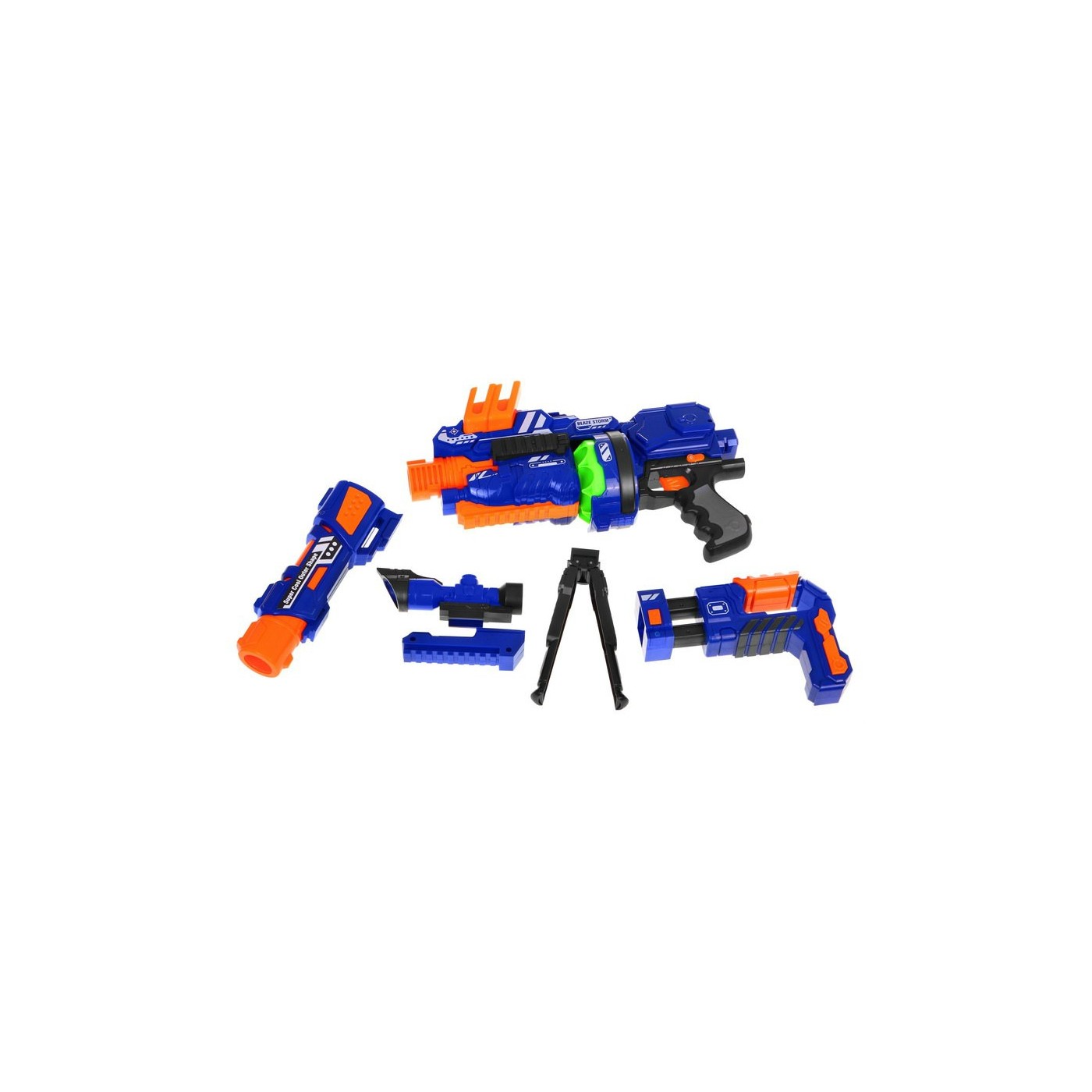 | - karabin zasilany 4 bateriami typu AA (4 x 1,5V) – brak w zestawie, - stabilizator, - celownik, - przedłużenie lufy, - 12 sztuk pocisków (kulki piankowe), | |