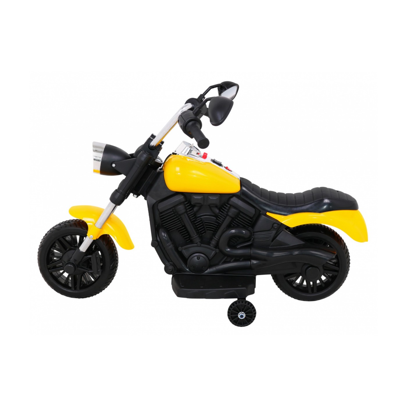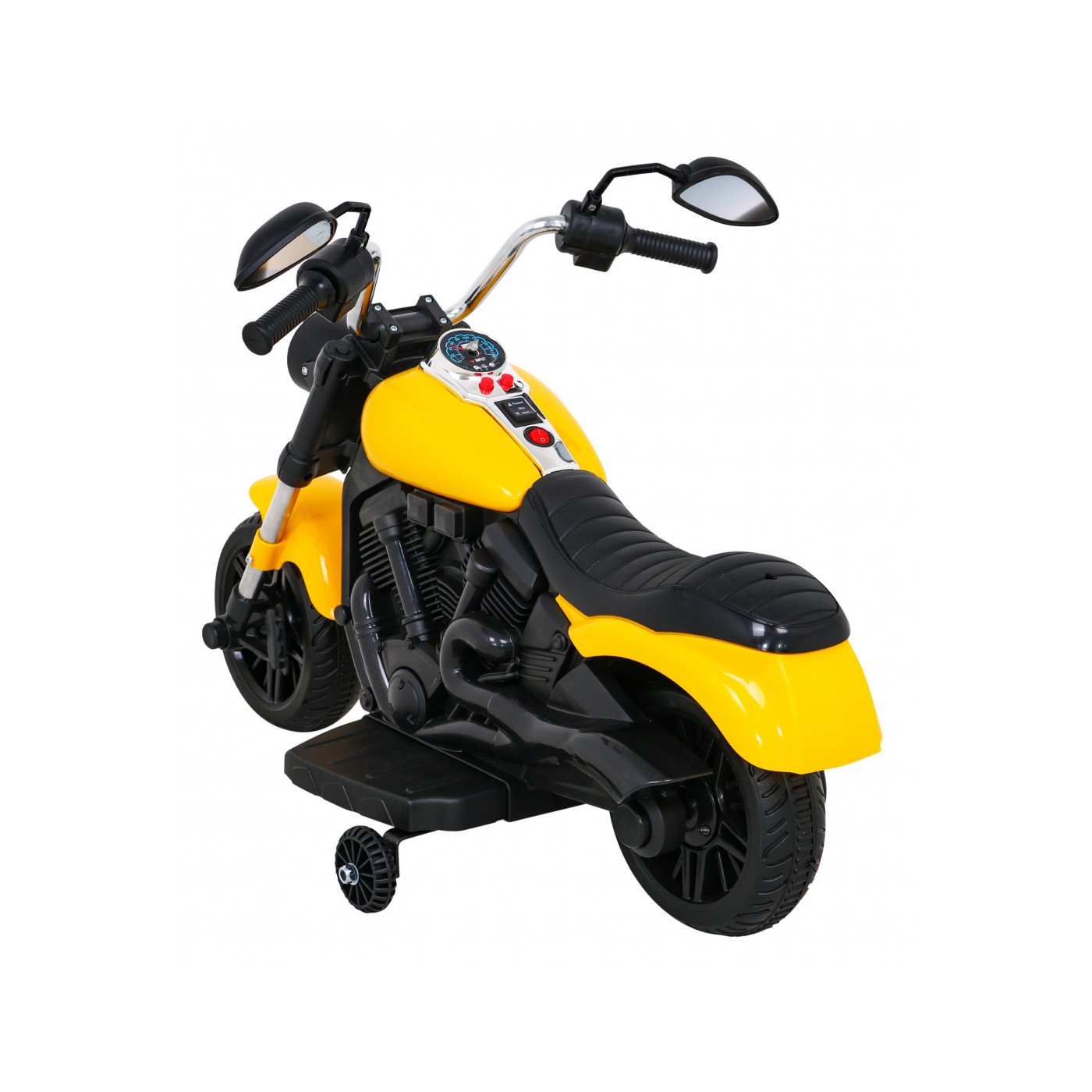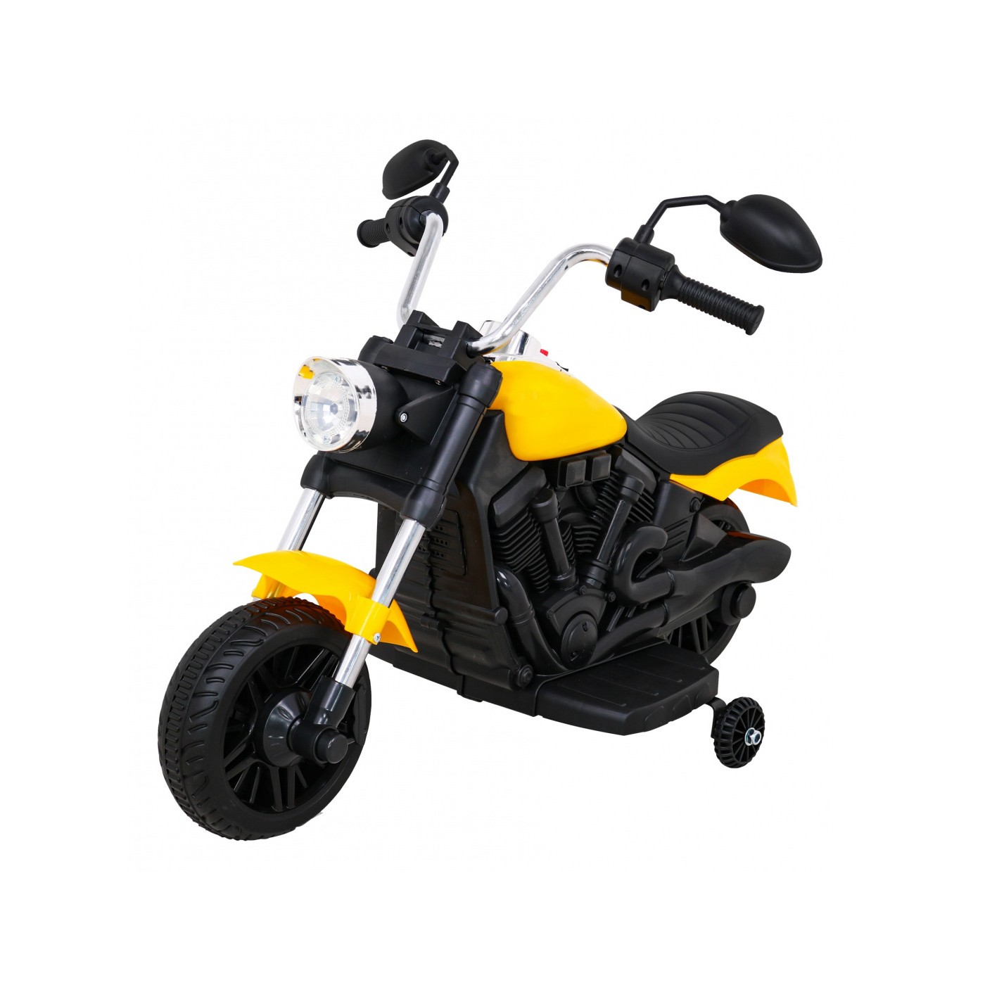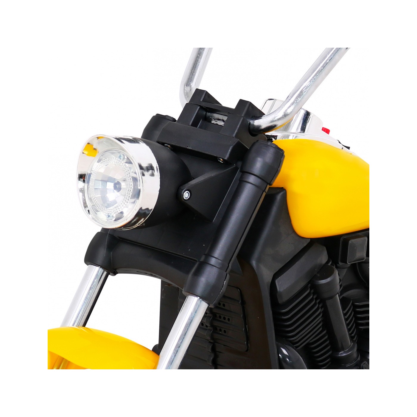 Motorka Chopper V-Max na batériu pre deti Žltý + Melódie Klaxon + Svetlo + Pomocné kolesá