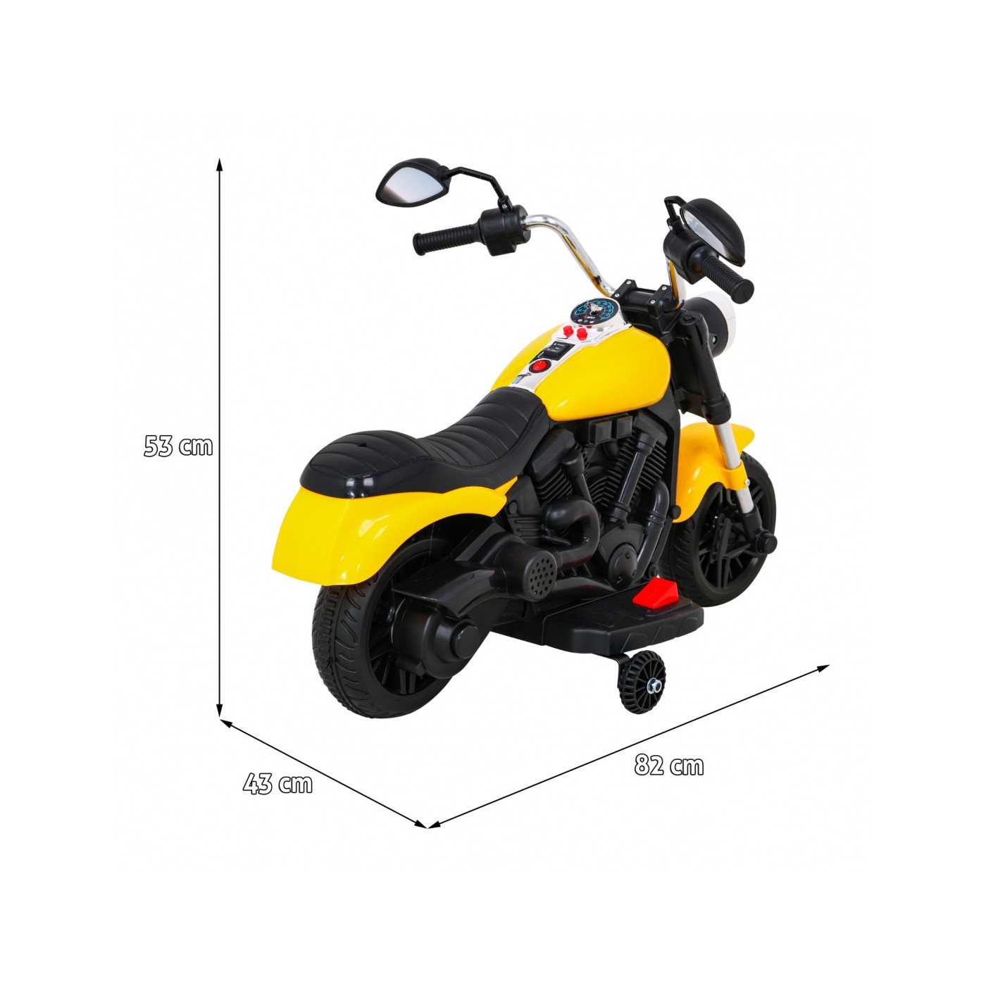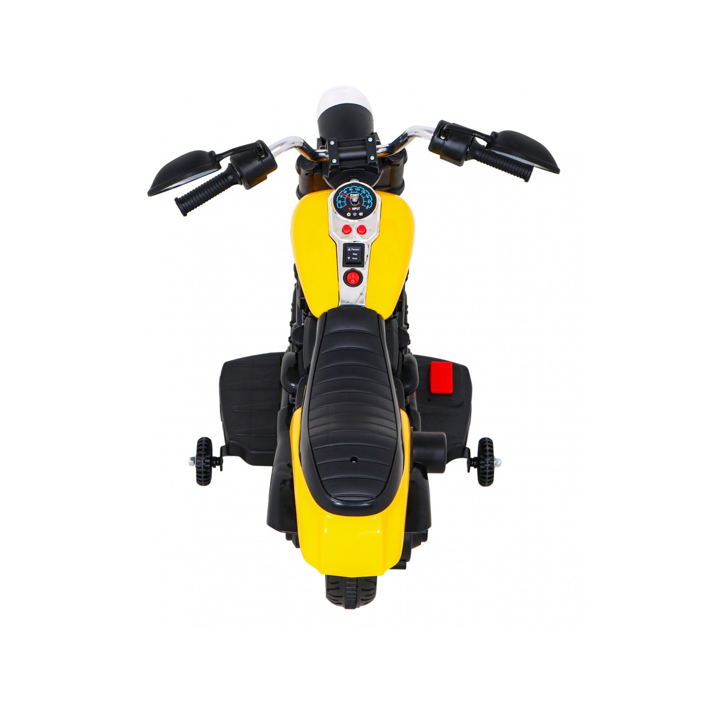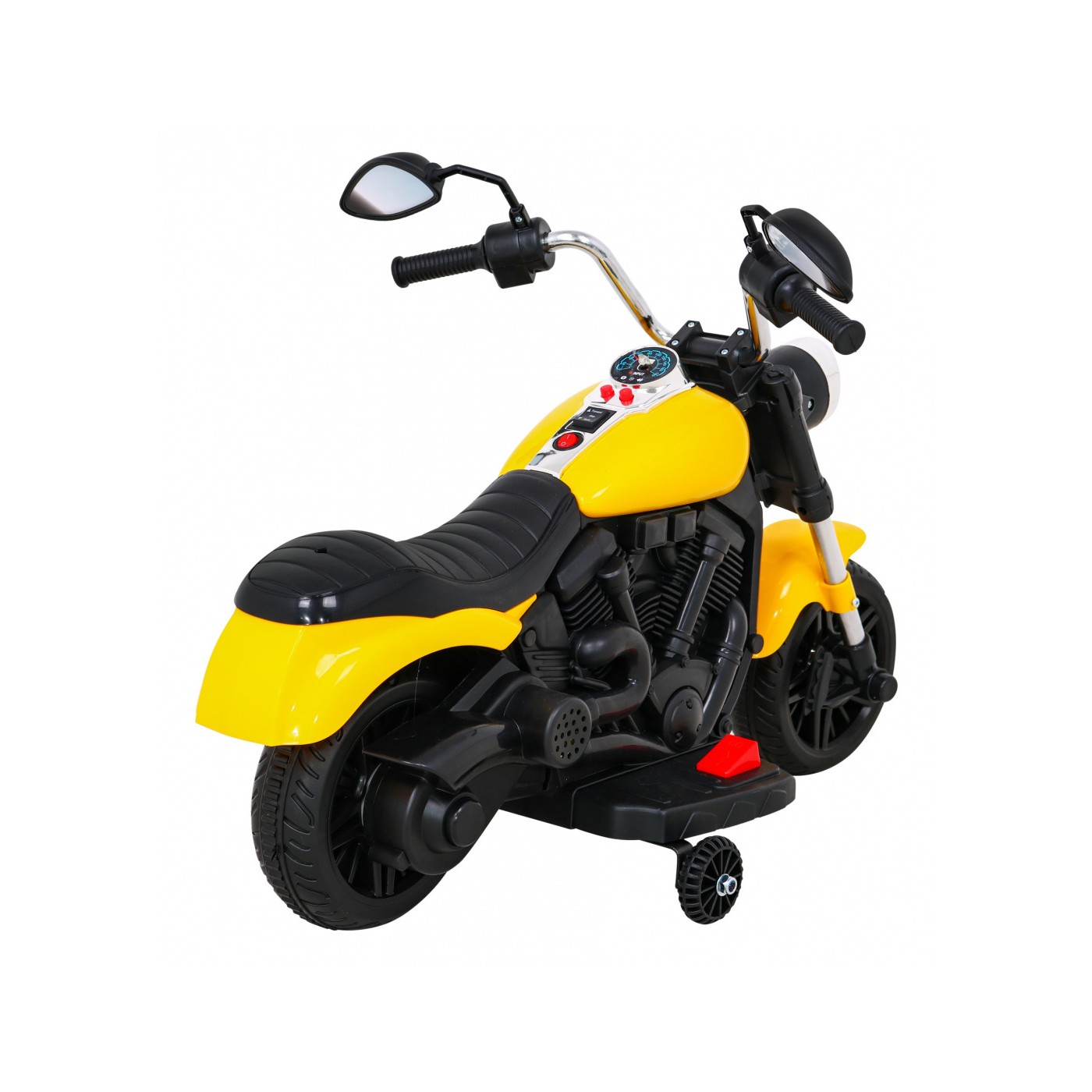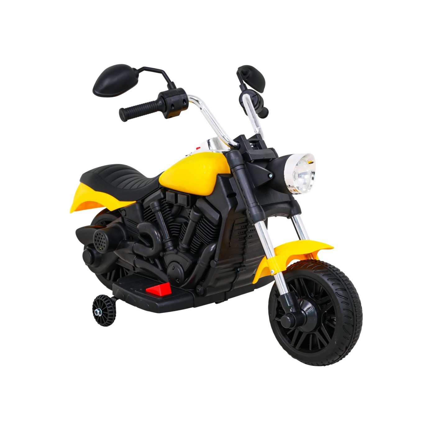 Motorka Chopper V-Max na batériu pre deti Žltý + Melódie Klaxon + Svetlo + Pomocné kolesá