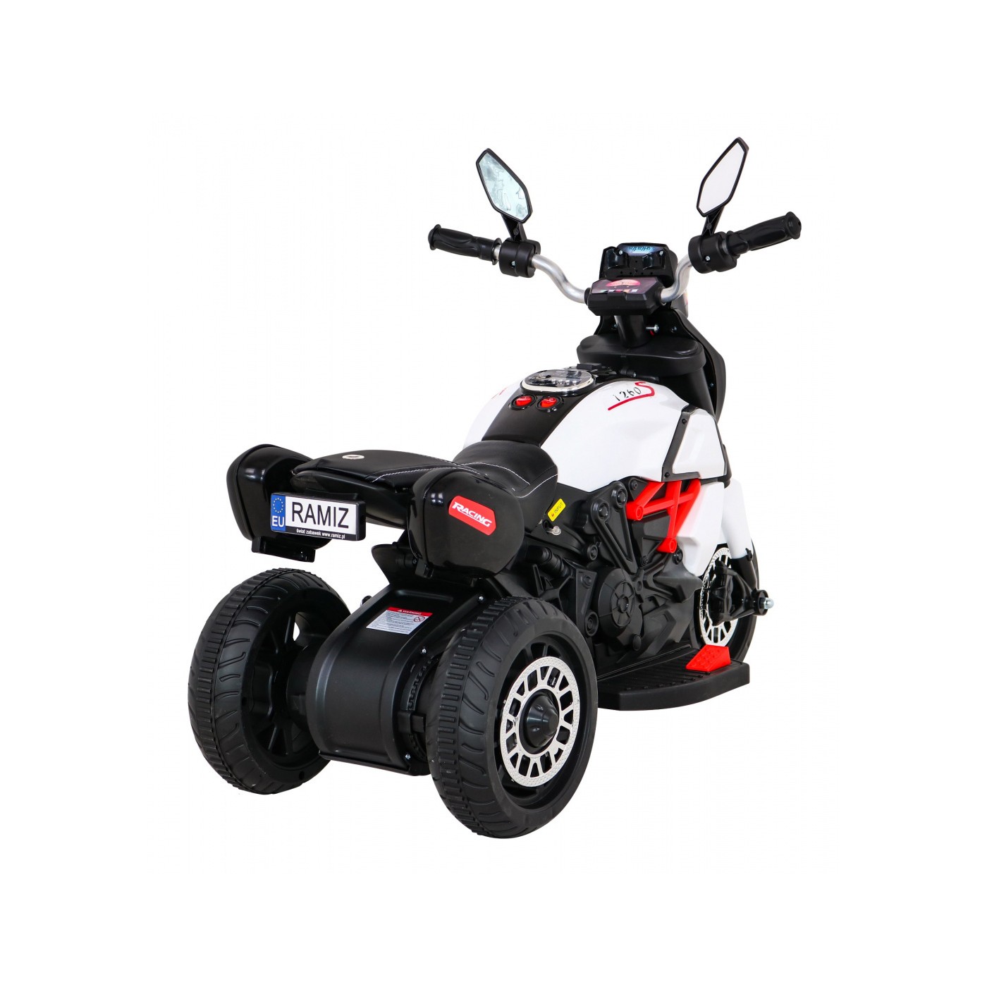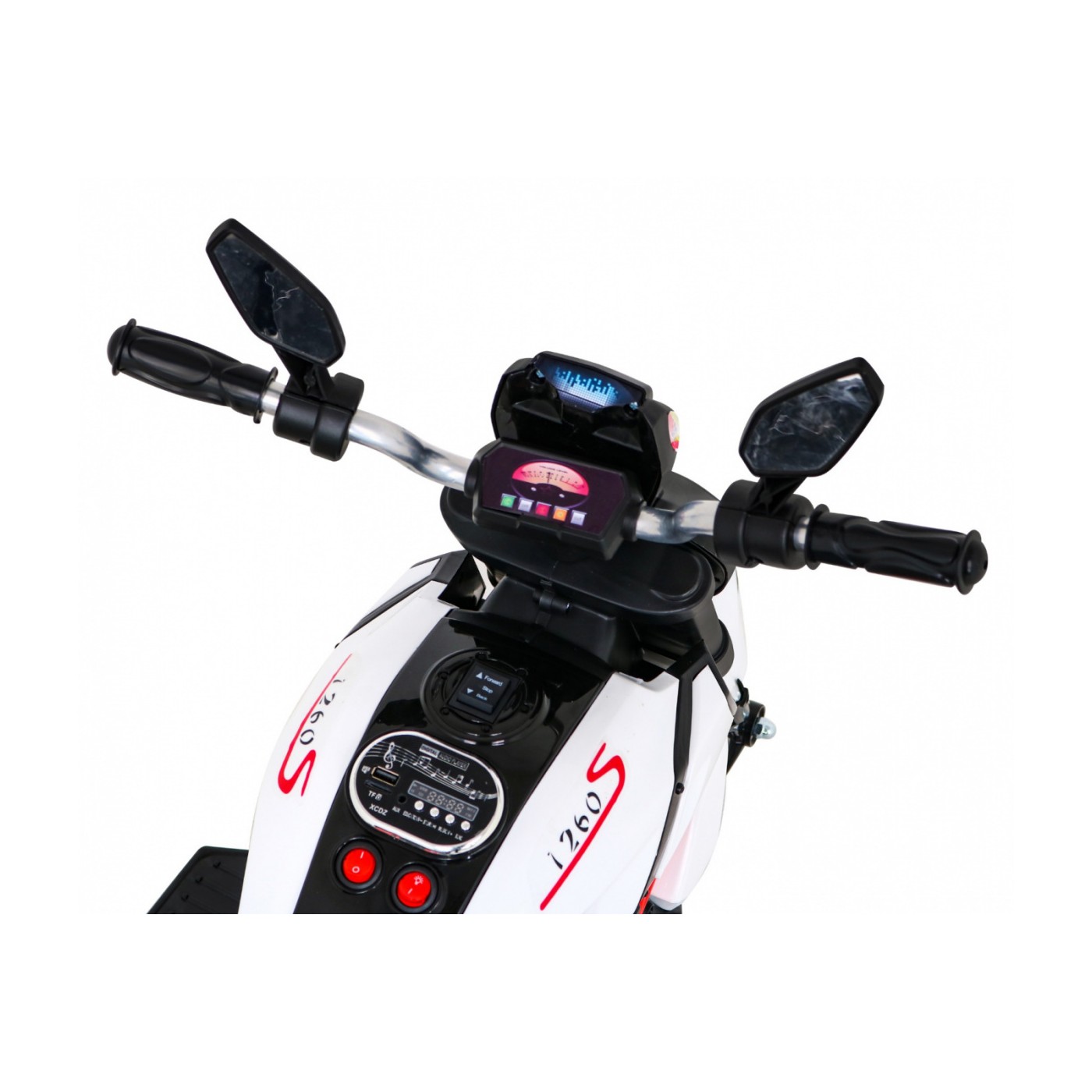 Motorka Future na batériu pre deti Biely + Panel audio + Pomalý štart + Kolesá EVA